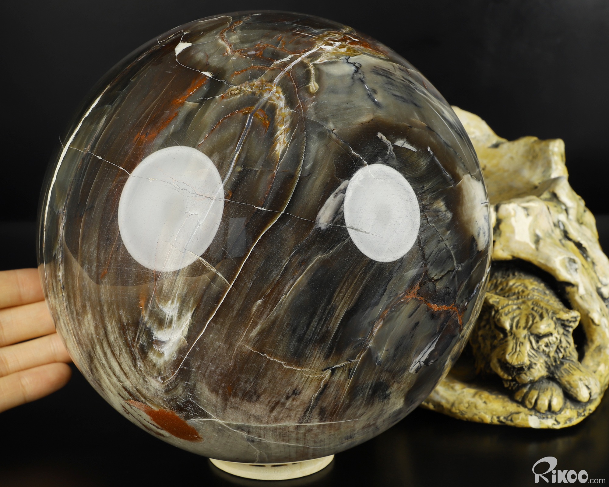 6.7" Petrified Wood Hand Carved Crystal Ball/Sphere, Crystal Healing