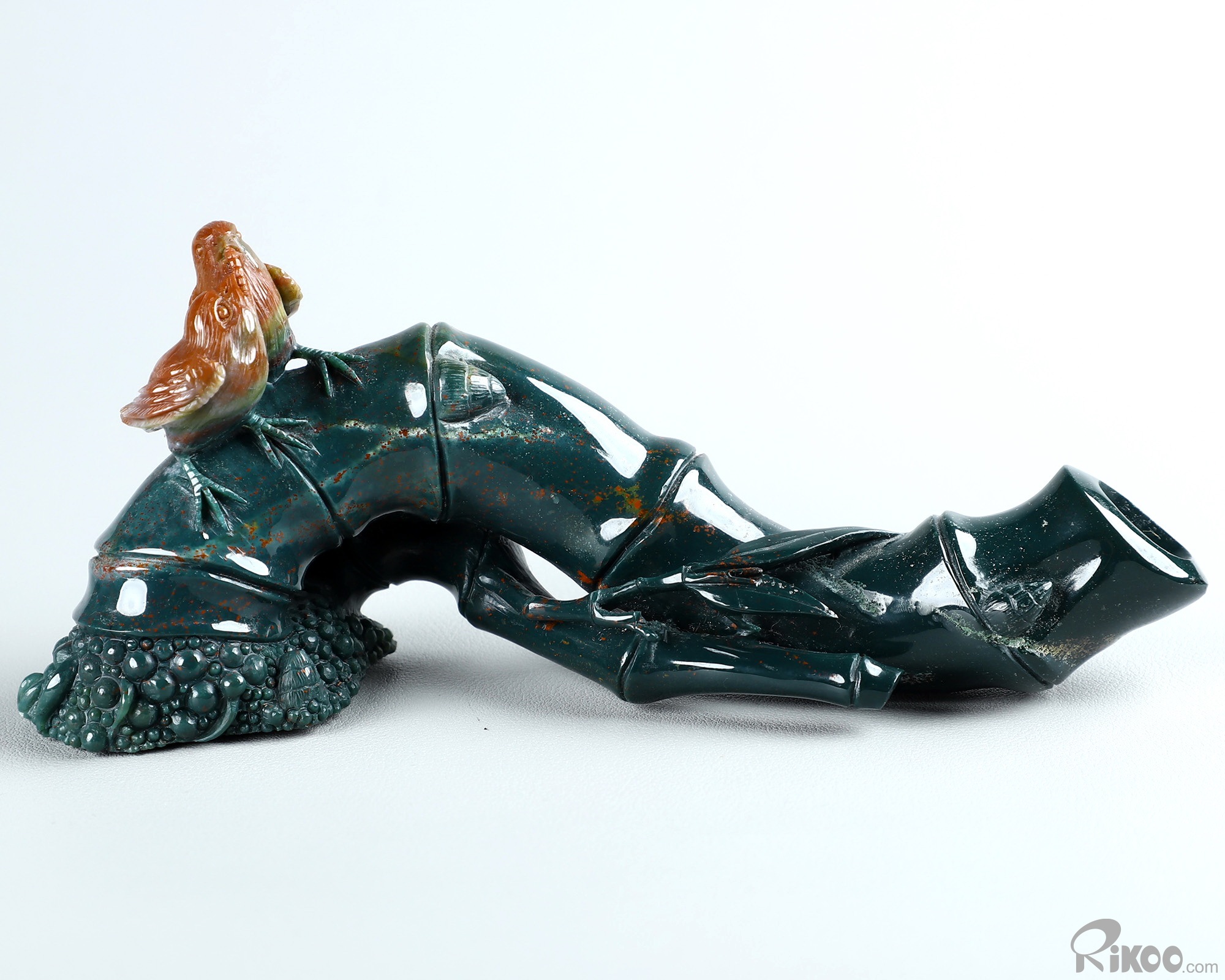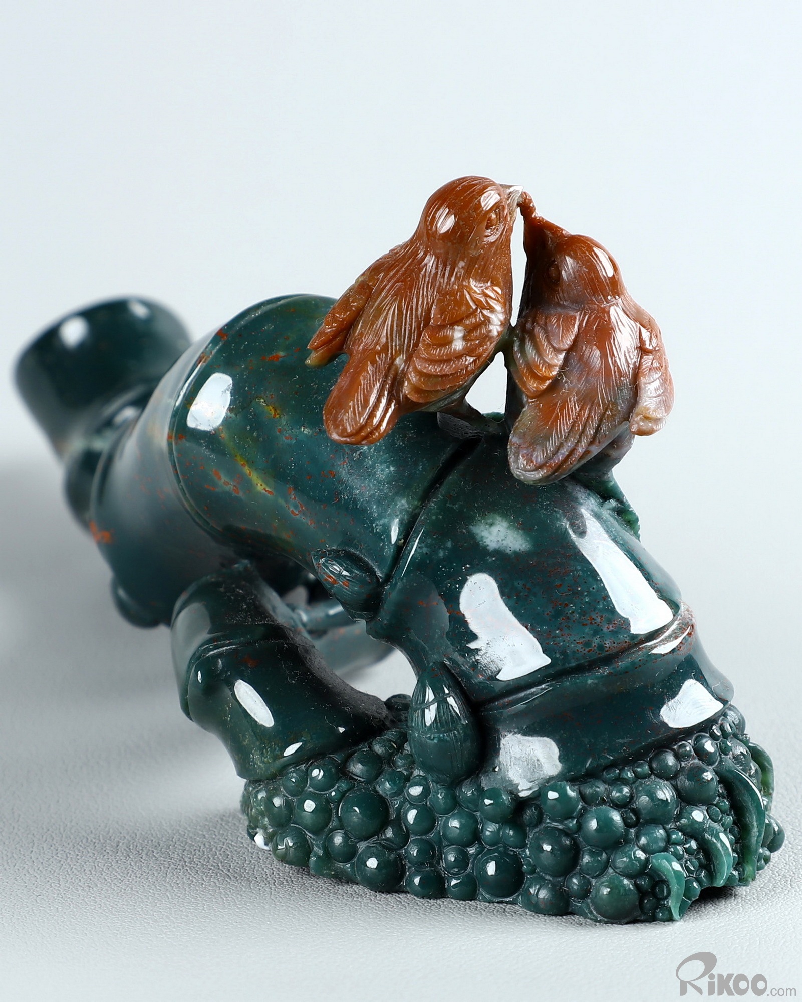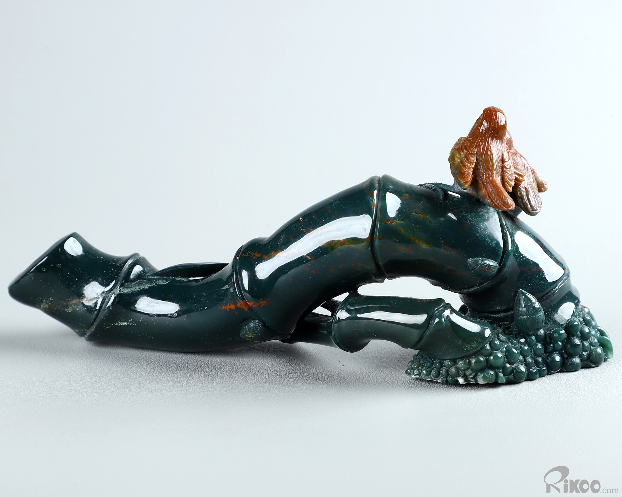 6.8" Bloodstone Crystal Ingenious Color Carvings Birds & Bamboo Crystal carved Sculpture