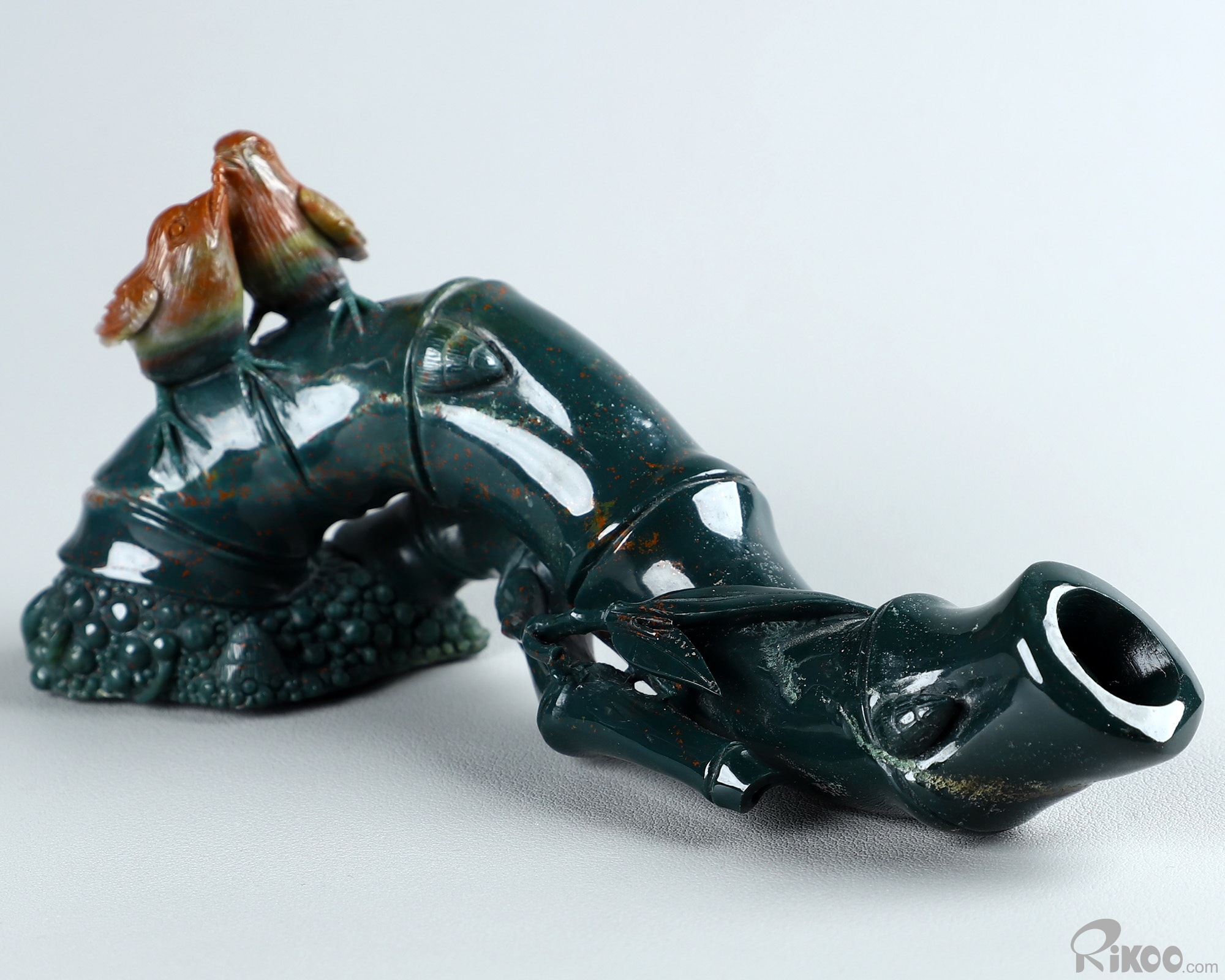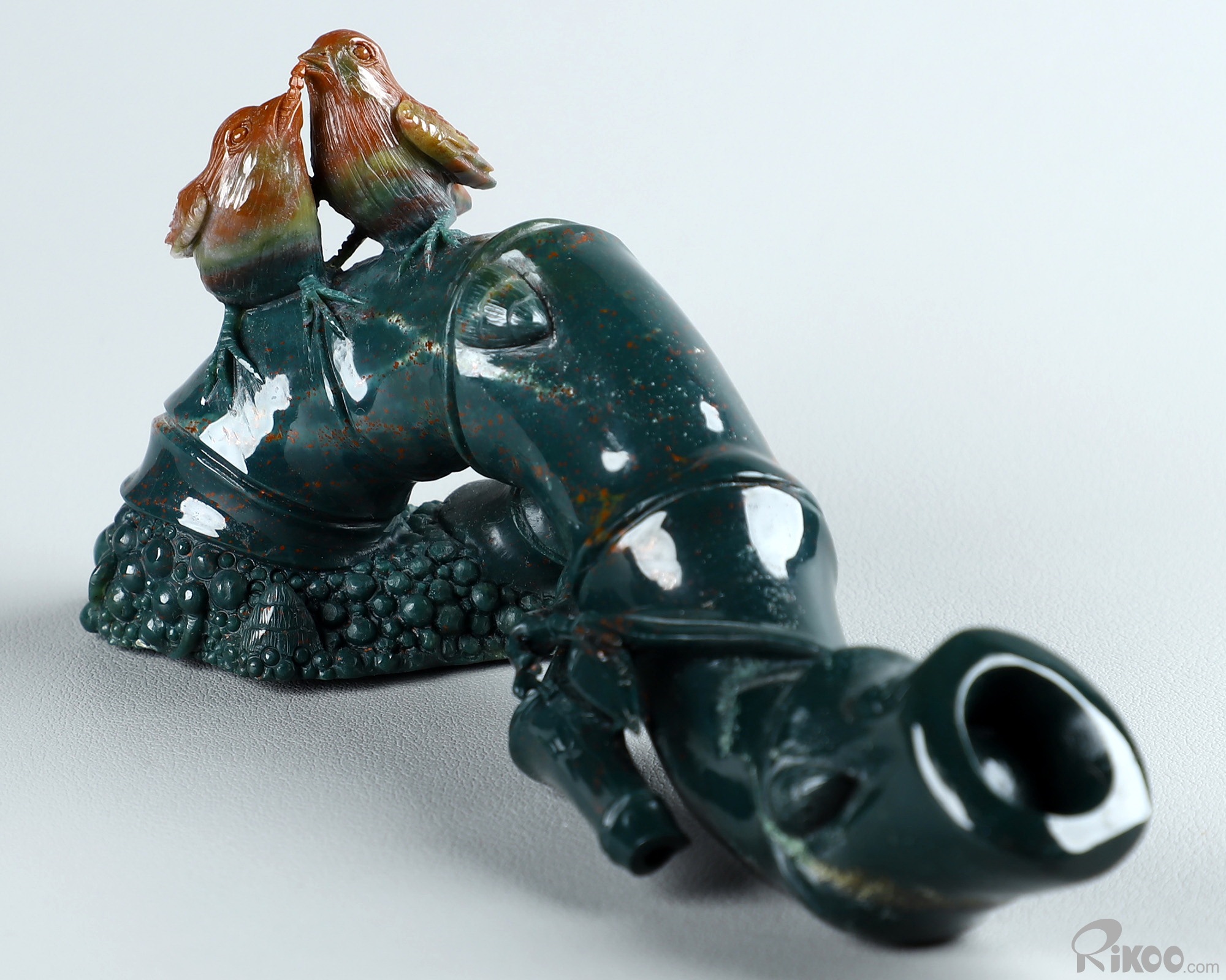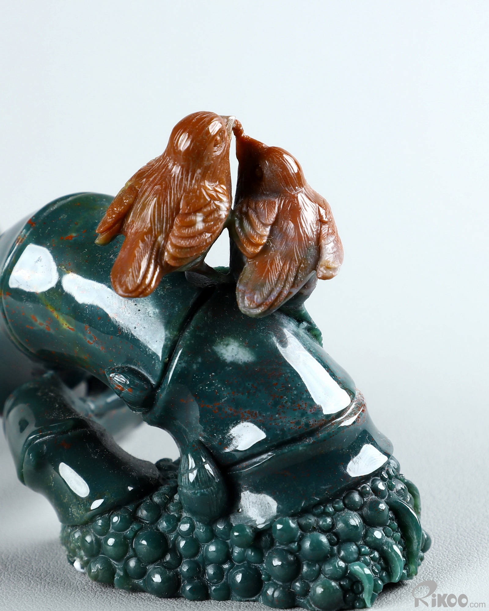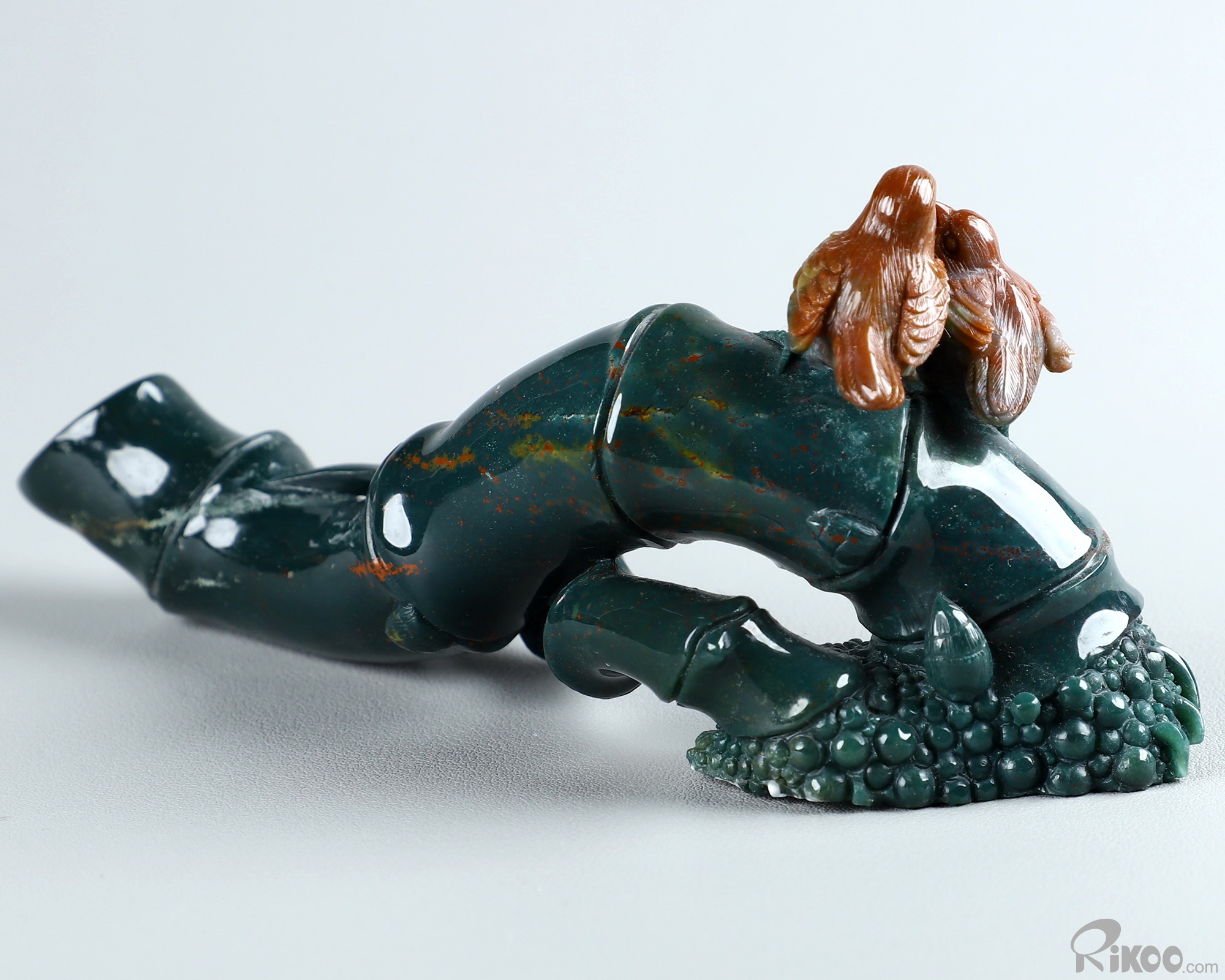 6.8" Bloodstone Crystal Ingenious Color Carvings Birds & Bamboo Crystal carved Sculpture