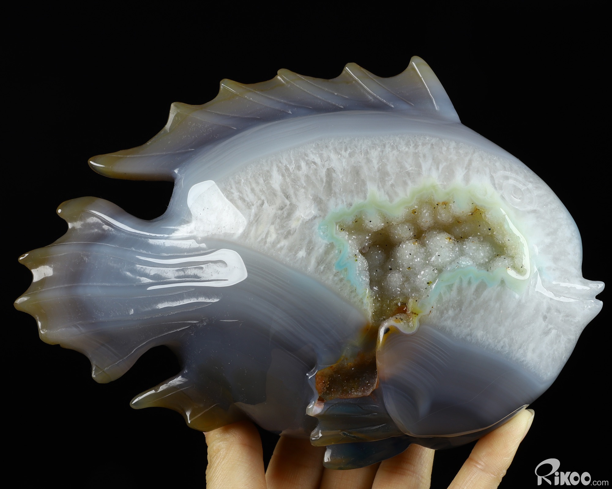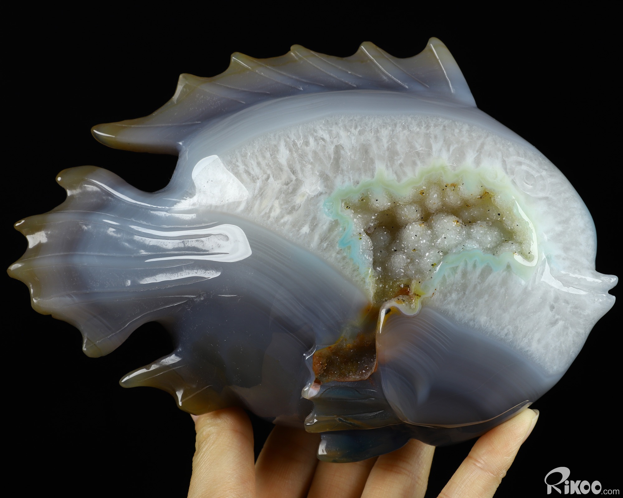 6.8" Gray & White Agate Crystal Fish, Crystal Healing