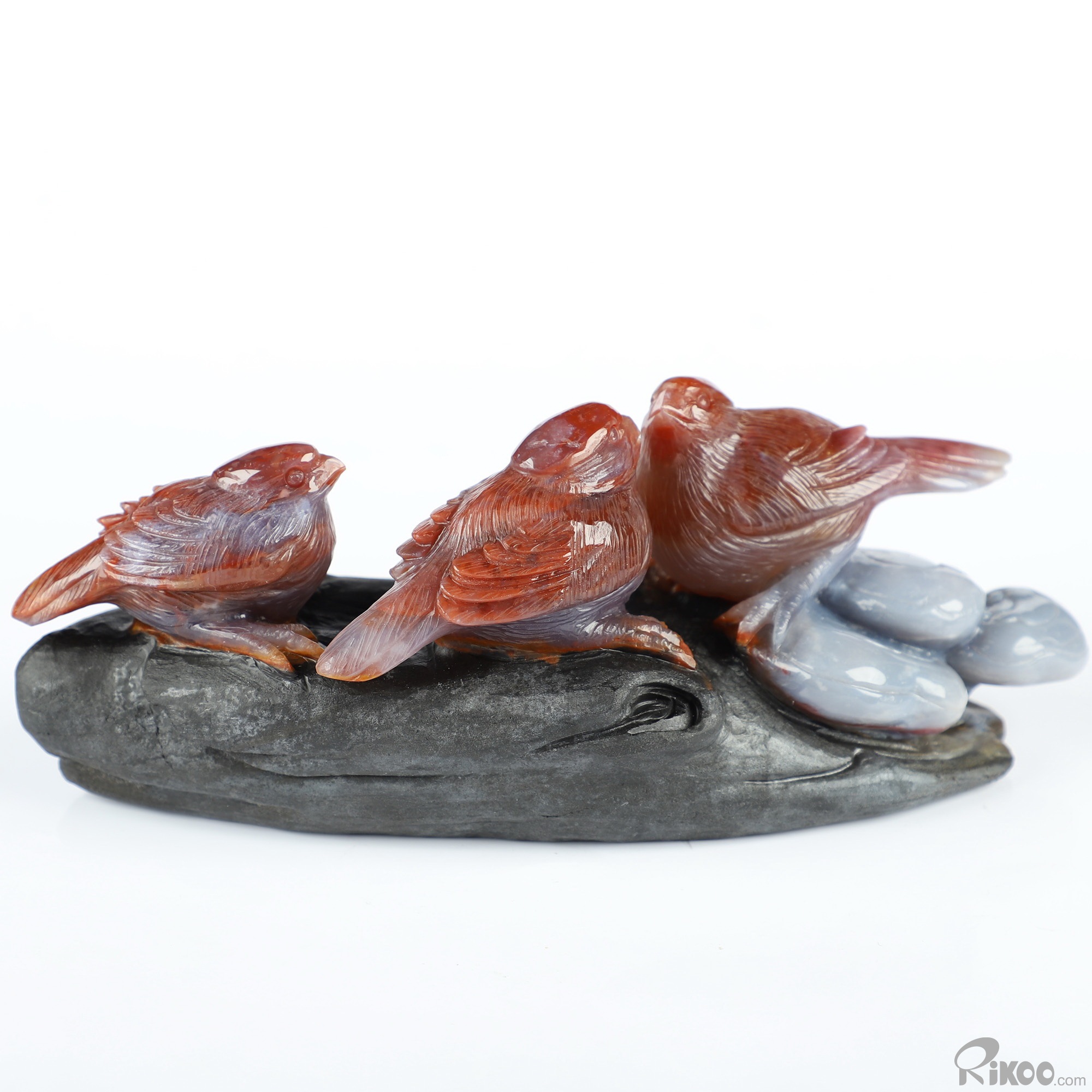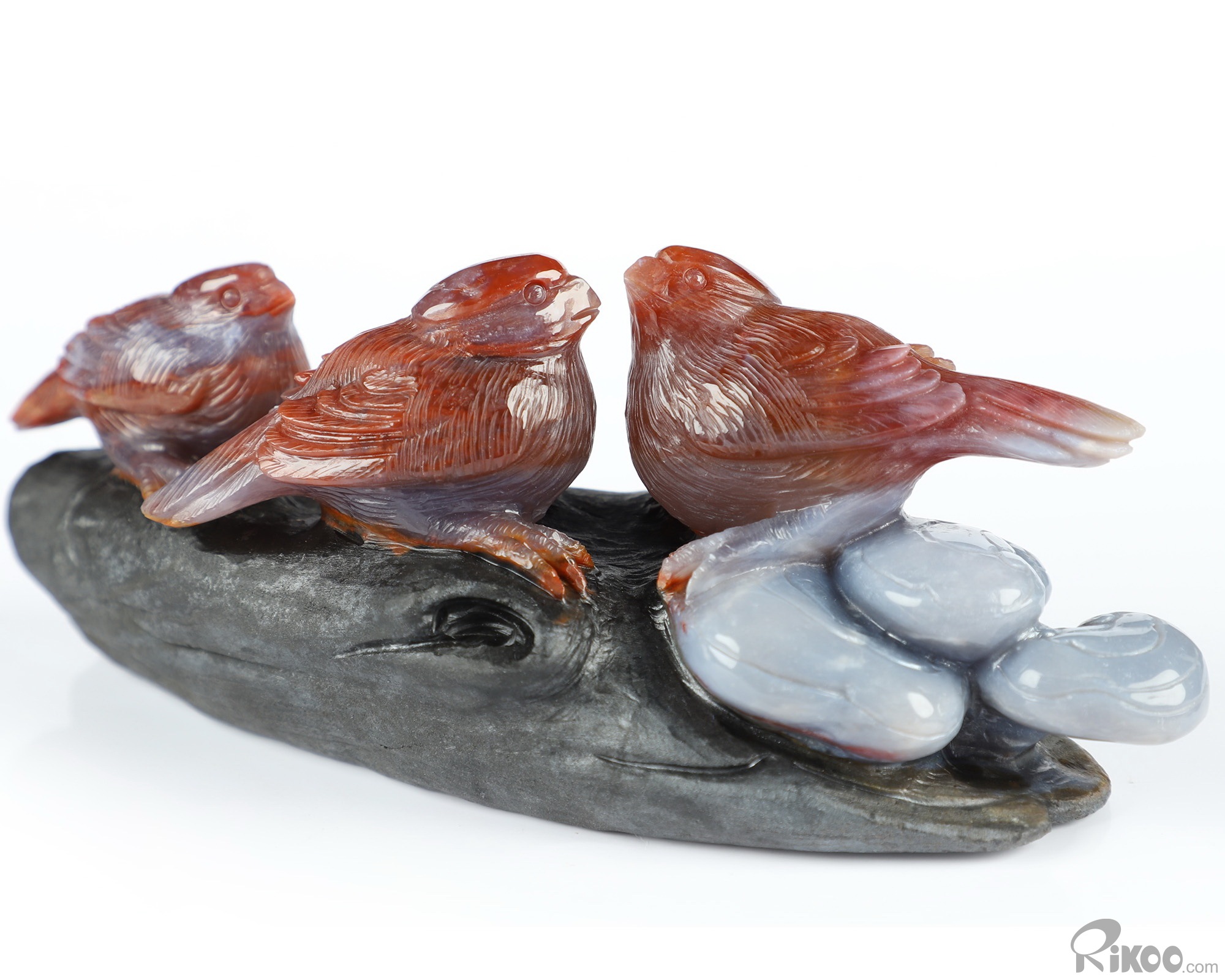 You are looking at an Indian Agate sculpture. The sculpture is 6.8 inches long.