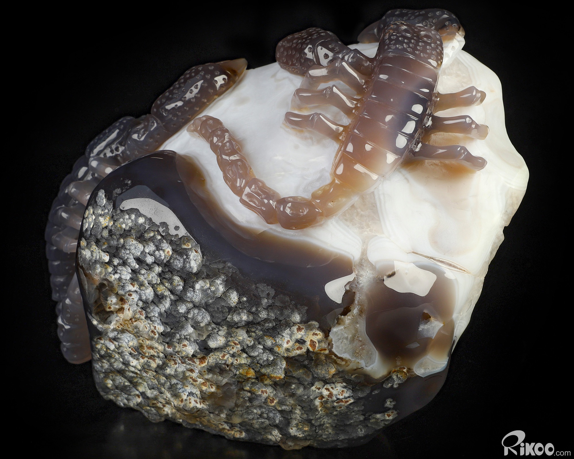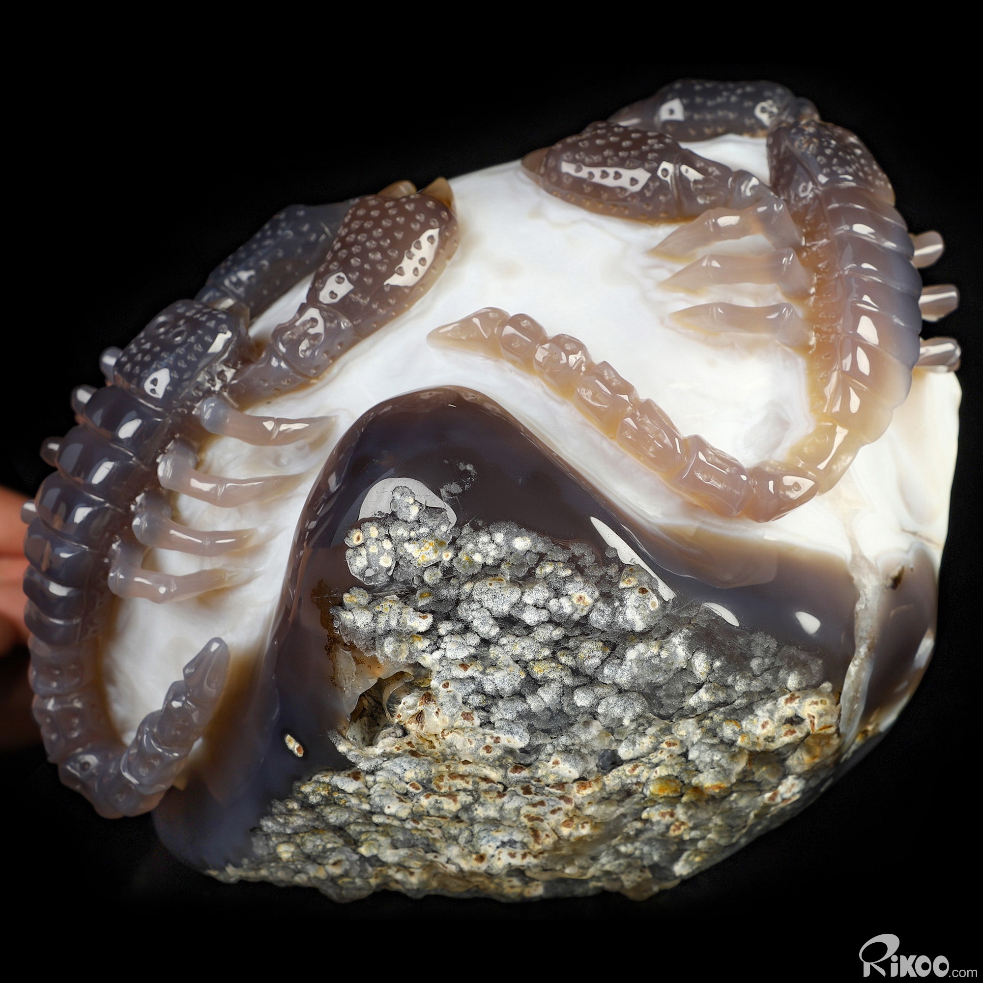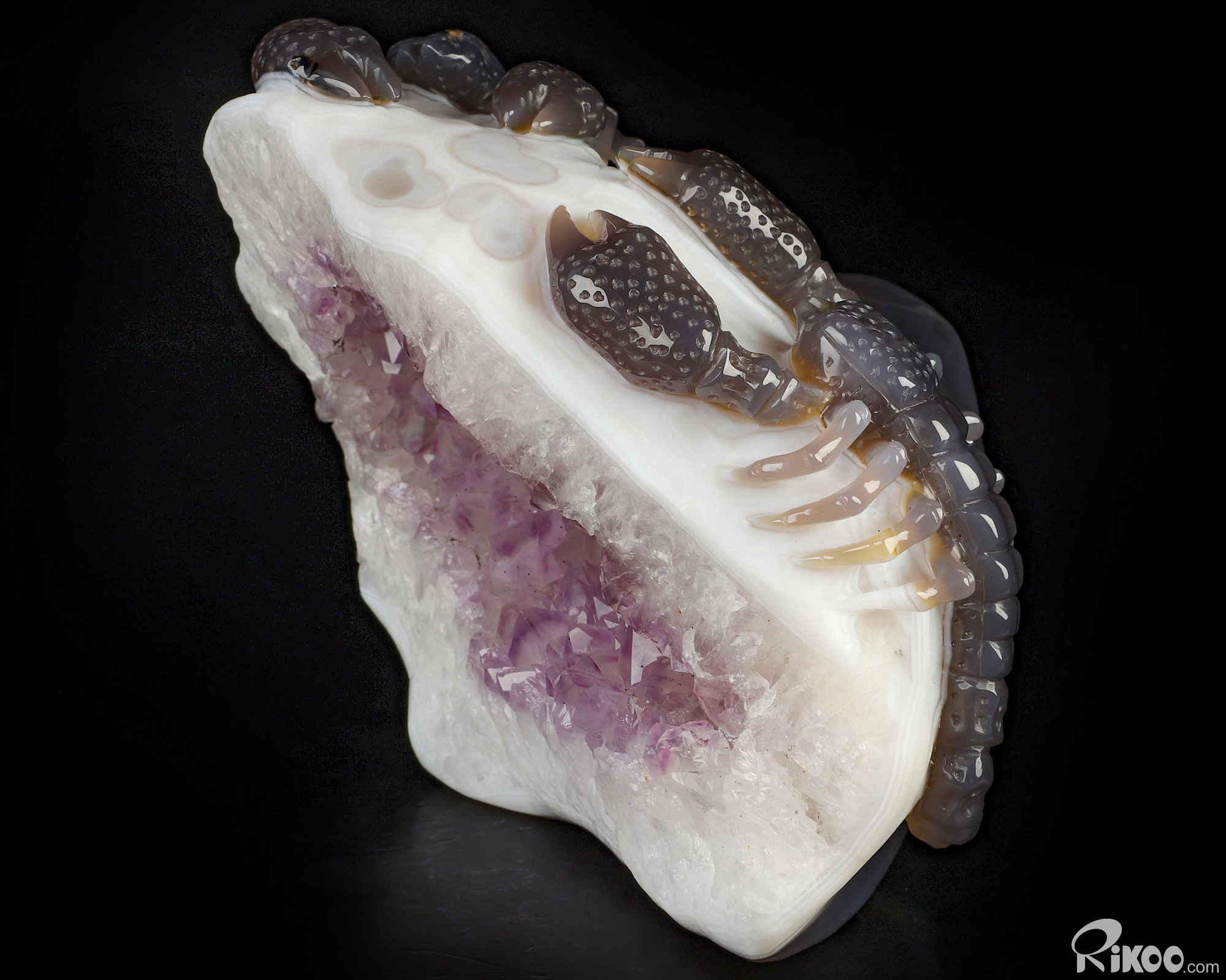 6.9" Agate Amethyst Geode Hand Carved Crystal Scorpion Sculpture, Crystal Healing