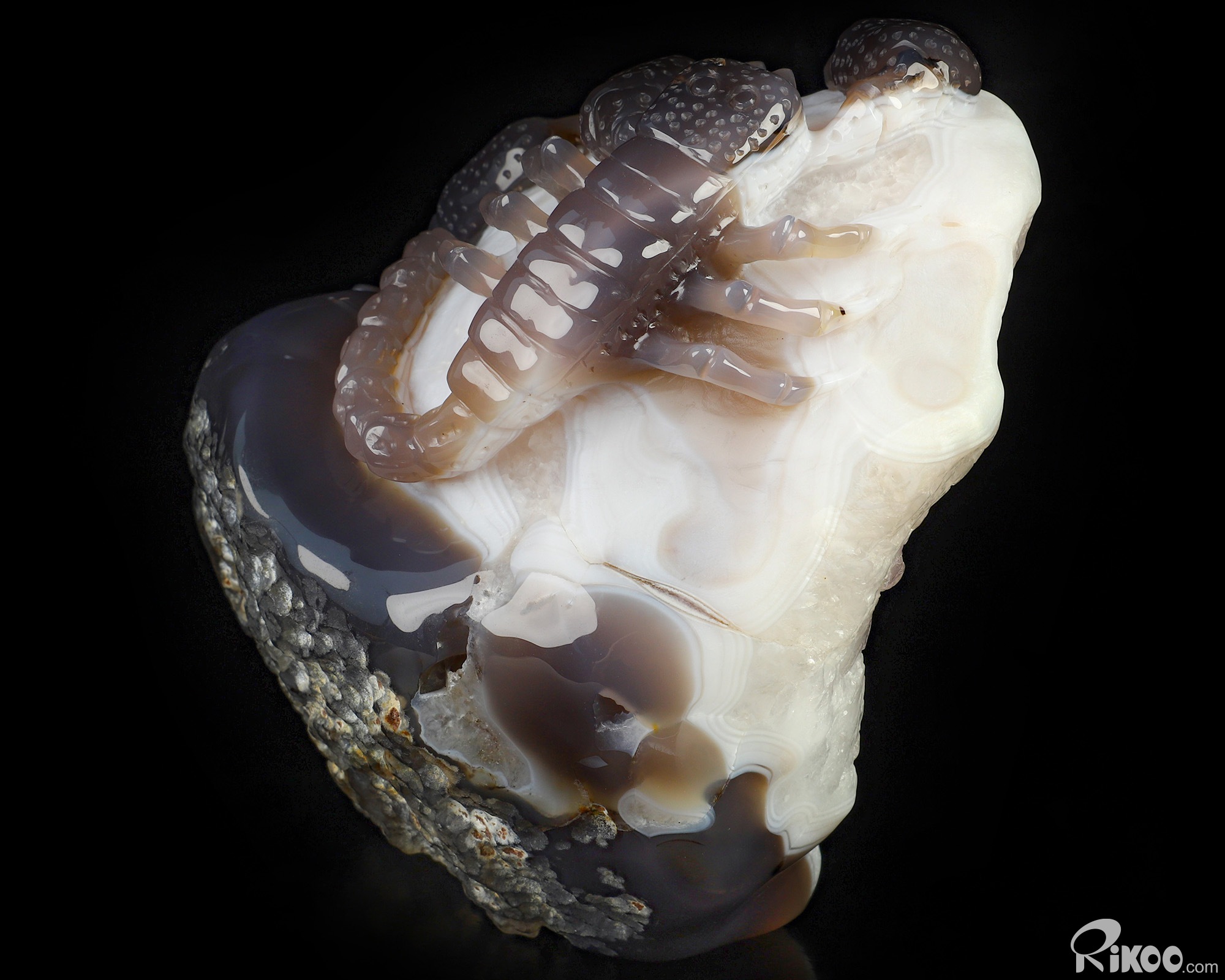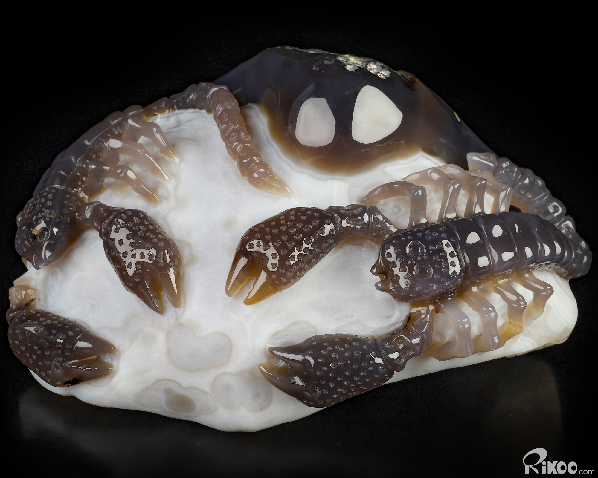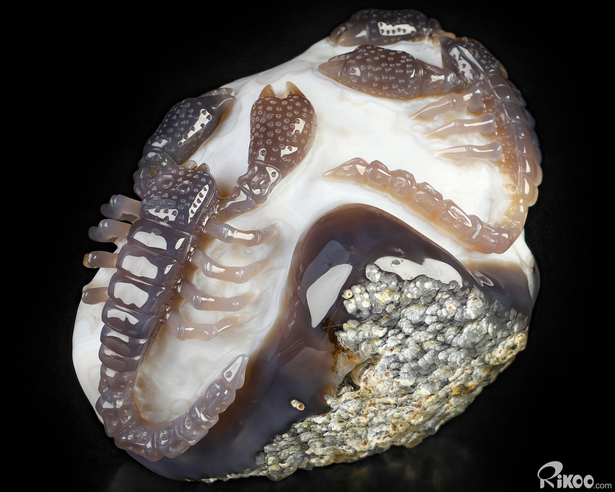 6.9" Agate Amethyst Geode Hand Carved Crystal Scorpion Sculpture, Crystal Healing