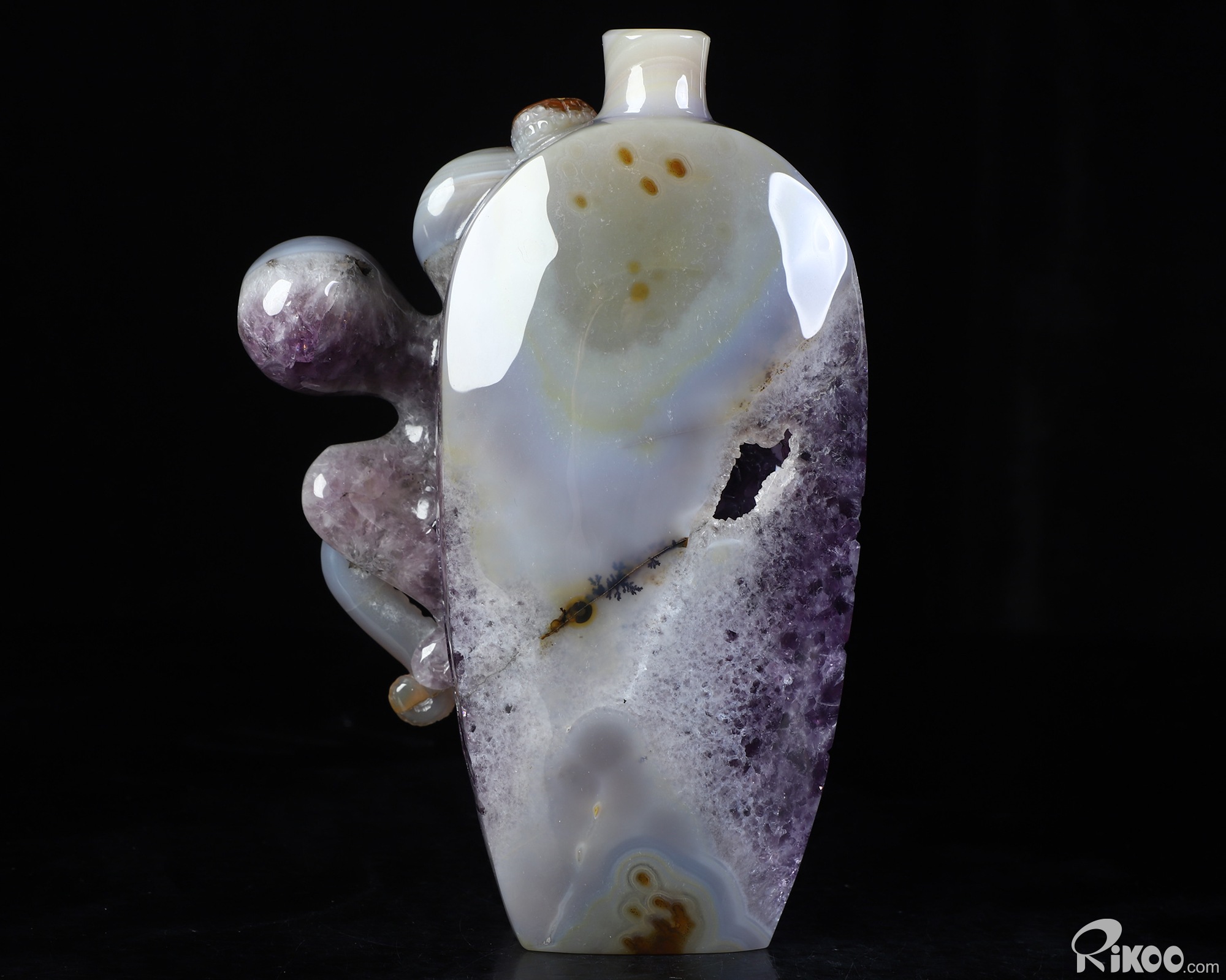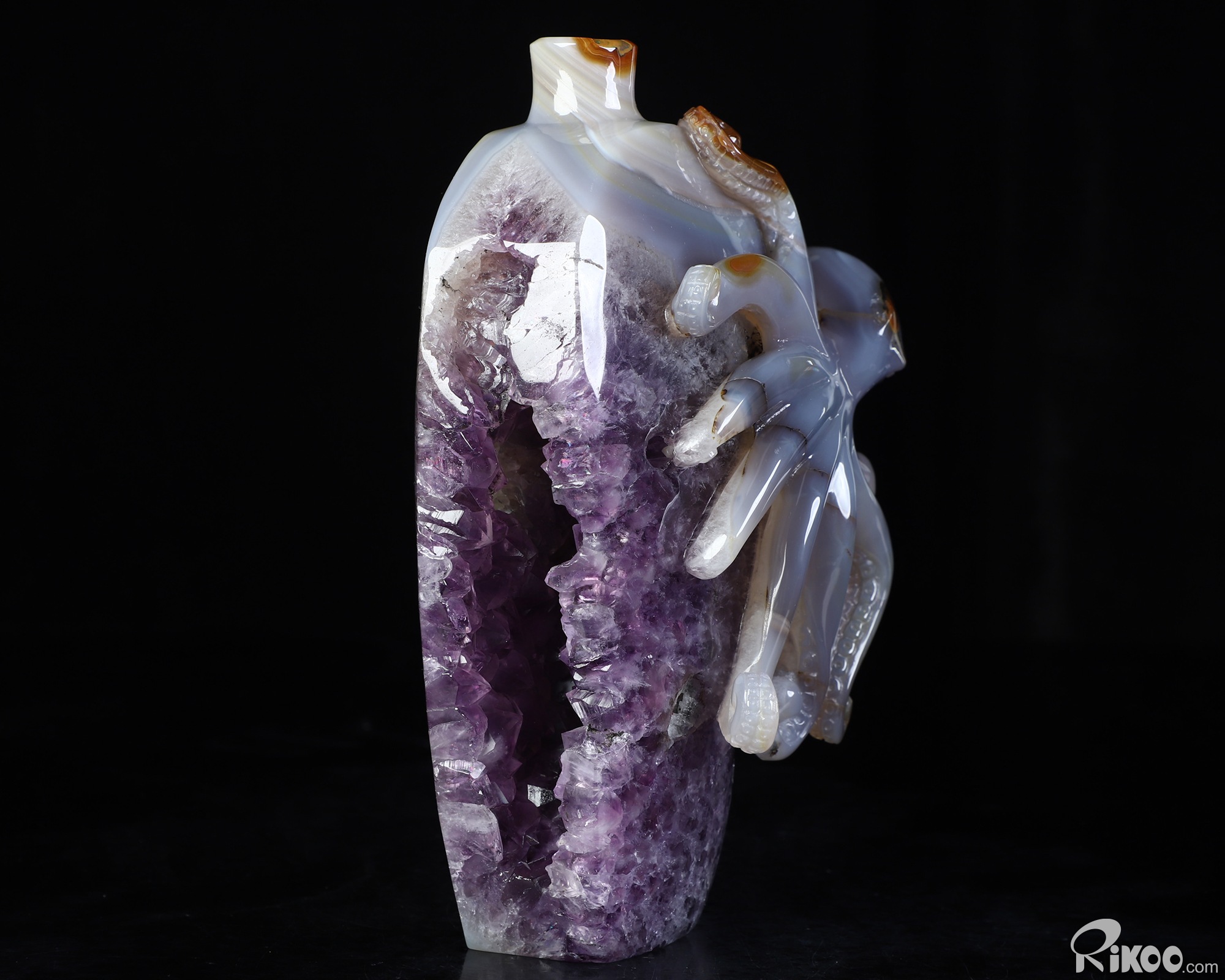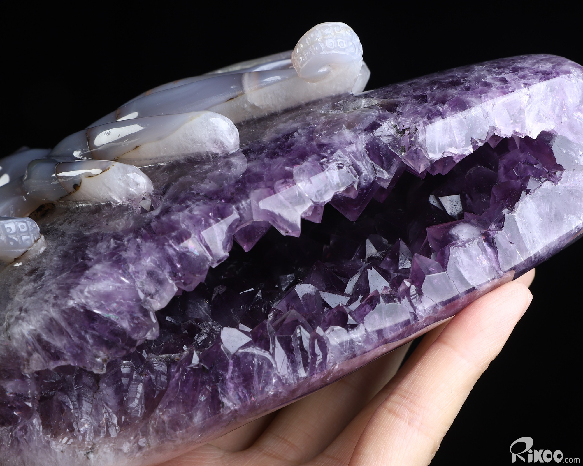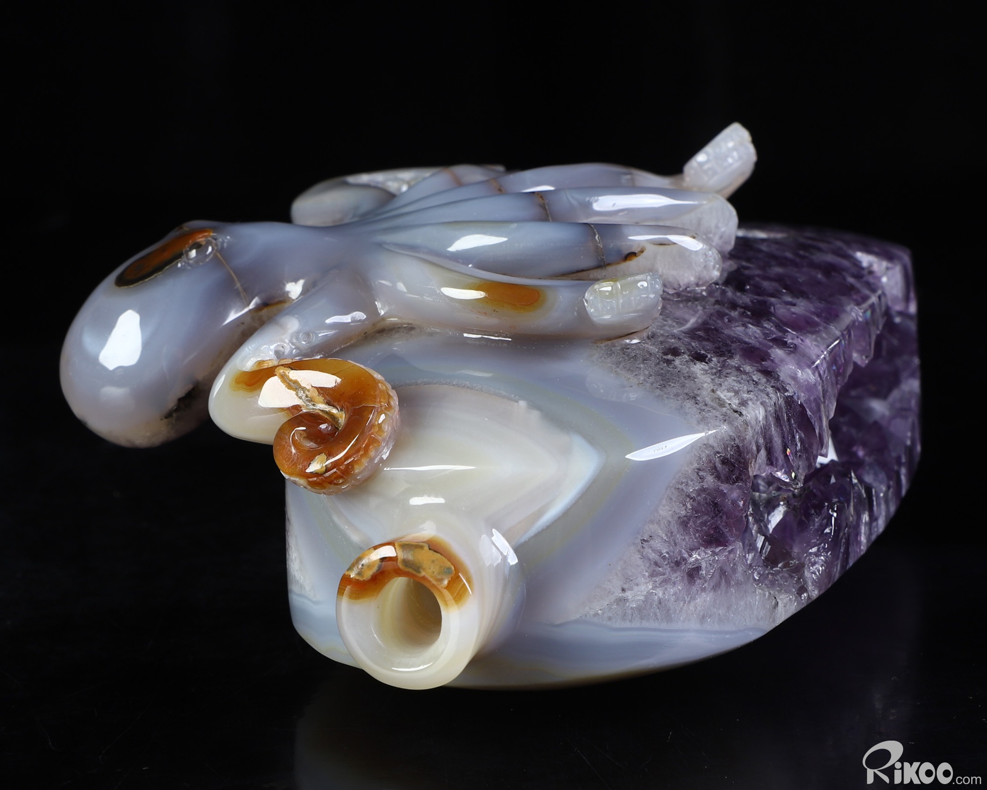 6.9" Agate Geode Hand Carved Crystal Octopus Vase Sculpture, Crystal Healing