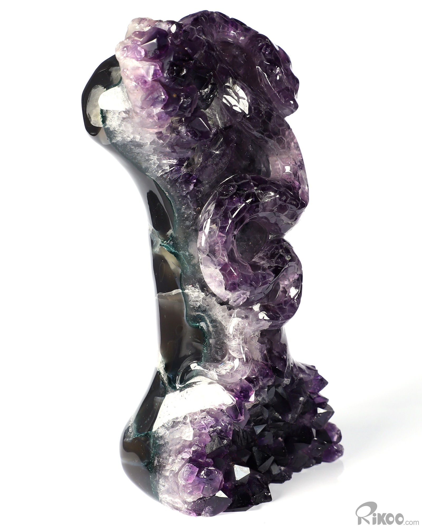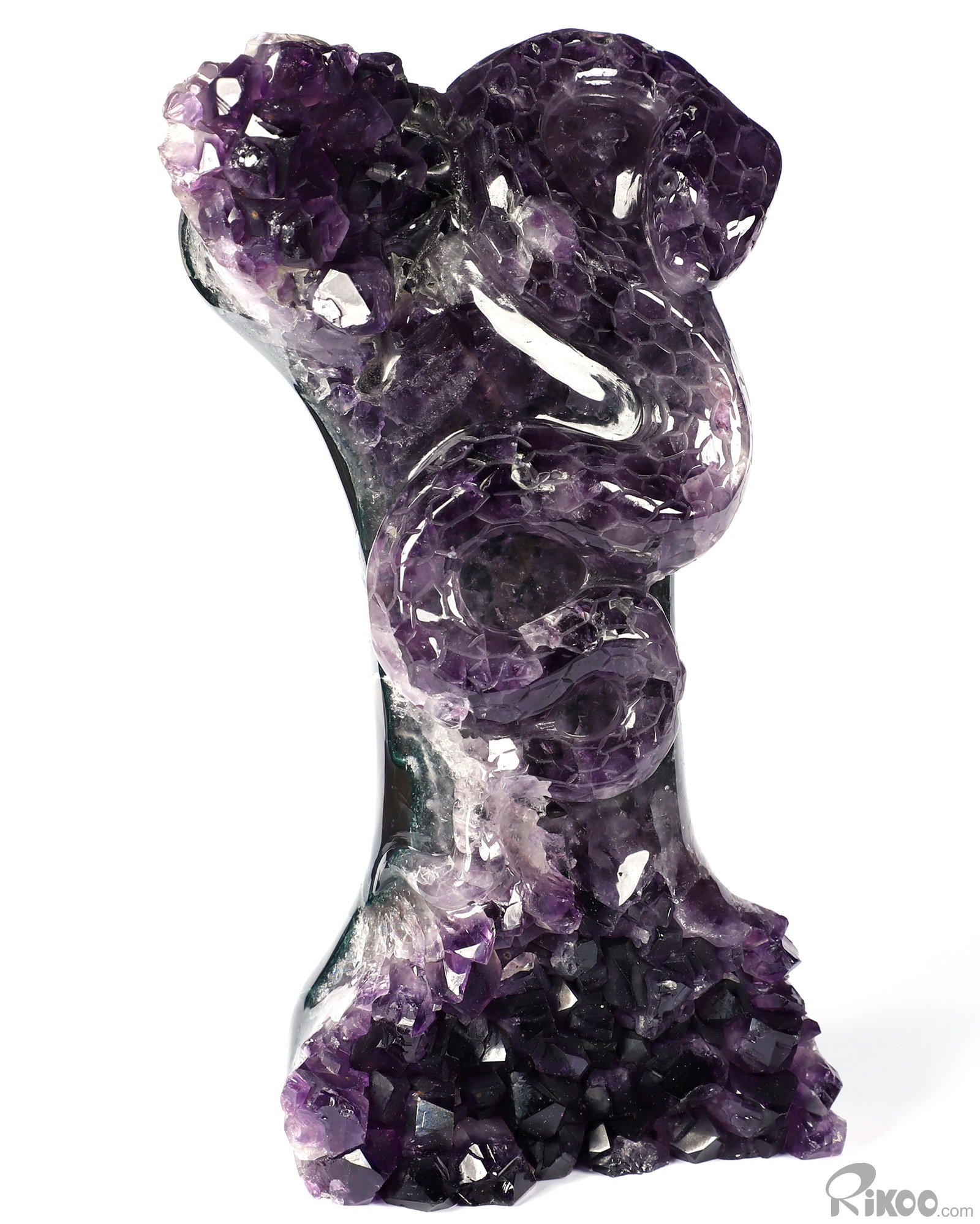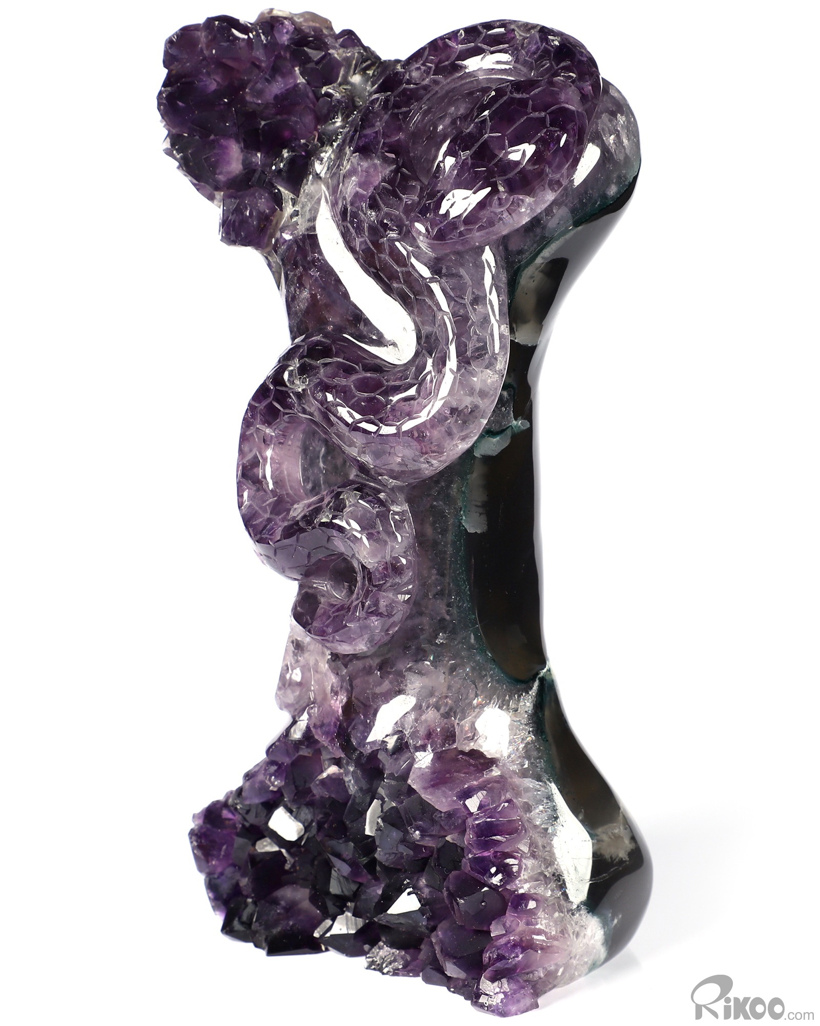 6.9" Amethyst & Agate Hand Carved Crystal Snake Sculpture, Crystal Healing