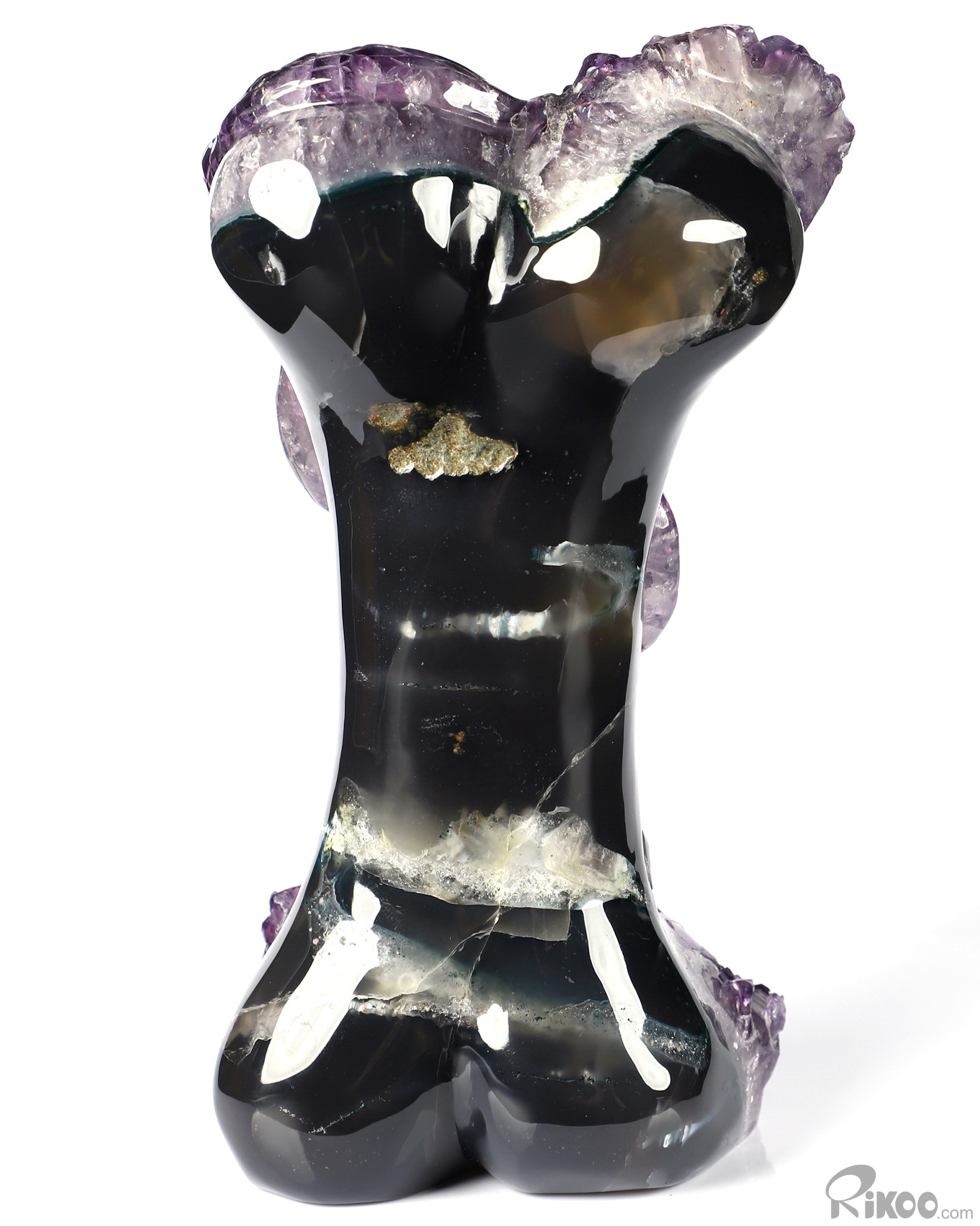 You are looking at a Amethyst & Agate sculpture. The sculpture is 6.9 inches long from front to back.