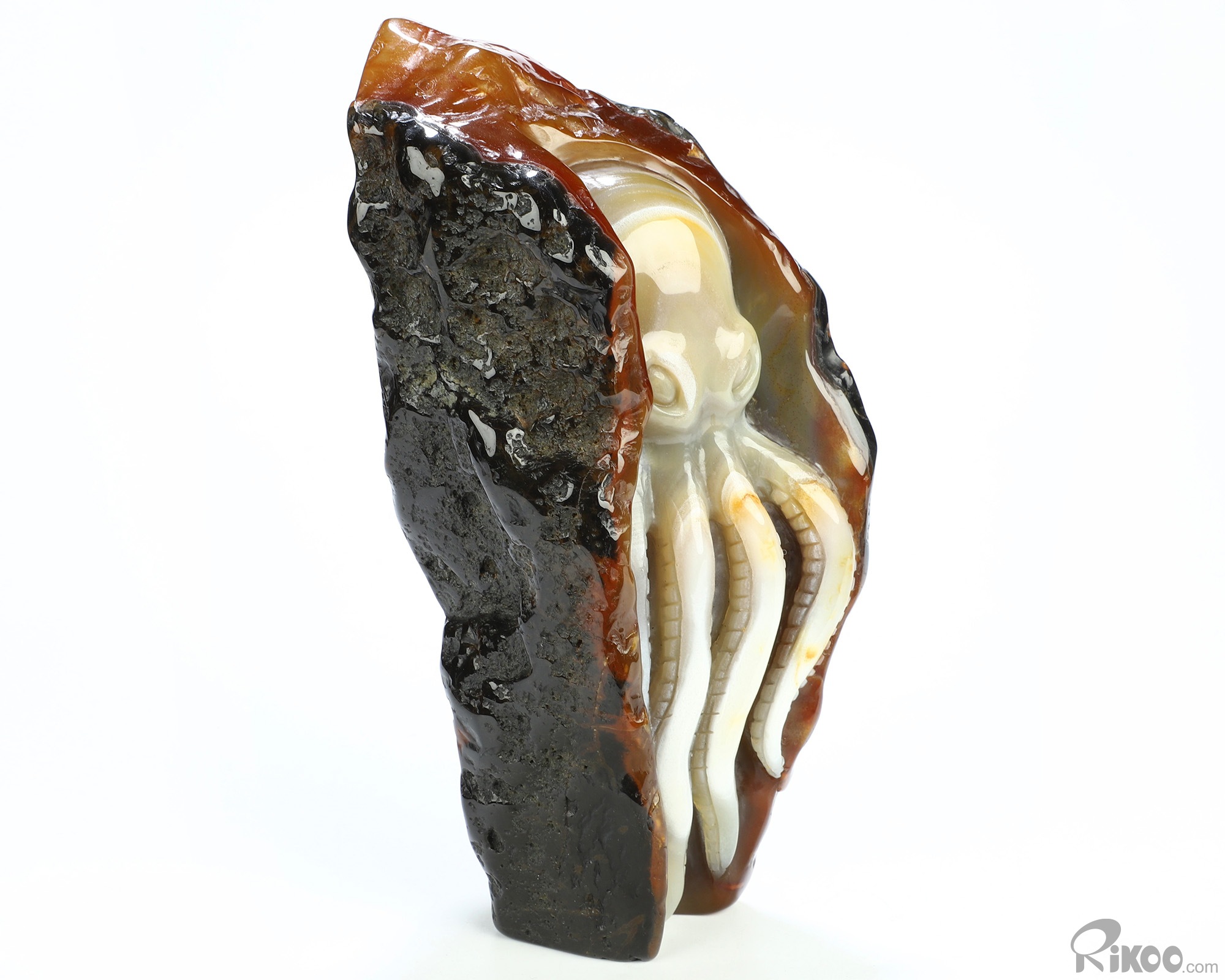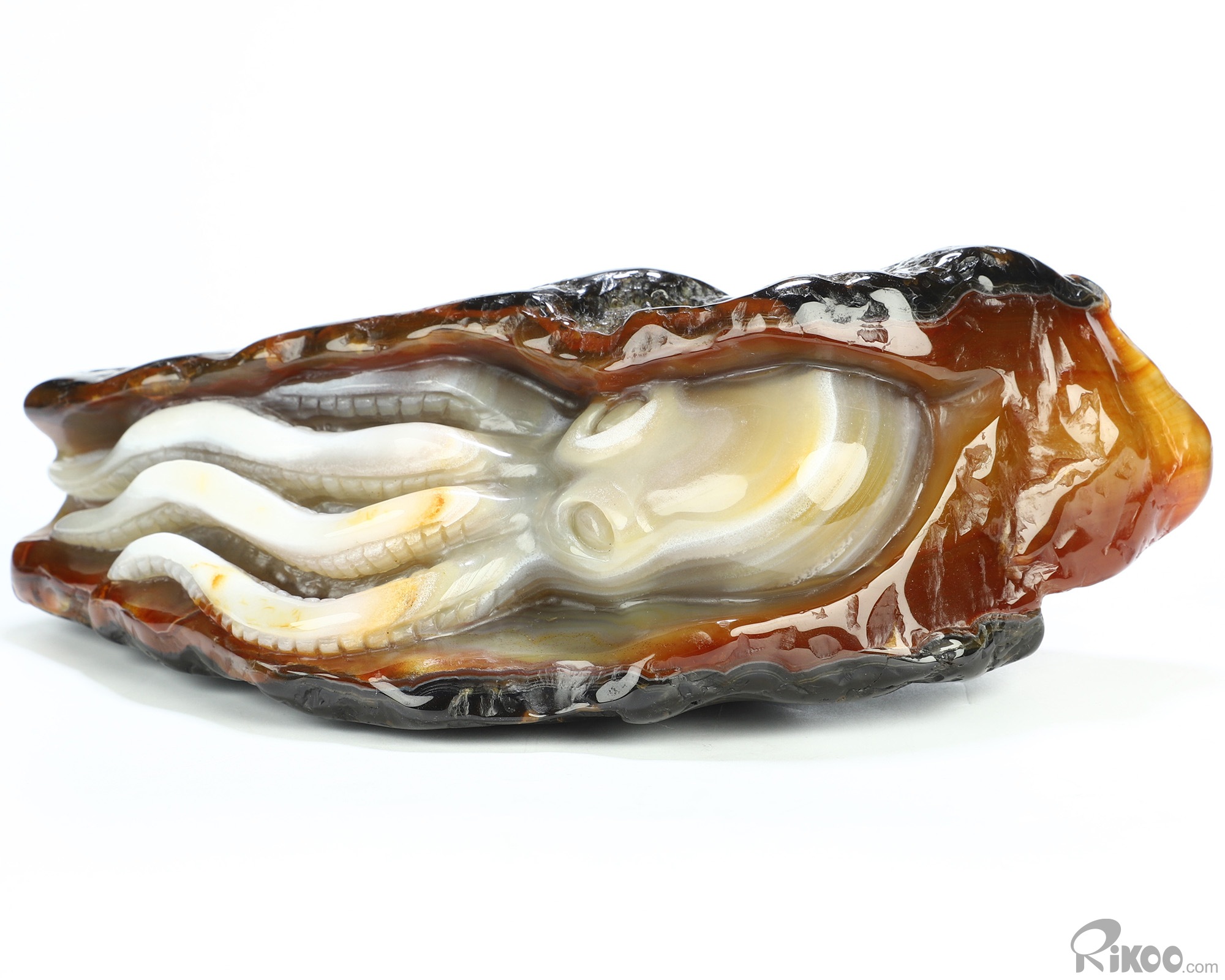 6.9" Carnelian Hand Carved Crystal Octopus Sculpture, Crystal Healing