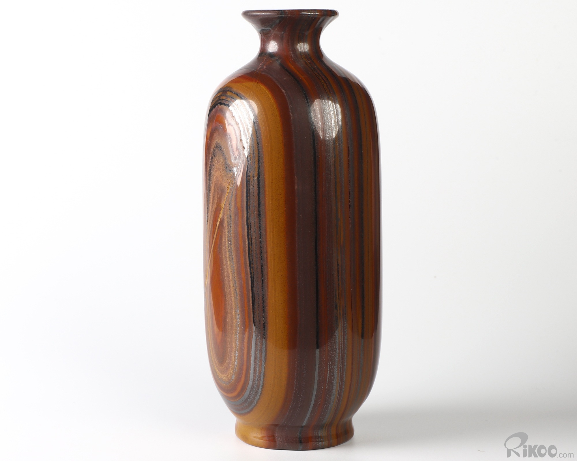 This vase with limited functionality is mainly for display.This stone is most recognized for bringing money, psychic protection, courage, luck confidence, willpower, clear thinking and speaking to show us the personal power in life that we have. Very versatile for the Yellow/Solar Plexus and Crown Chakra. Tiger's Eye works on our mental plane by amplifying thinking and manifesting what you think about. Helps separate thoughts from feelings, more centered, less emotional. Tiger's Eye allows us to recognize both our talents and our faults. It can reveal your true needs without our self-serving or rigid mental attitudes getting in the way. Use Tiger's Eye with malachite or pearl to benefit from their synergy for mental/emotional balance and true understanding. This stone helps change anxiety, fear and obsessiveness into practicality and logic. Has the grounding energy of the earth, but is embellished with a glowing warmth. A stone for people who need more confidence to accomplish their goals. Draws helpful people and material things to the wearer. Centers energy and mental focus. This stone helps us to find our closest version of perfectionism without obsessive behavior.