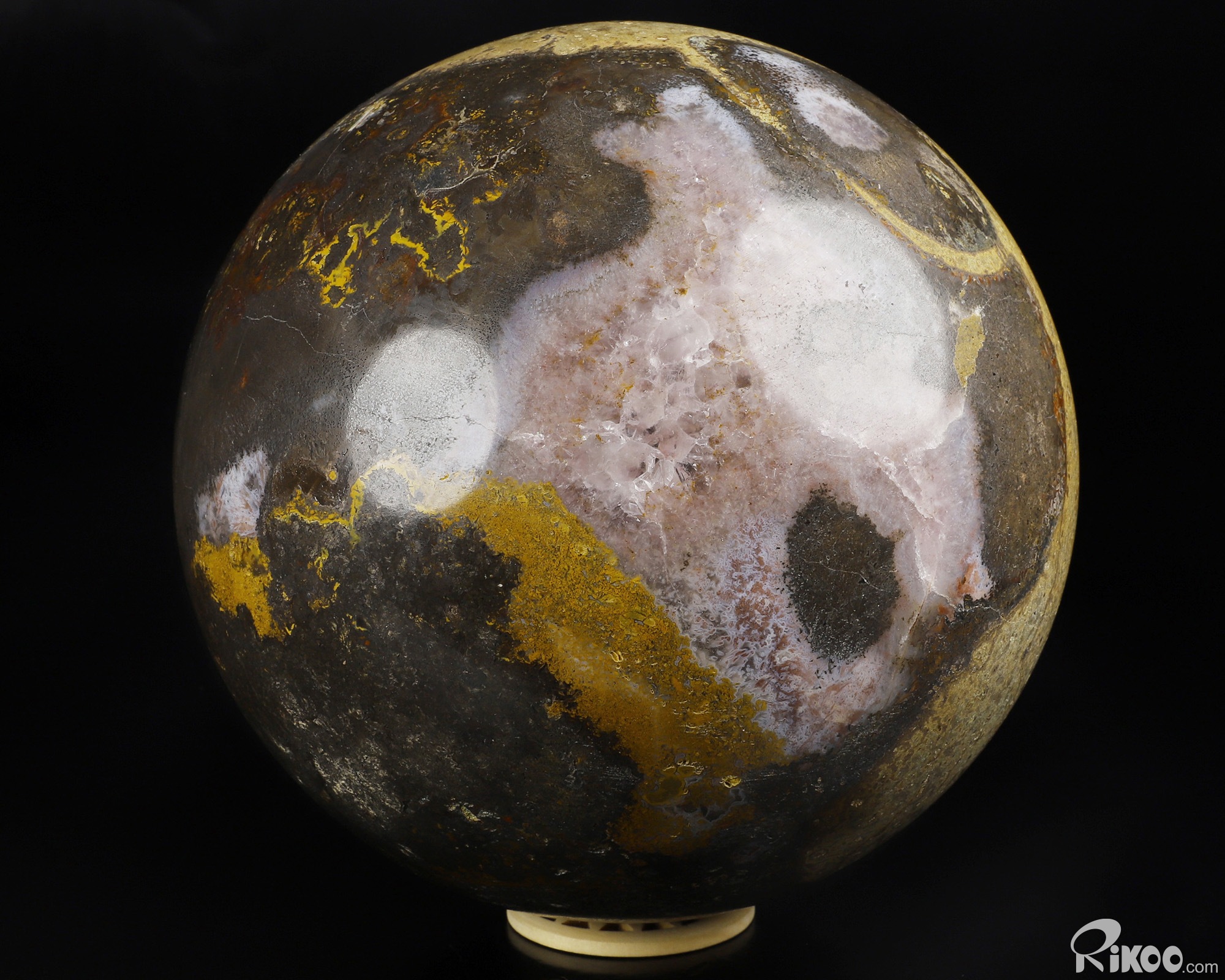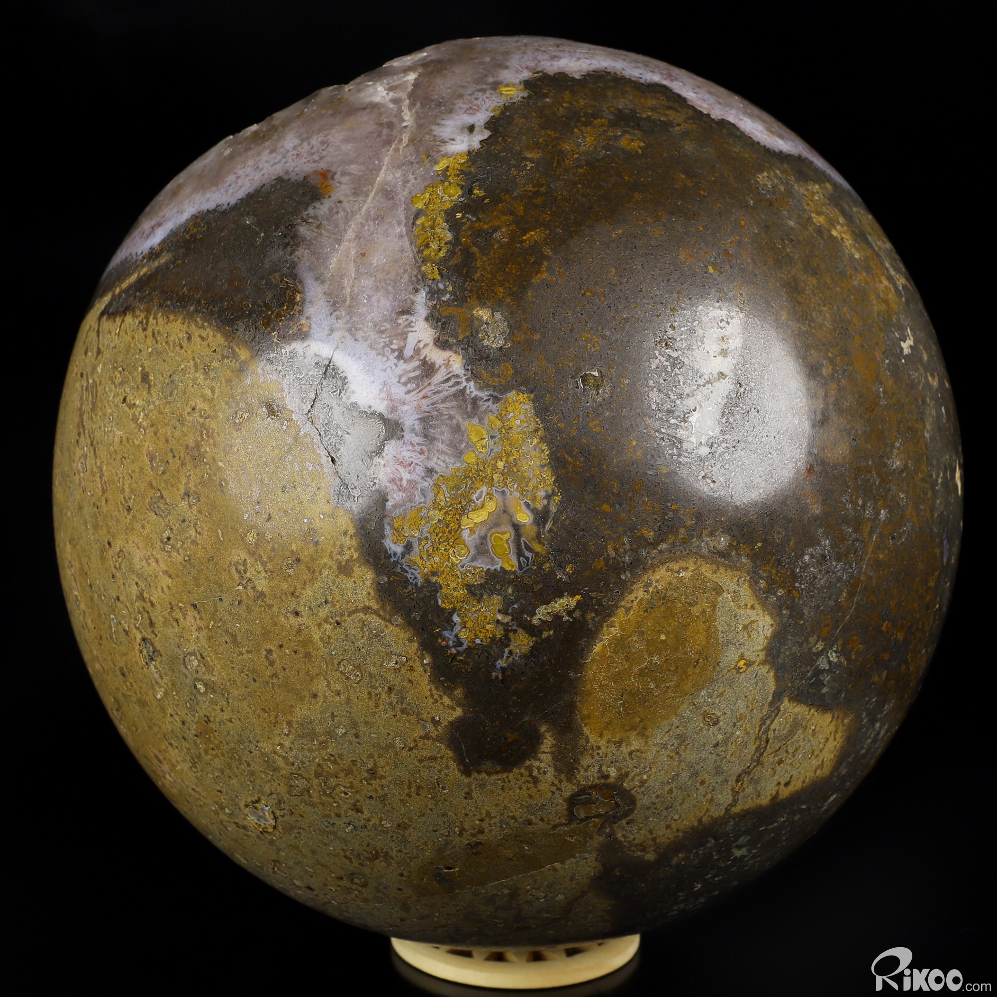 You are looking at a Dinosaur Egg Agate Ball. The Ball is 6.9 inches long from front to back.