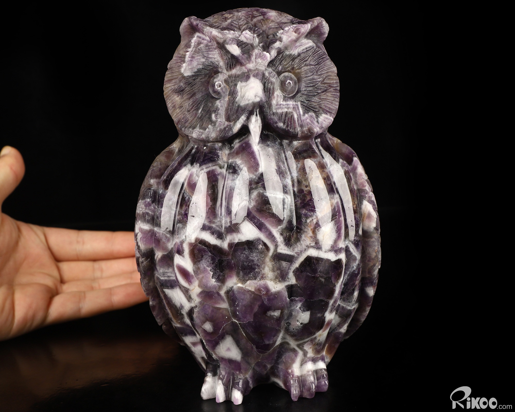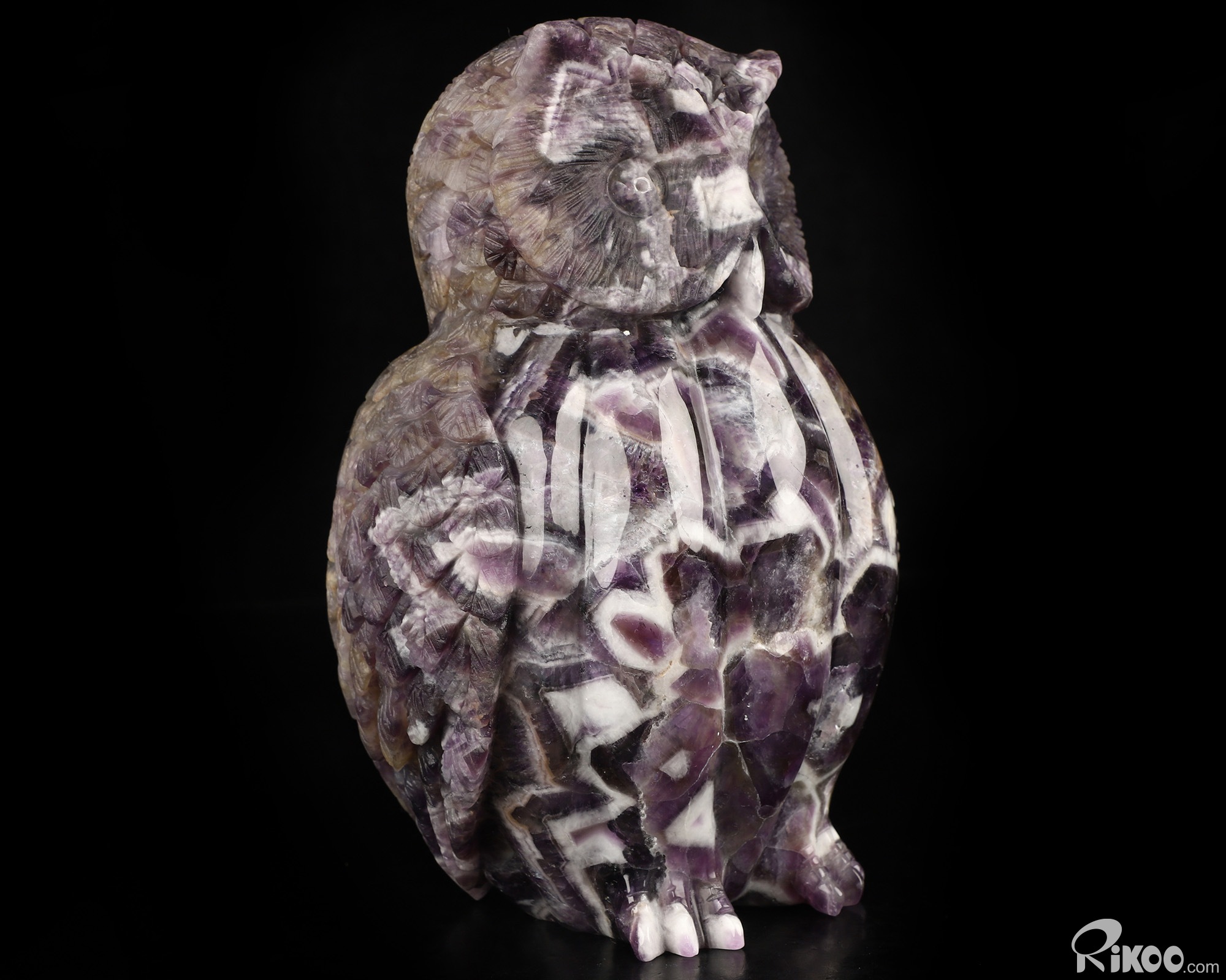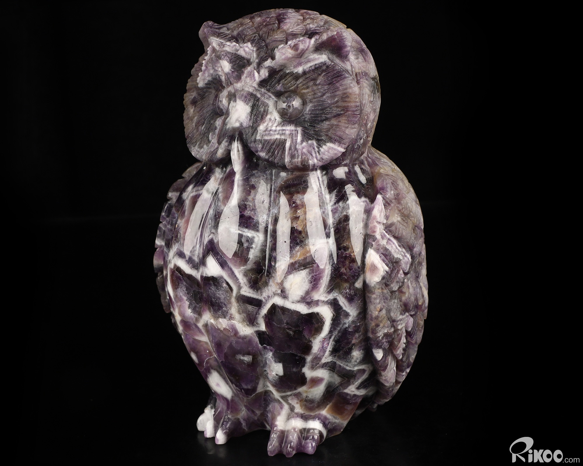 6.9" Dream Chevron Amethyst Hand Carved Crystal Owl Sculpture, Crystal Healing