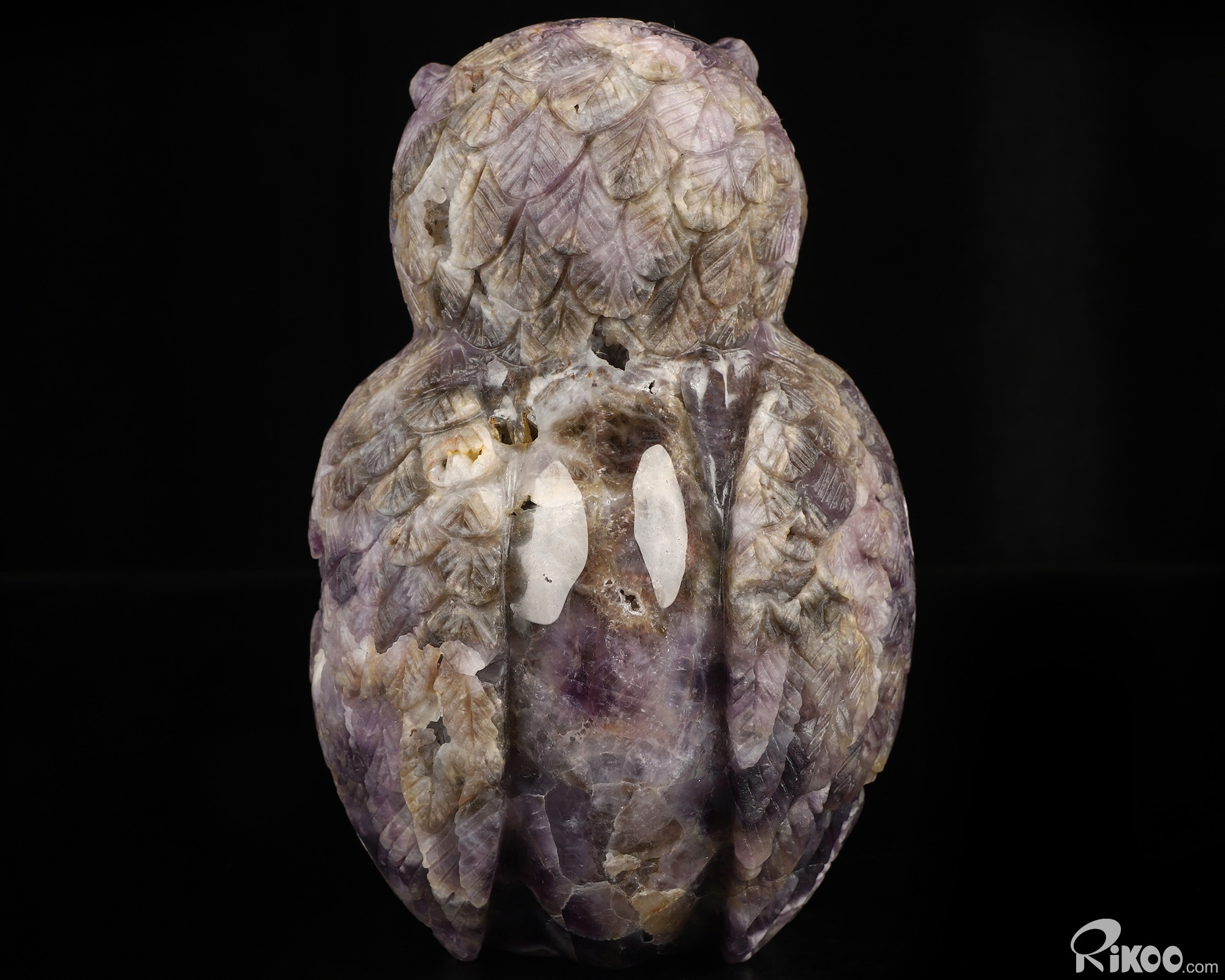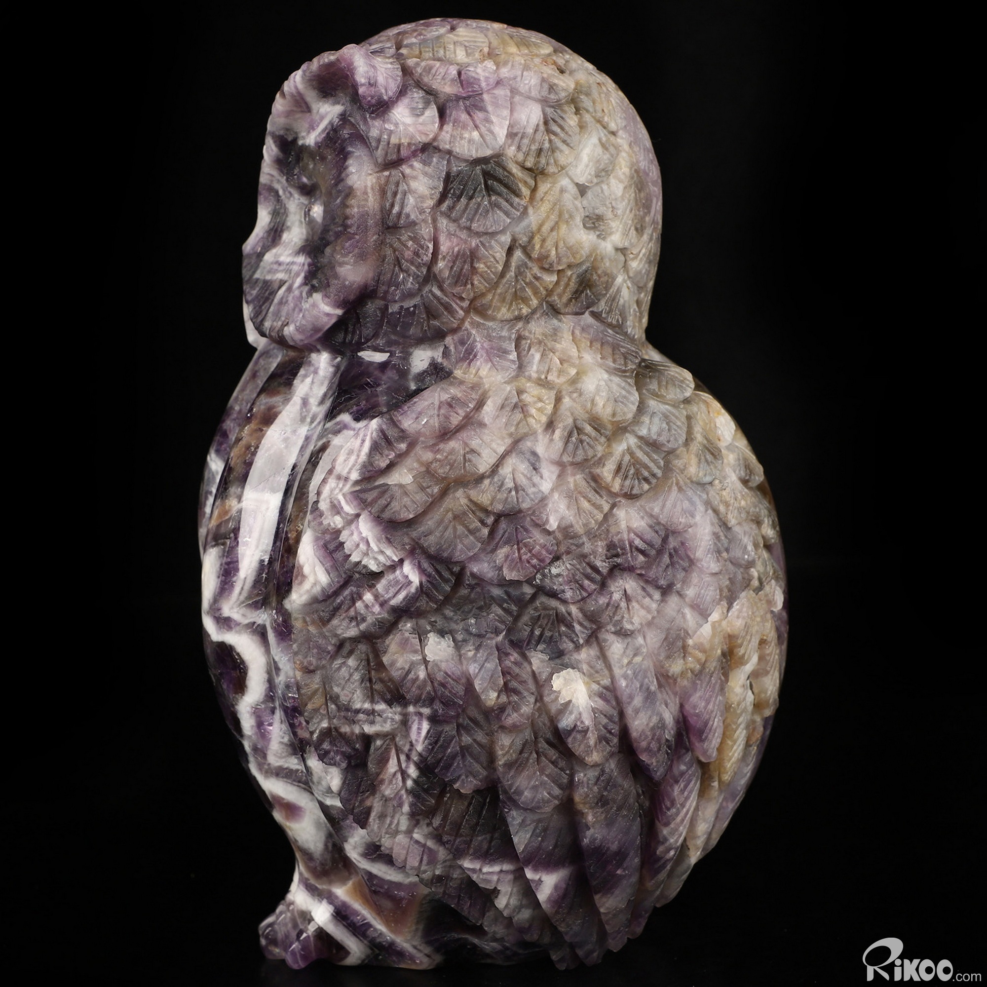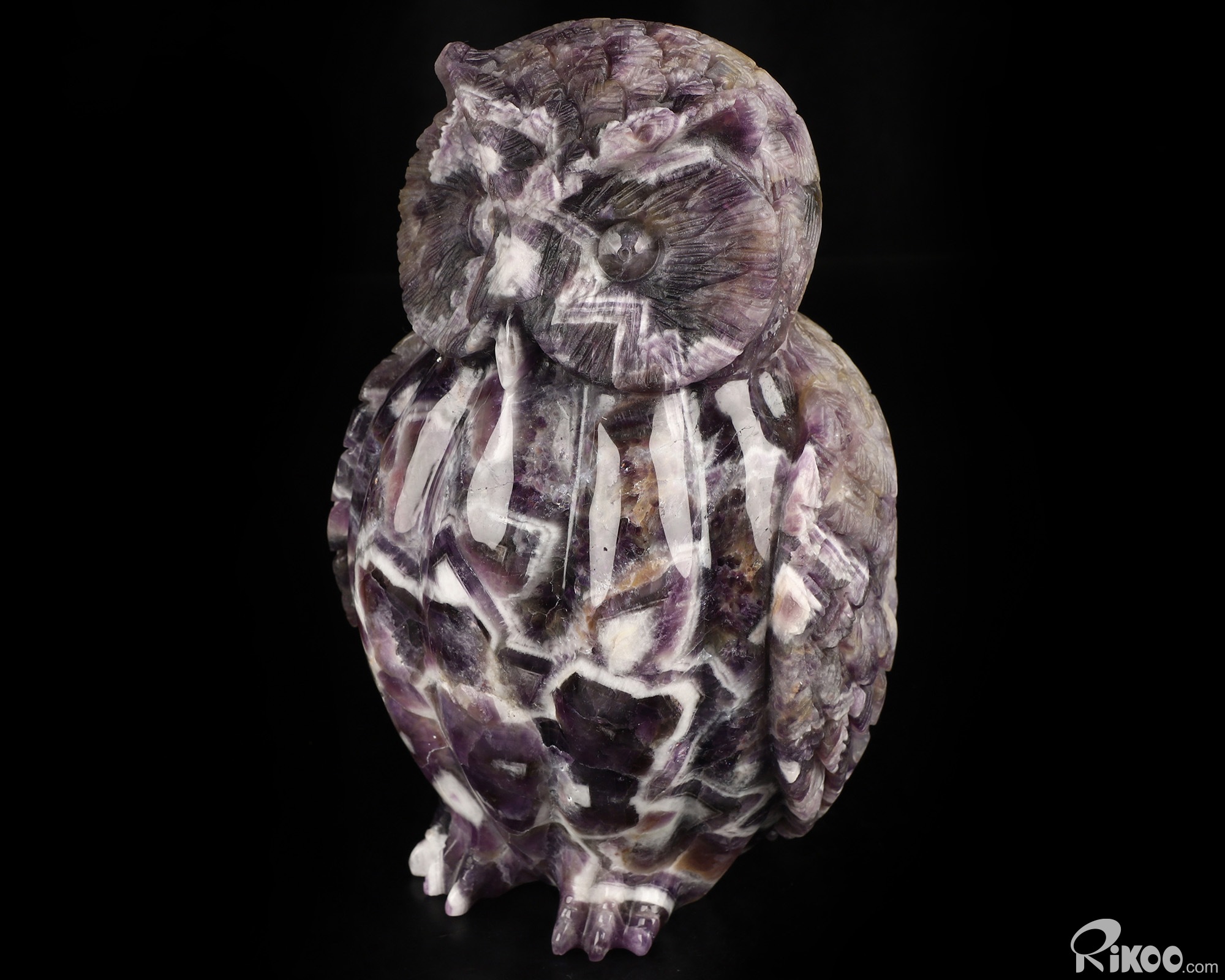 6.9" Dream Chevron Amethyst Hand Carved Crystal Owl Sculpture, Crystal Healing