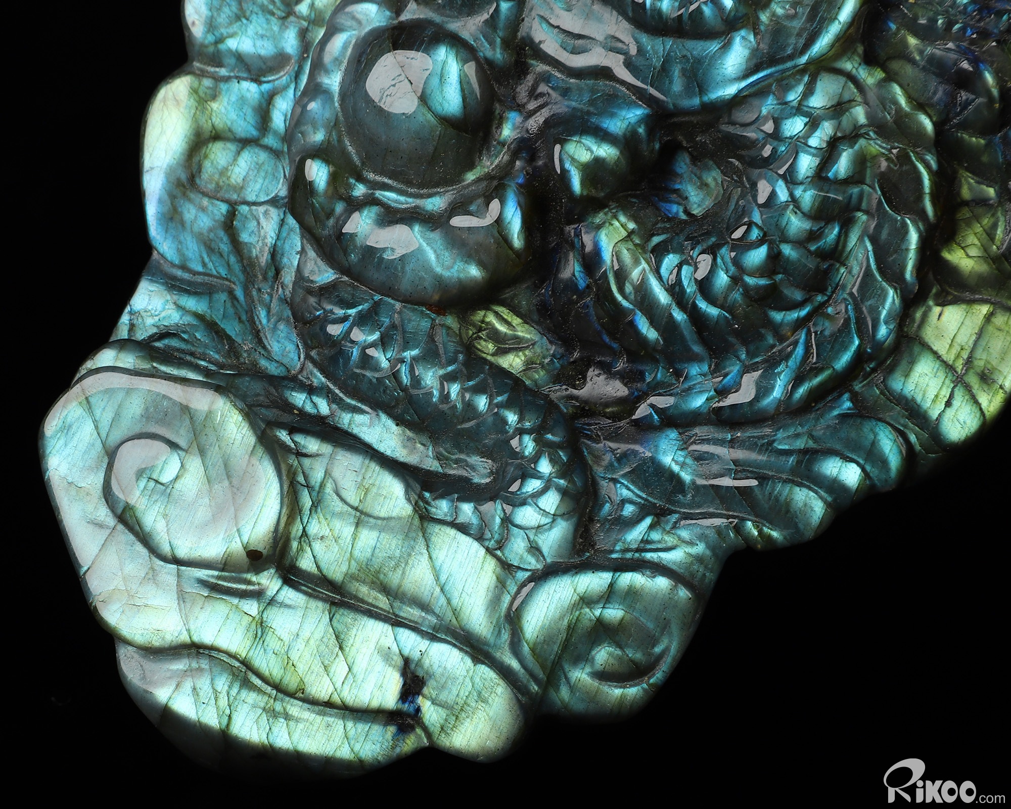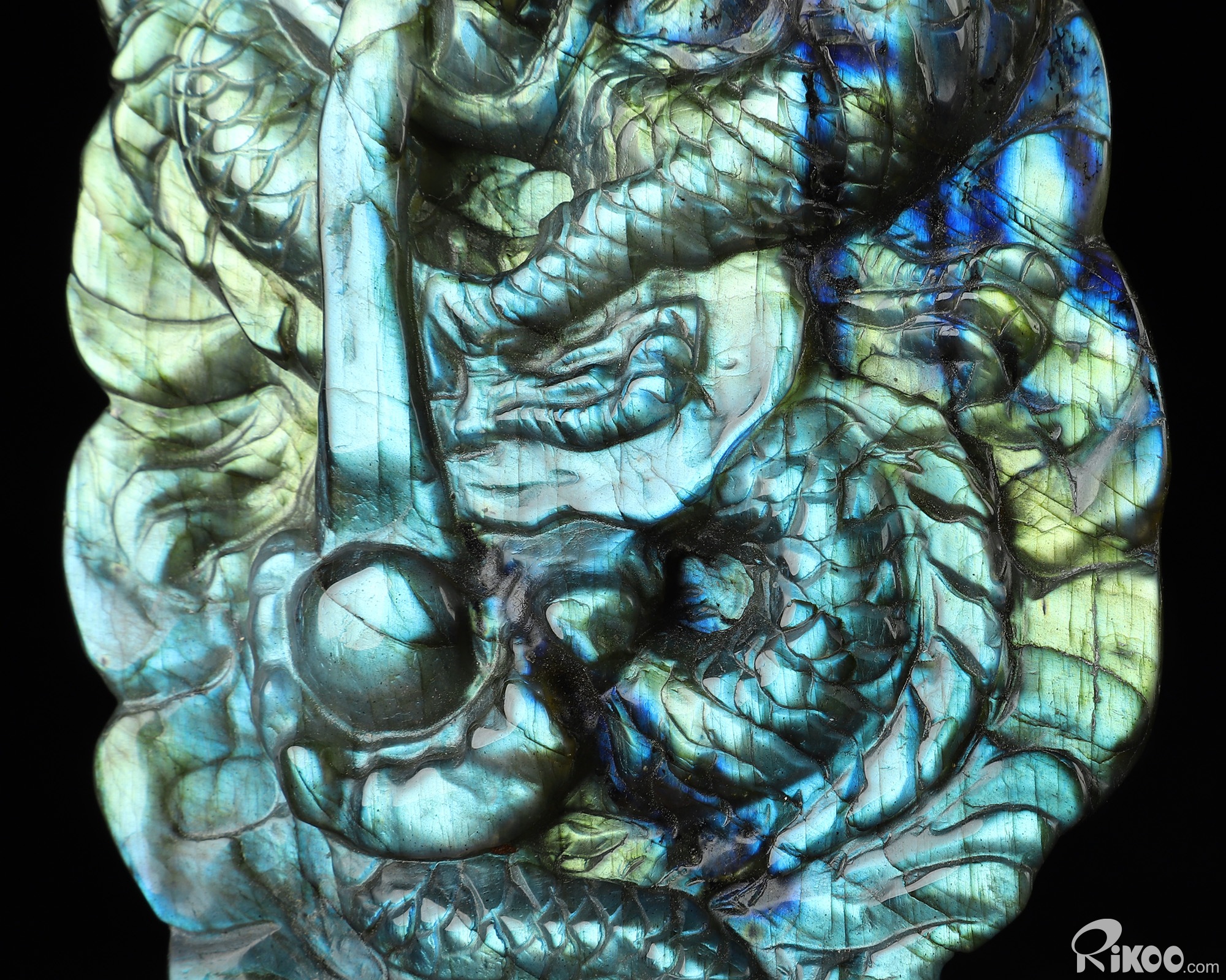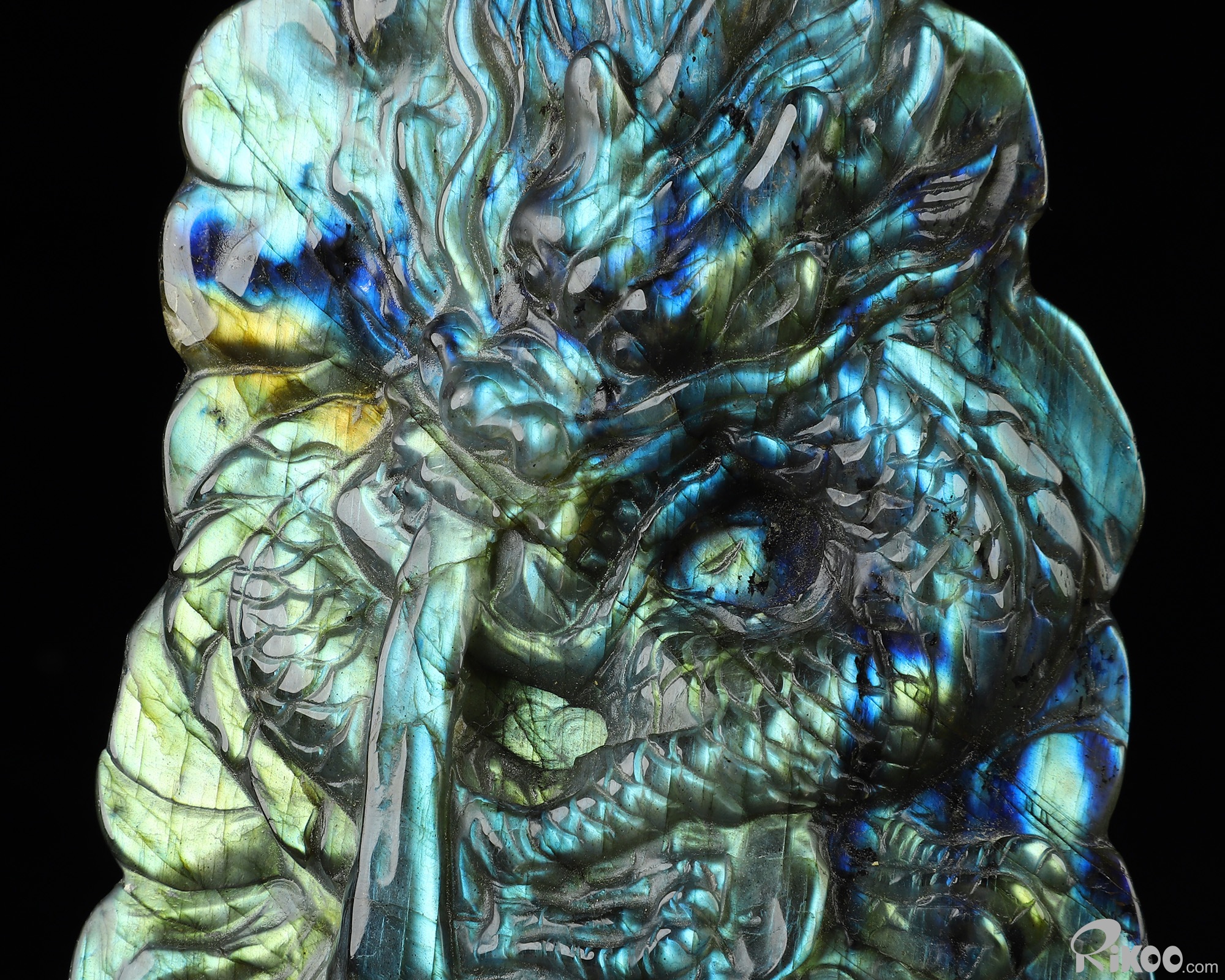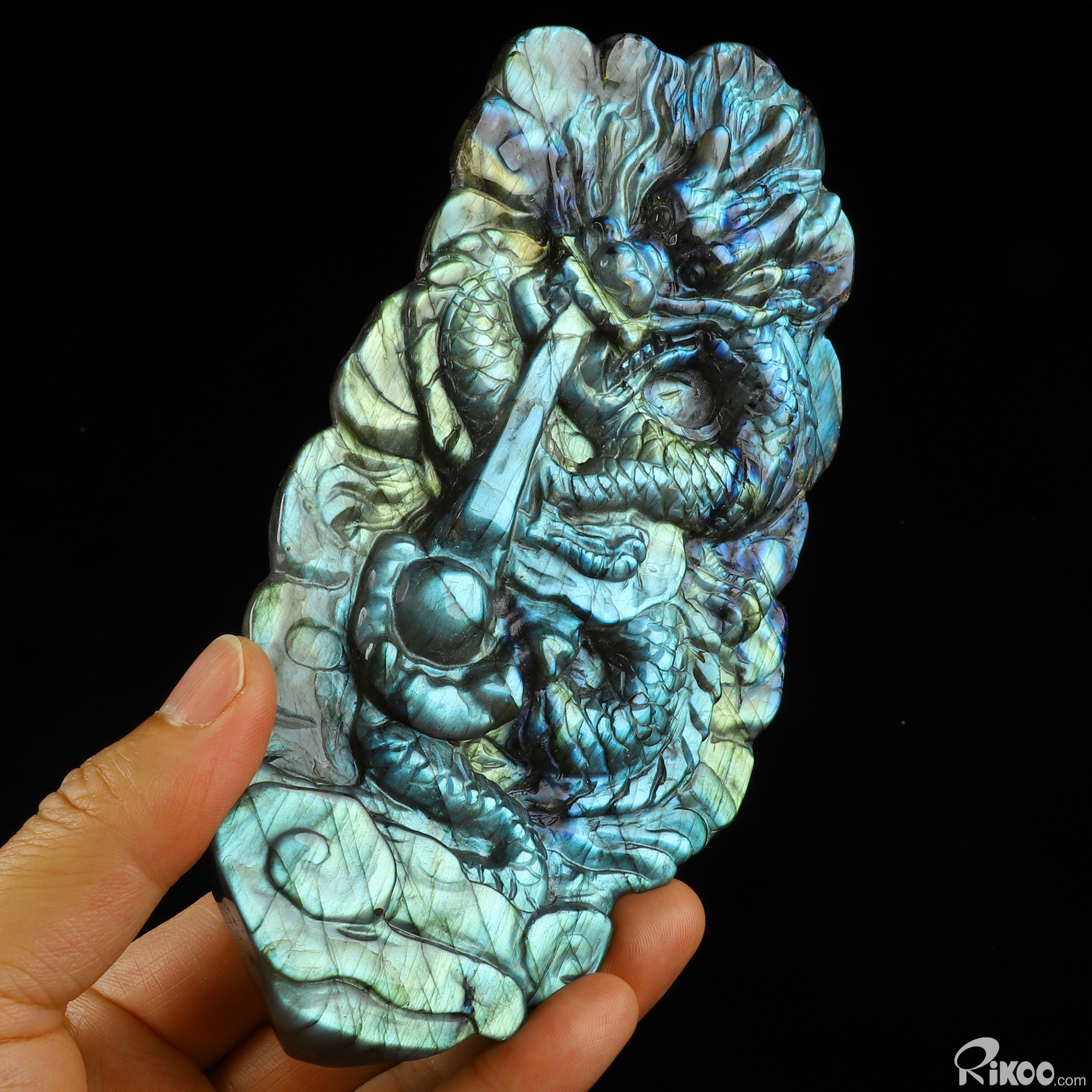 6.9" Flash Labradorite Hand Carved Crystal Dragon Sculpture, Crystal Healing