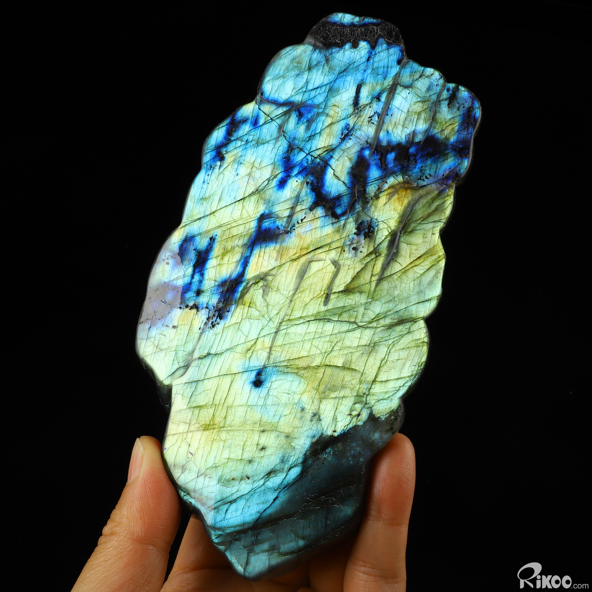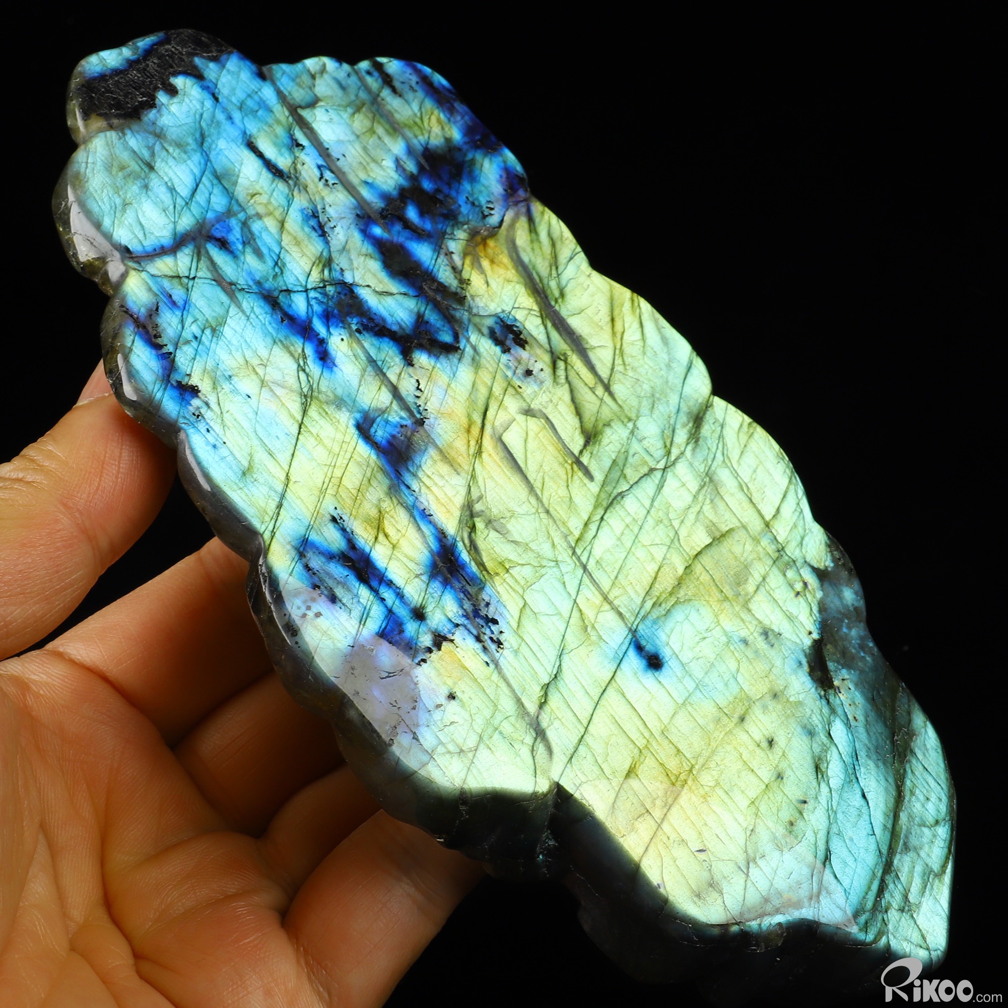 You are looking at a Labradorite sculpture. The sculpture is 6.9 inches long.