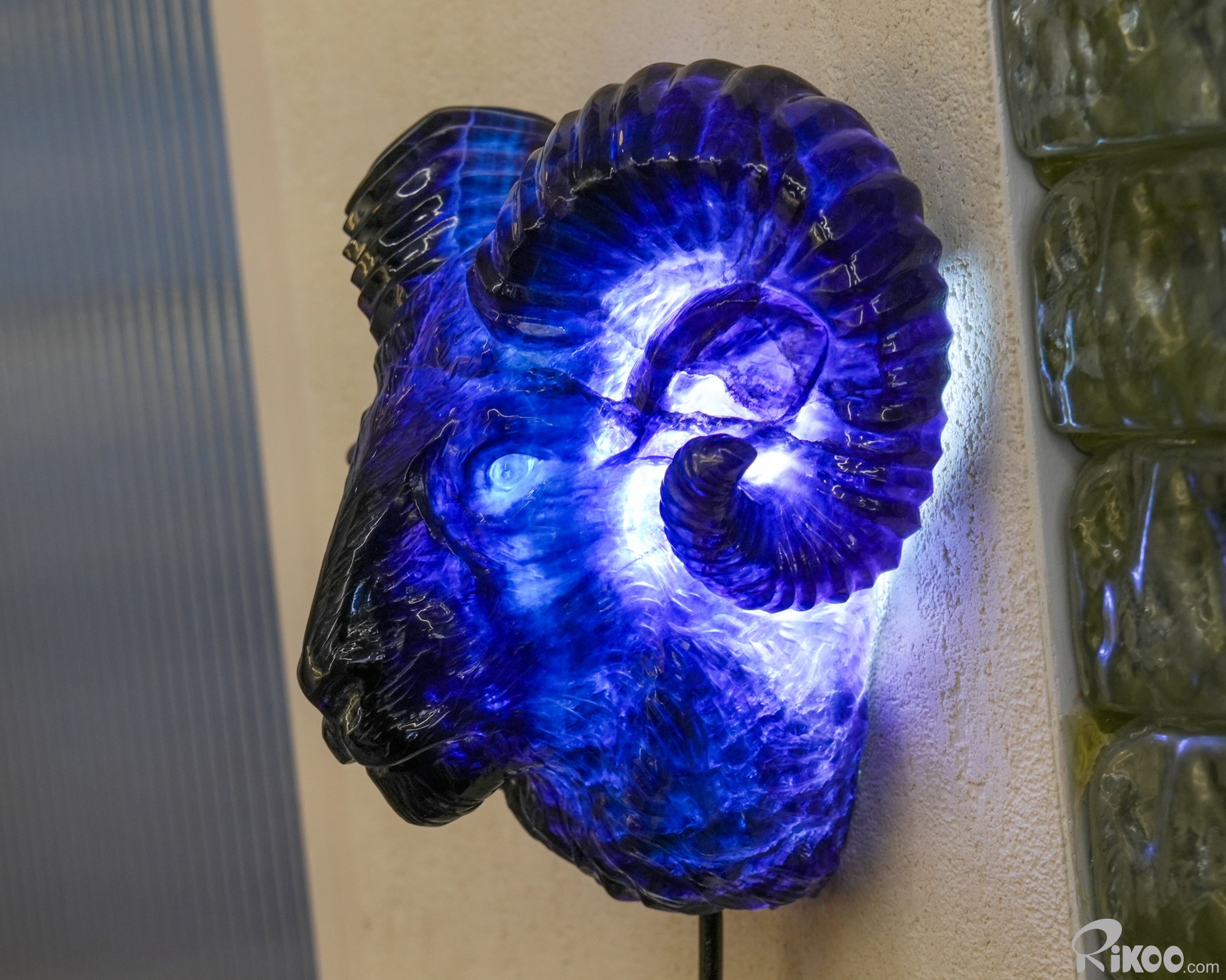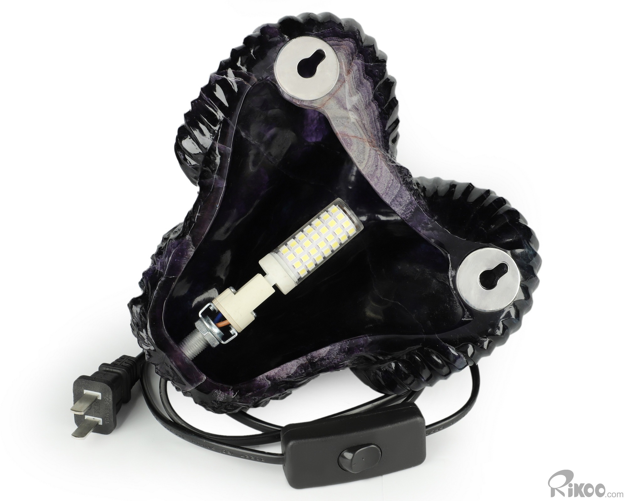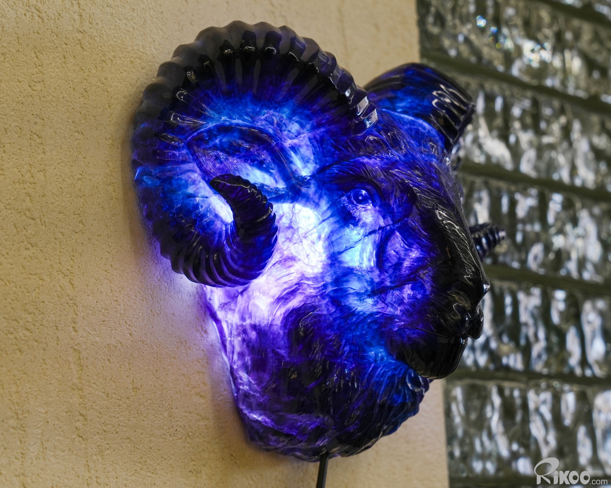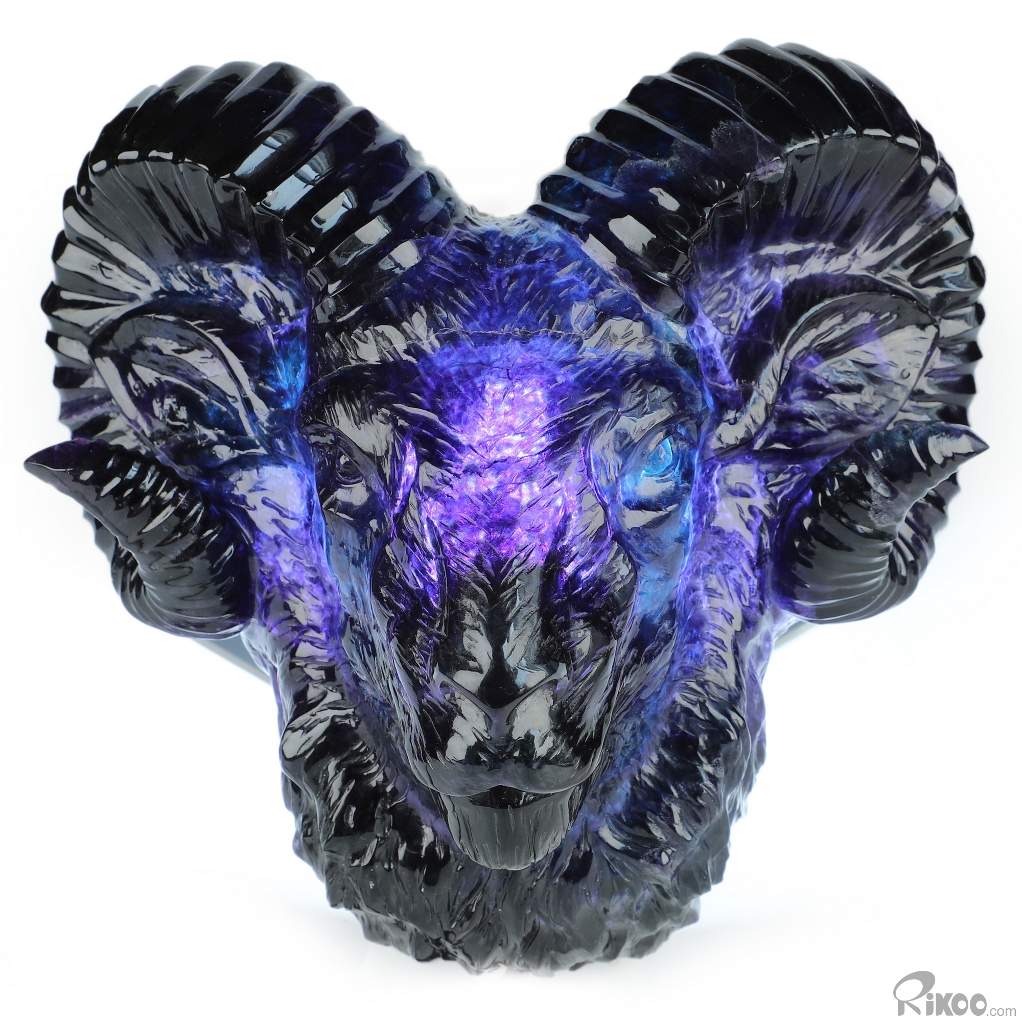 6.9" Fluorite Hand Carved Hollow Crystal Goat Head Sculpture Lamp/Light, Crystal Healing