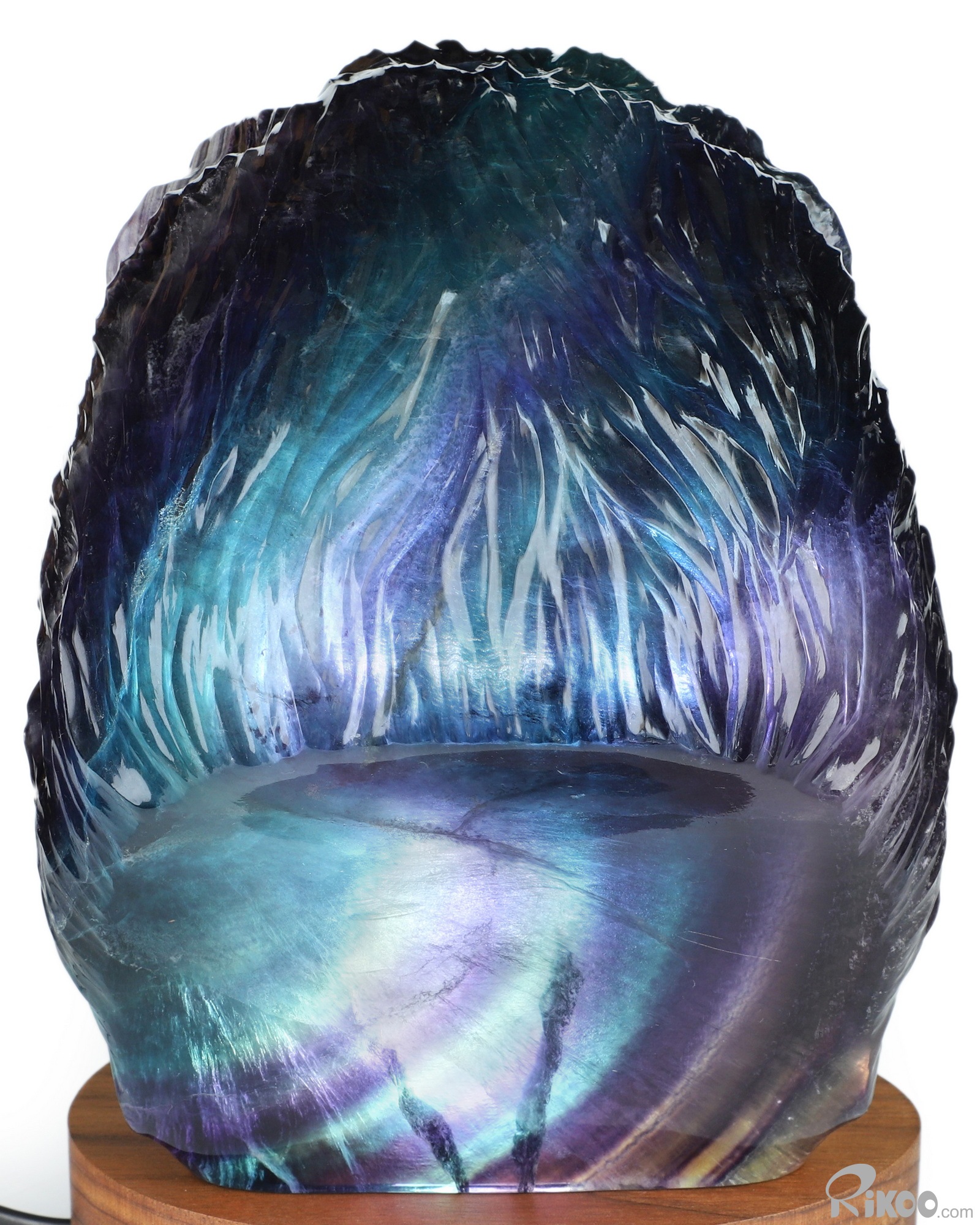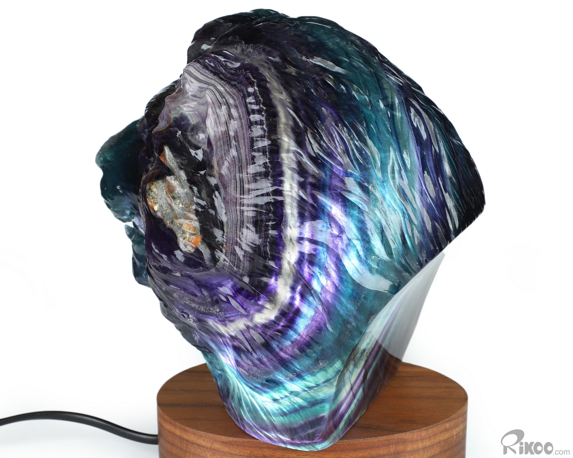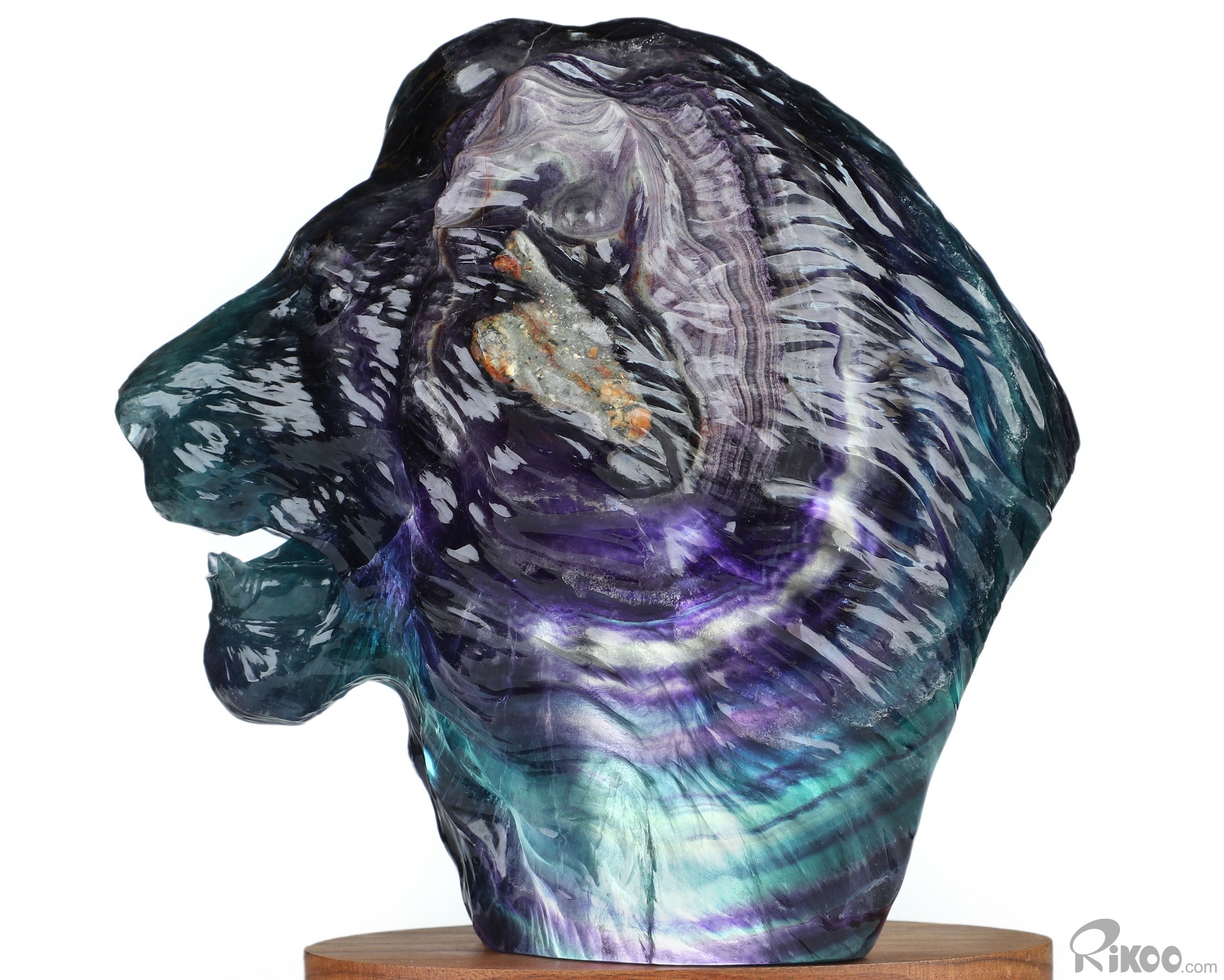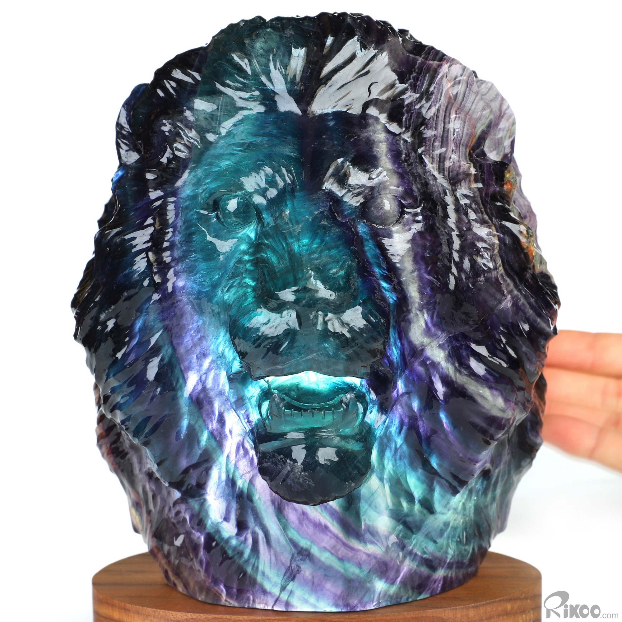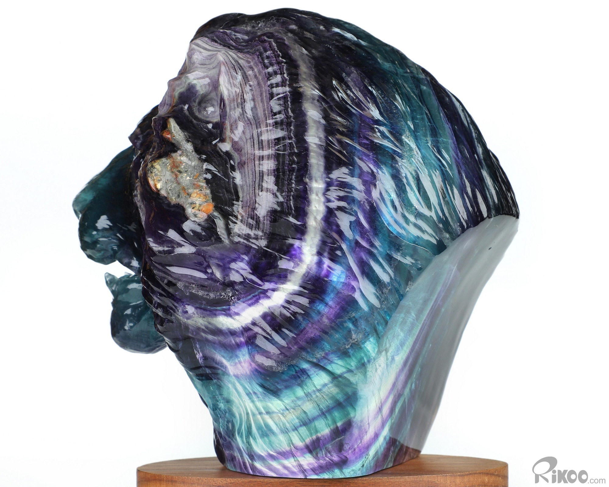 You are looking at a Fluorite sculpture. The sculpture is 6.9 inches long.