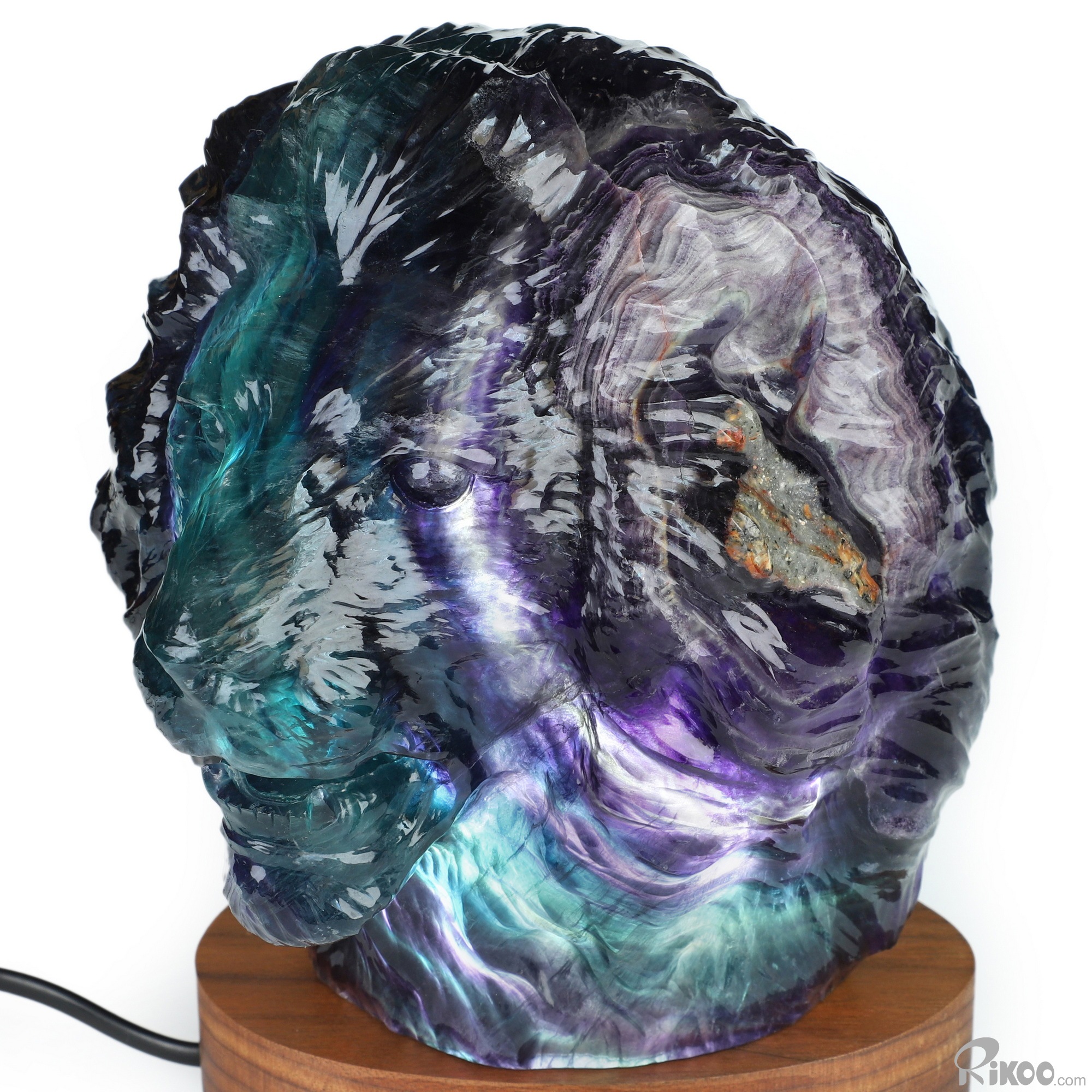 6.9" Fluorite Hand Carved Hollow Crystal Lion Lamp/Light, Crystal Healing