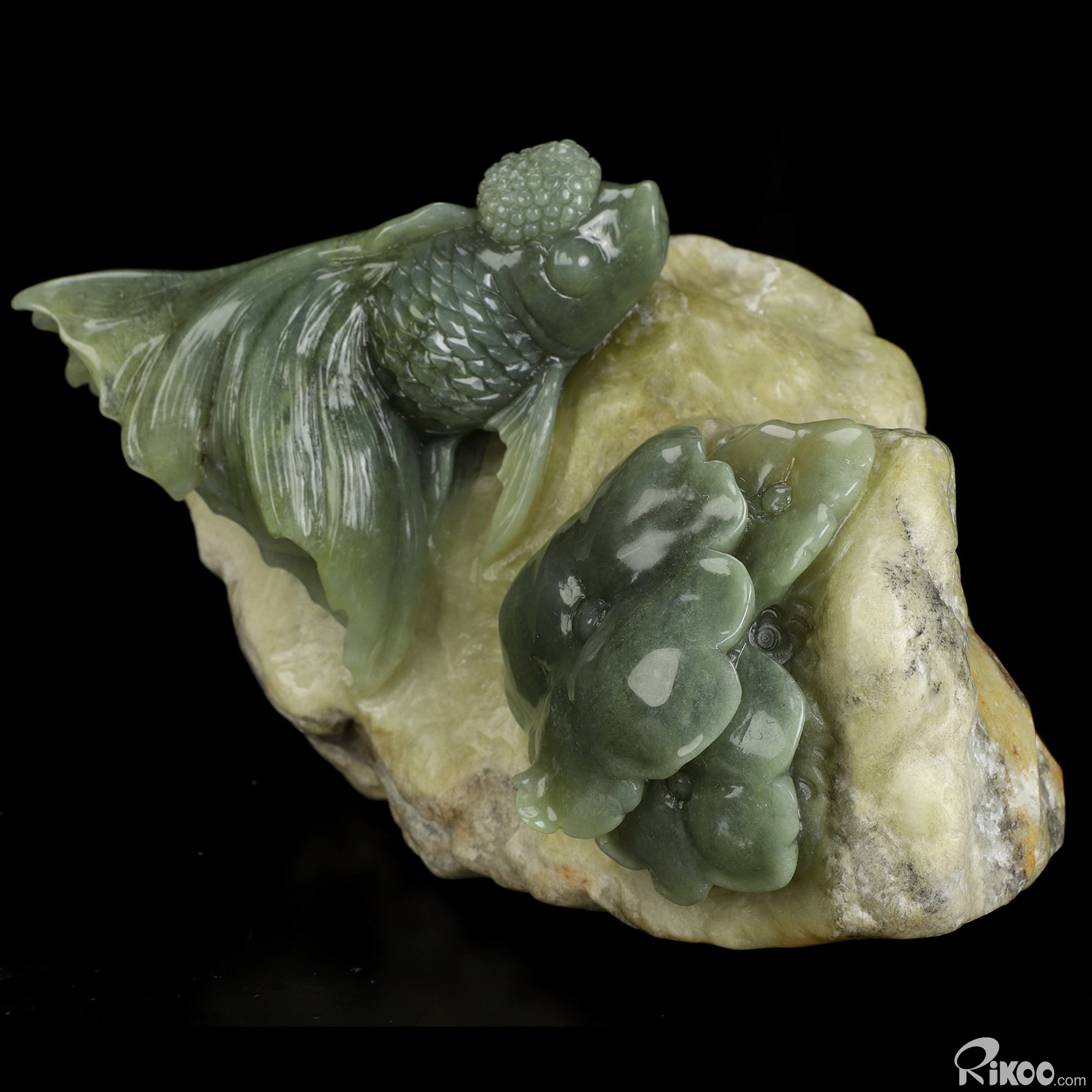 You are looking at an Indian Agate Goldfish sculpture. The sculpture is 6.9 inches long.