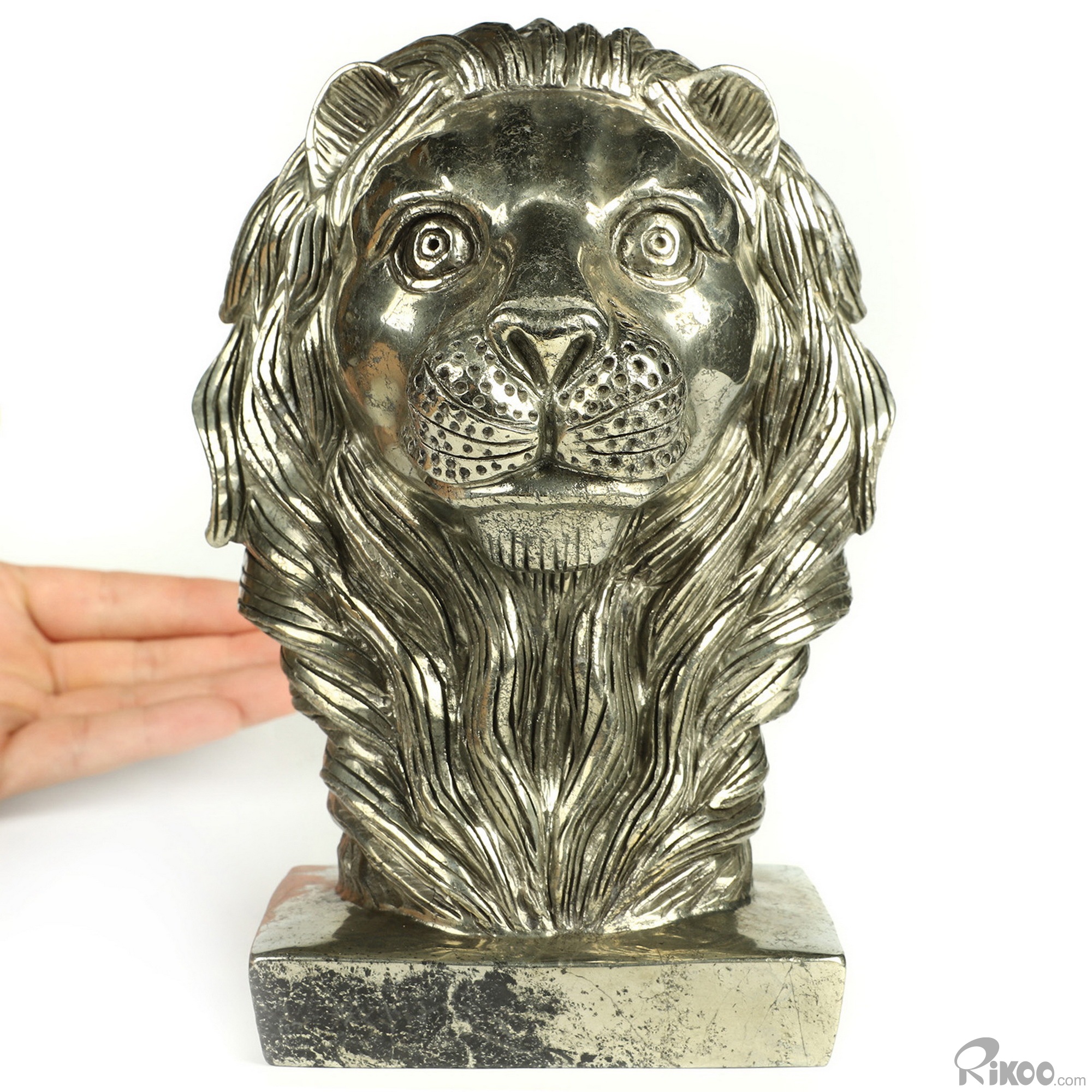 6.9" Pyrite Hand Carved Crystal Lion Sculpture, Crystal Healing