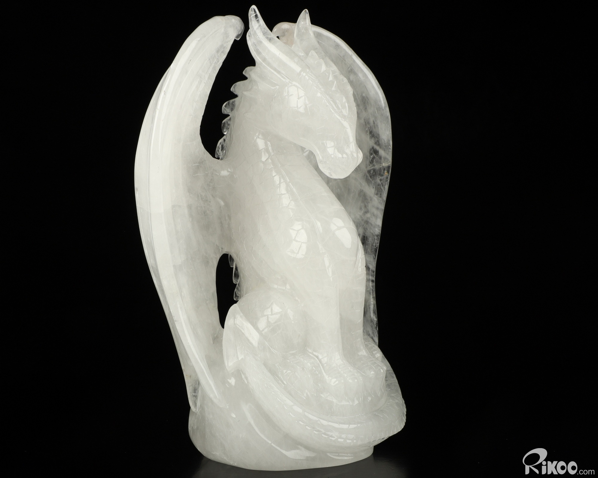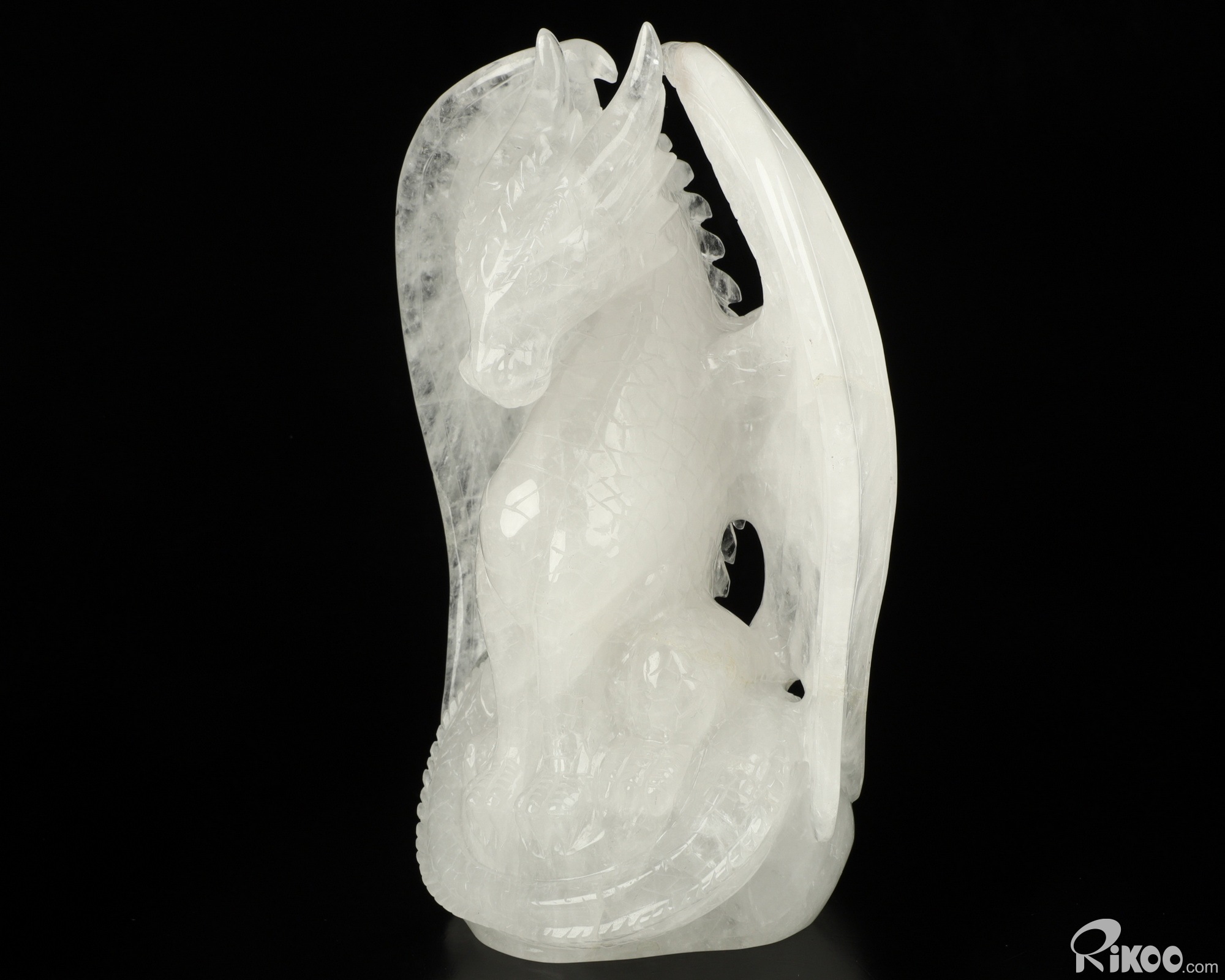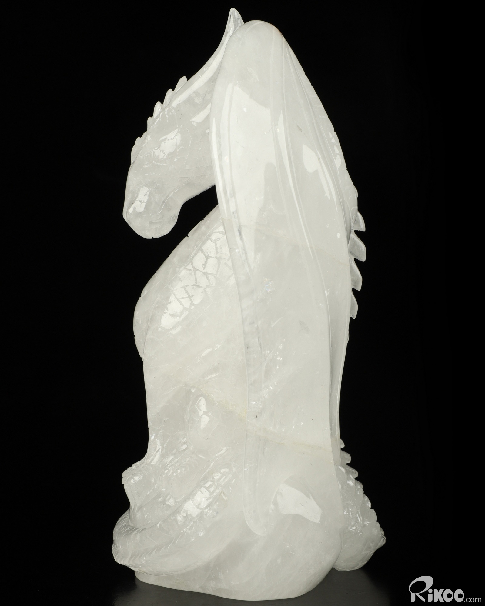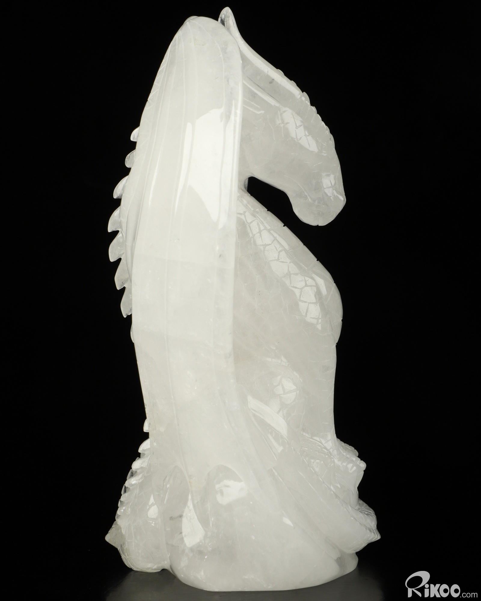 6.9" Quartz Rock Crystal Carved Crystal Dragon Sculpture, Realistic, Crystal Healing
