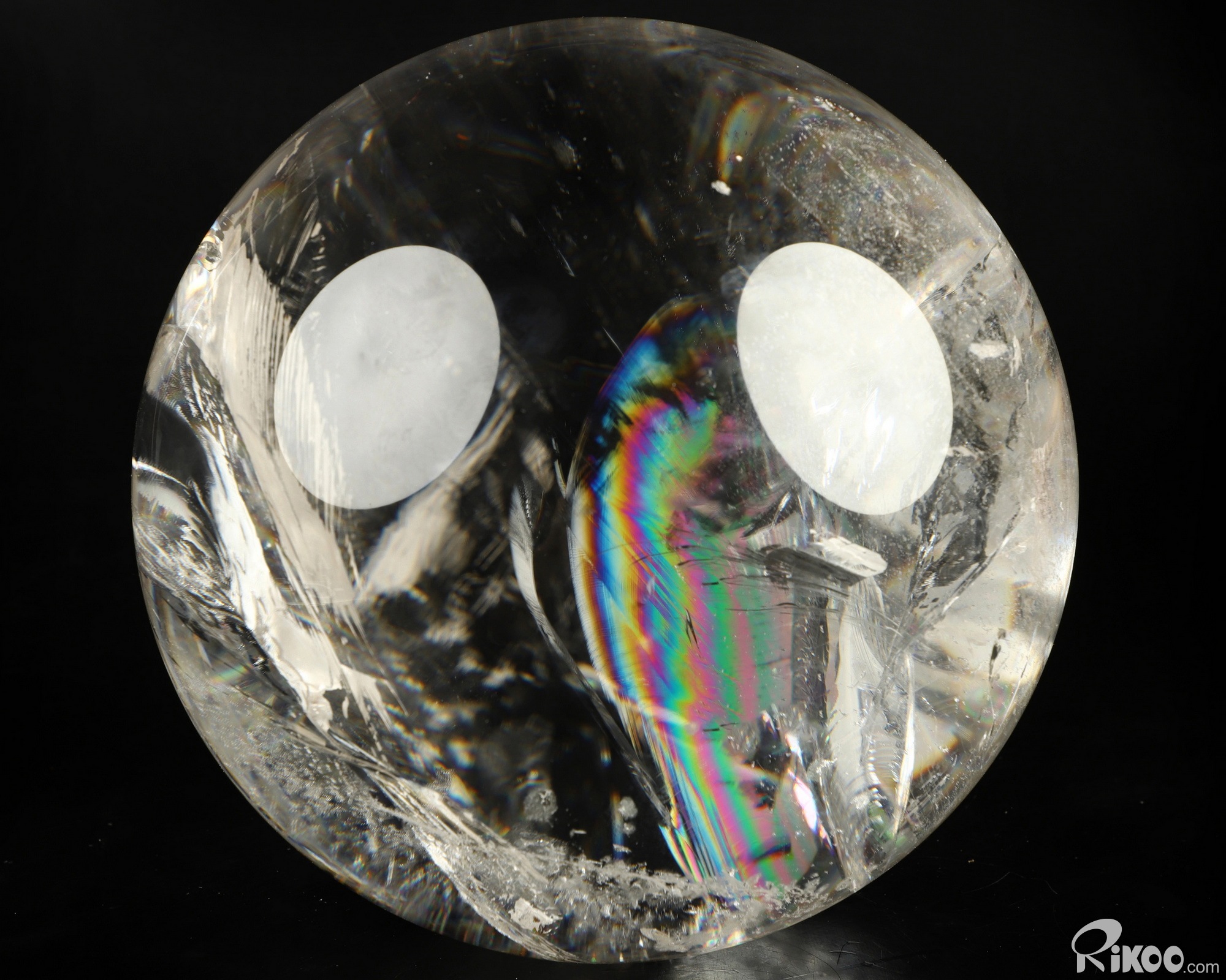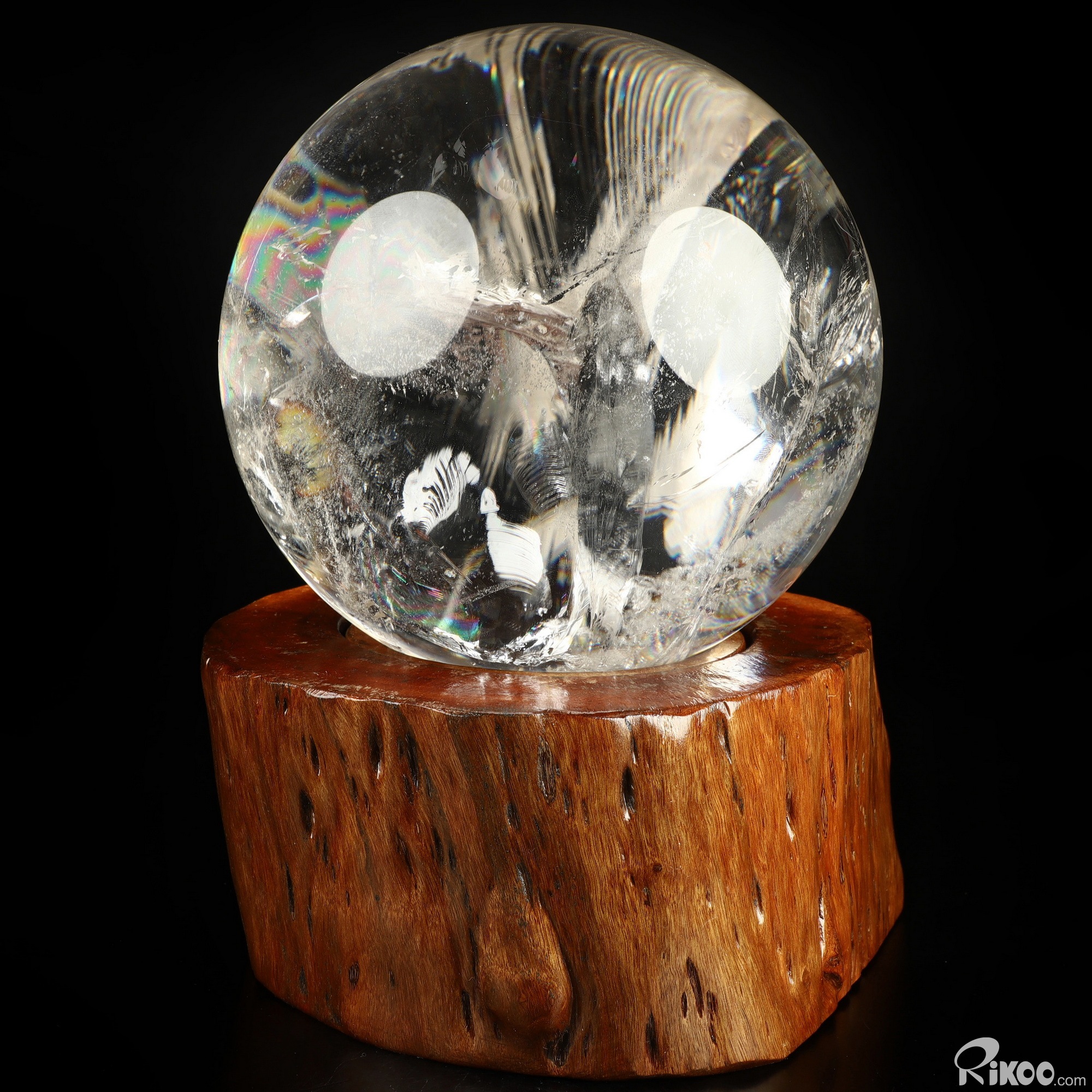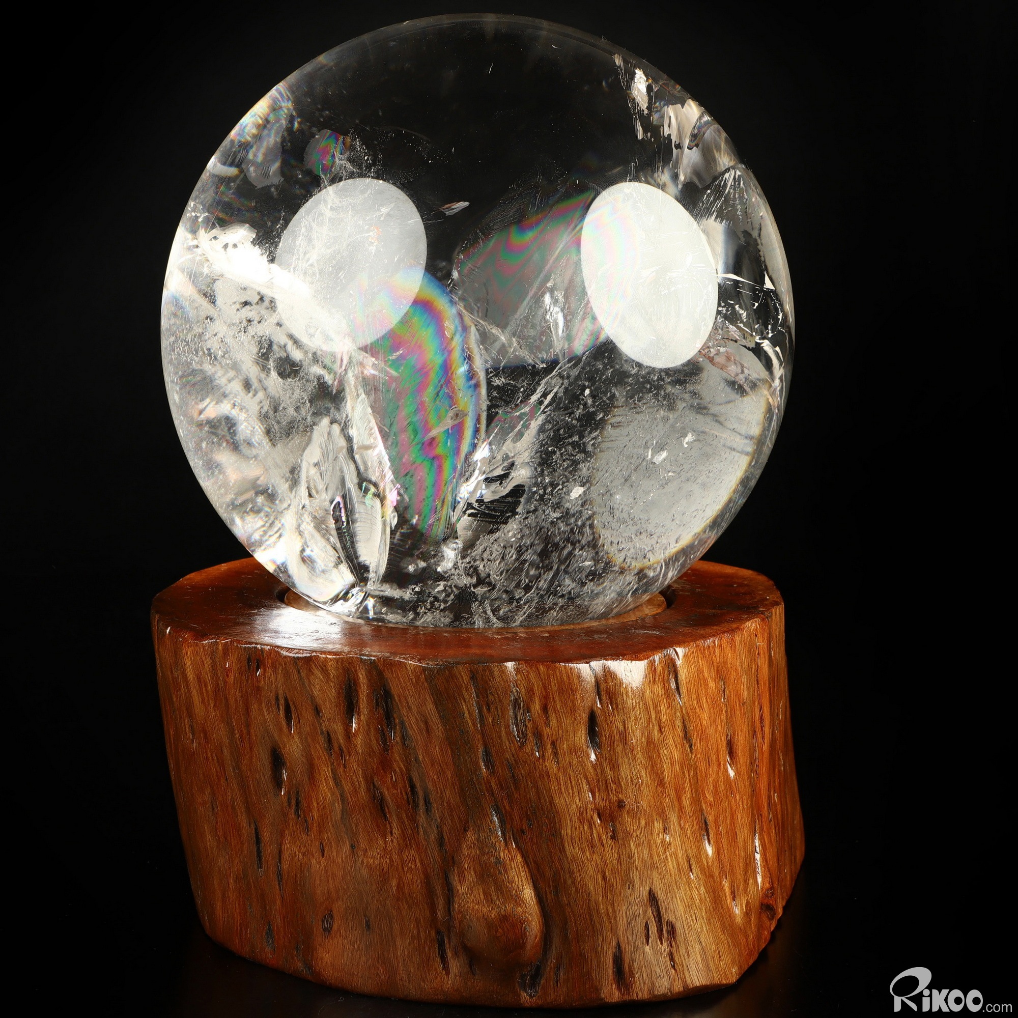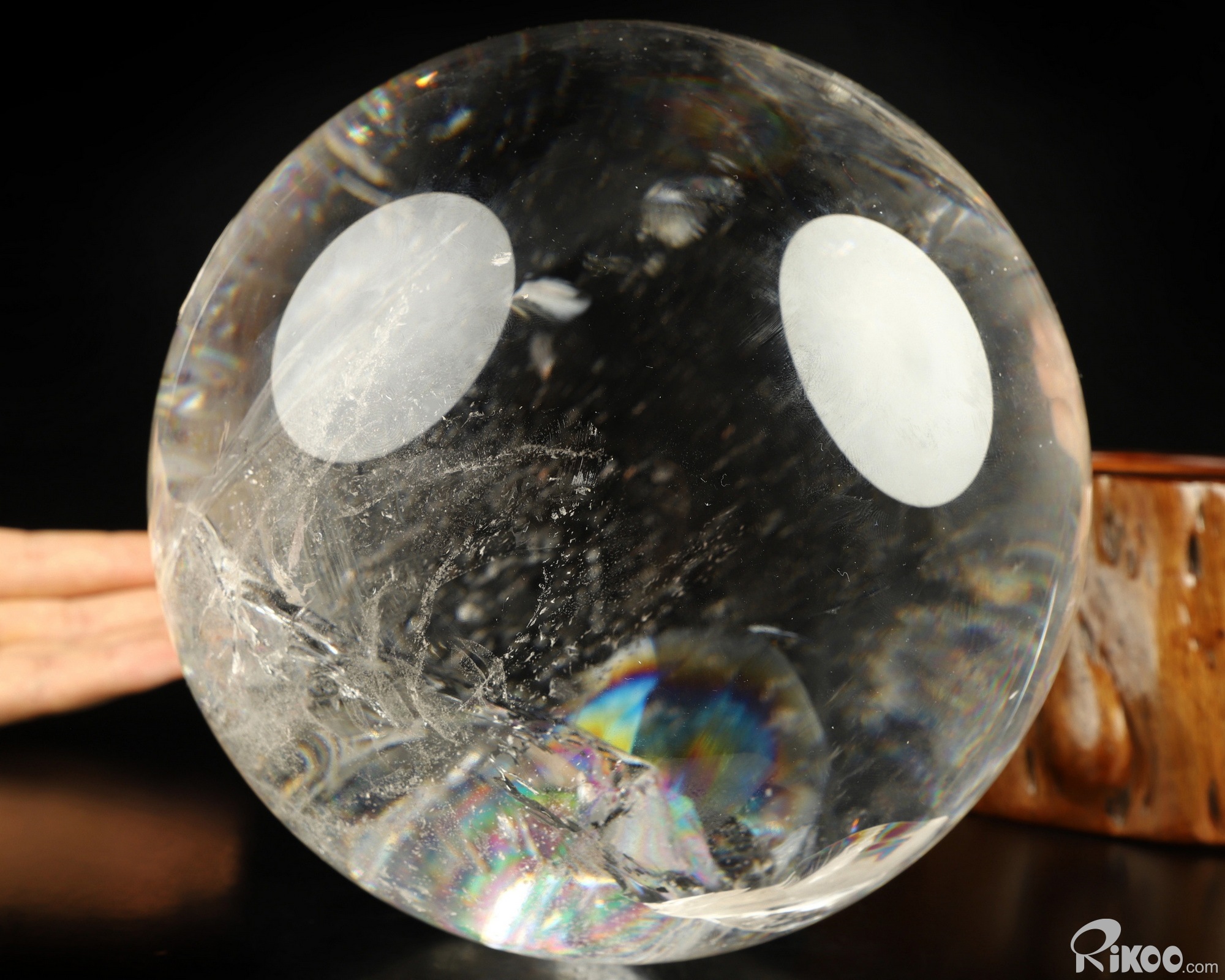 You are looking at a Quartz Rock Crystal ball. The ball is 6.9 inches long from front to back.