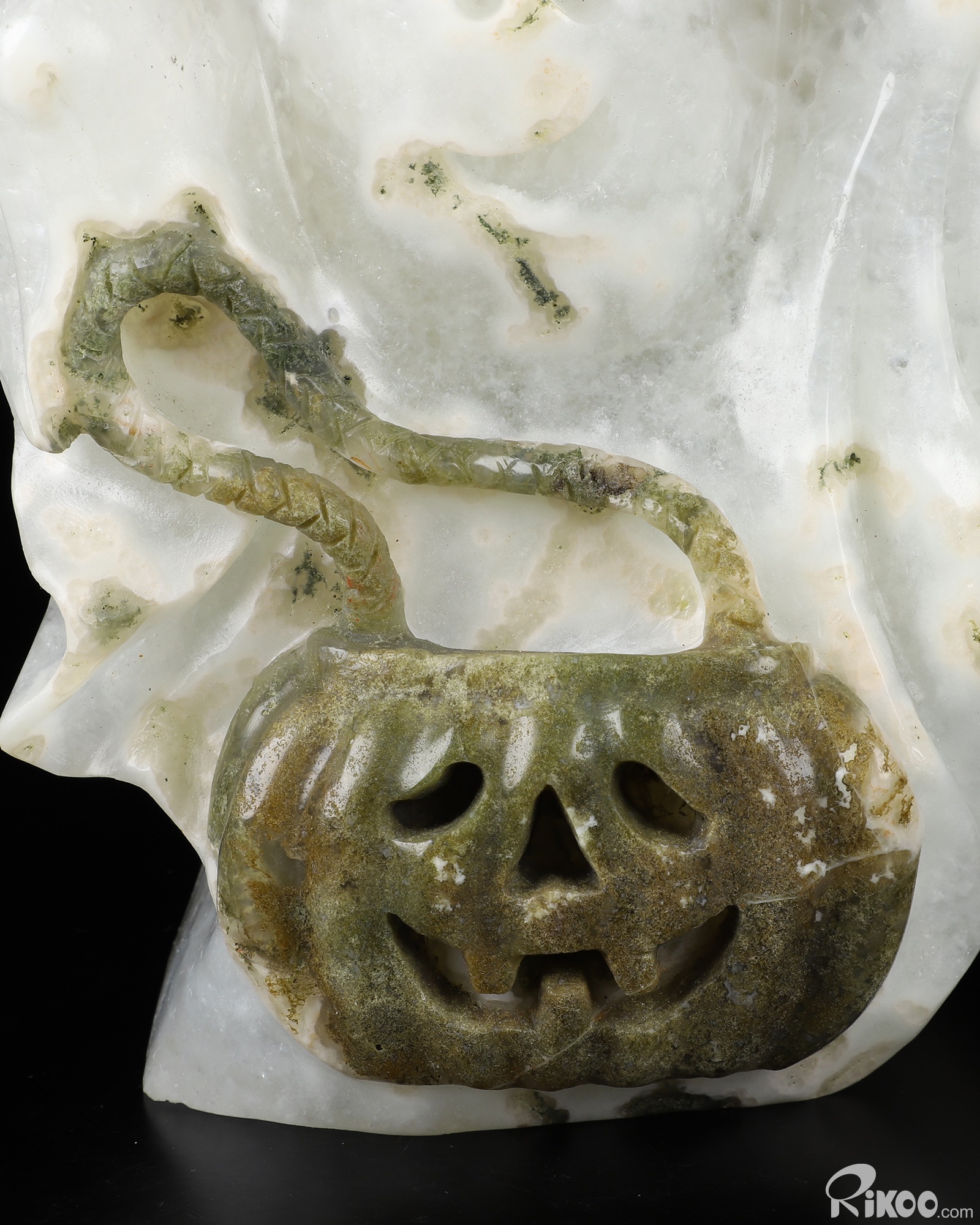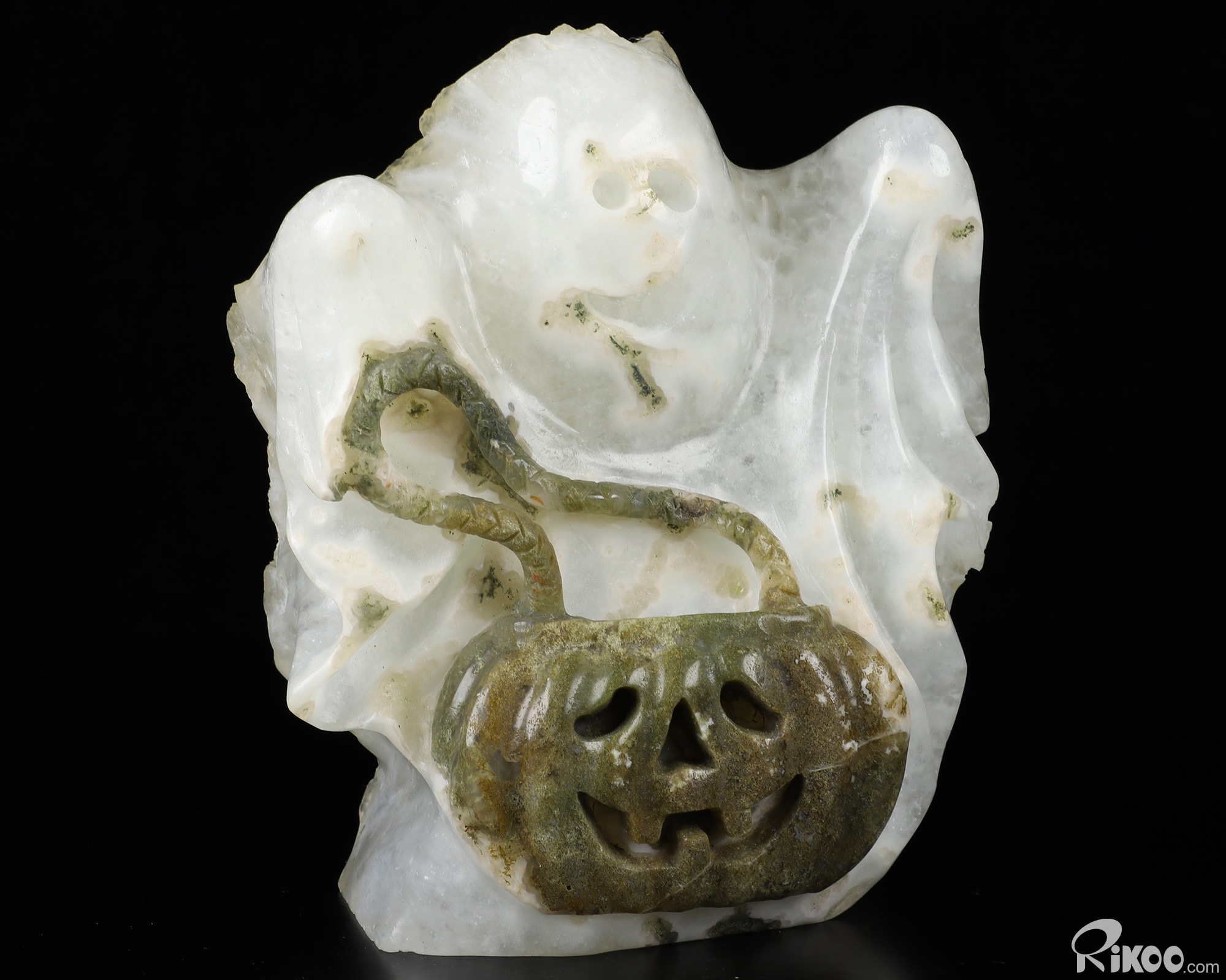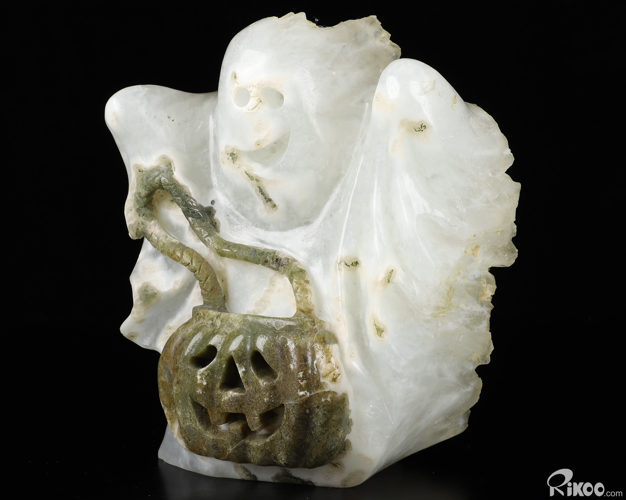 6.9" Quartz Rock Druse Carved Crystal Ghost Sculpture