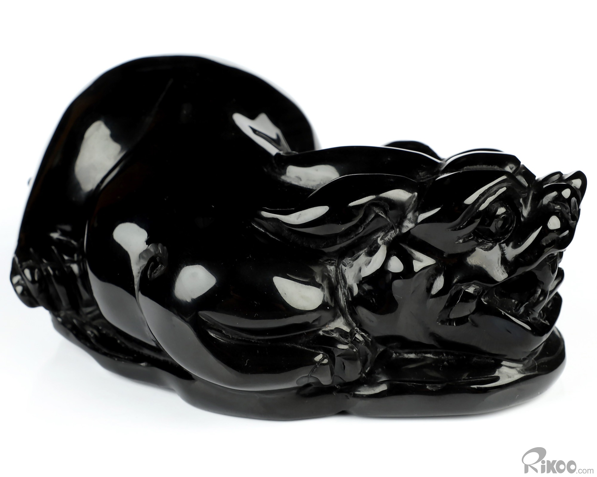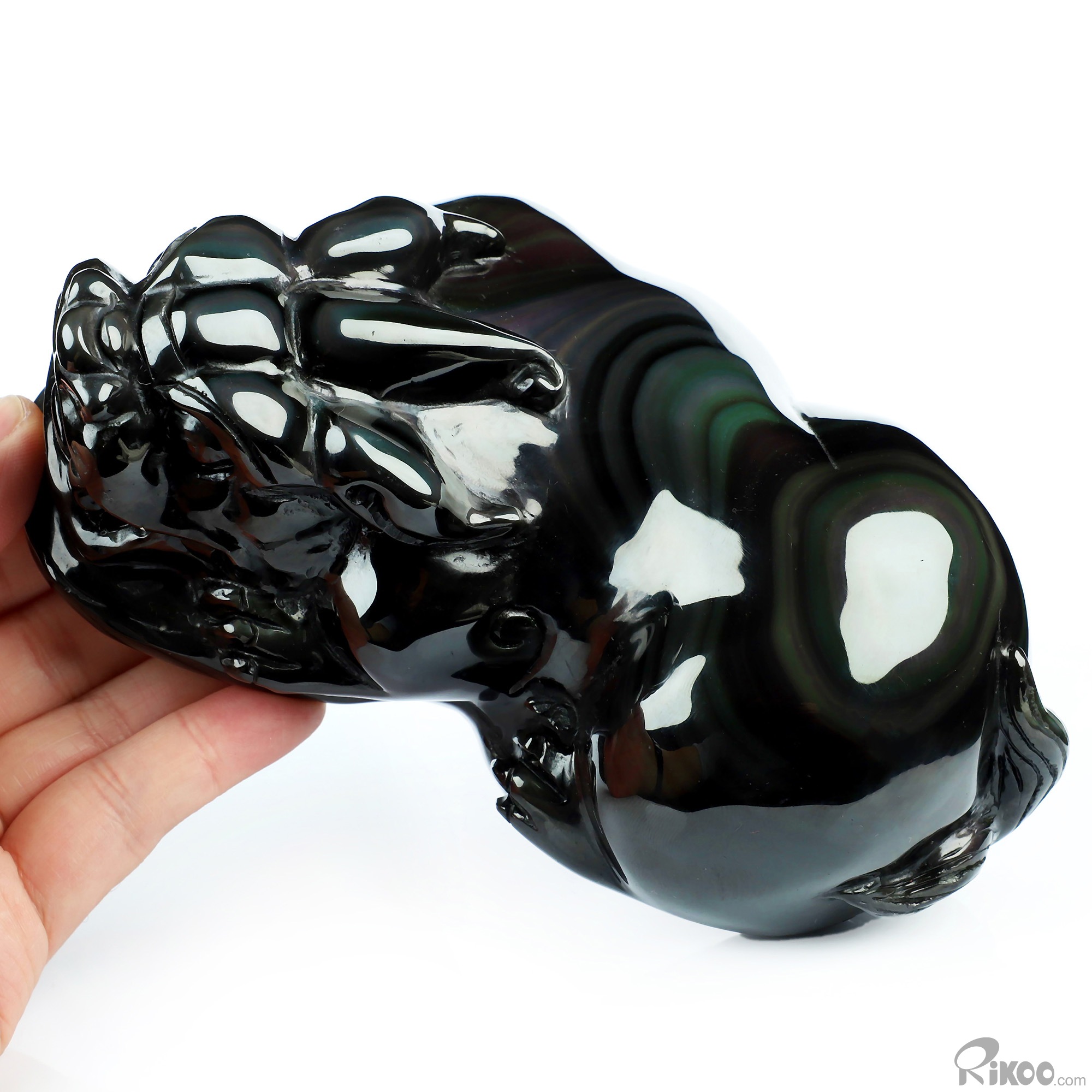 You are looking at a Rainbow Obsidian sculpture. The sculpture is 6.9 inches long.