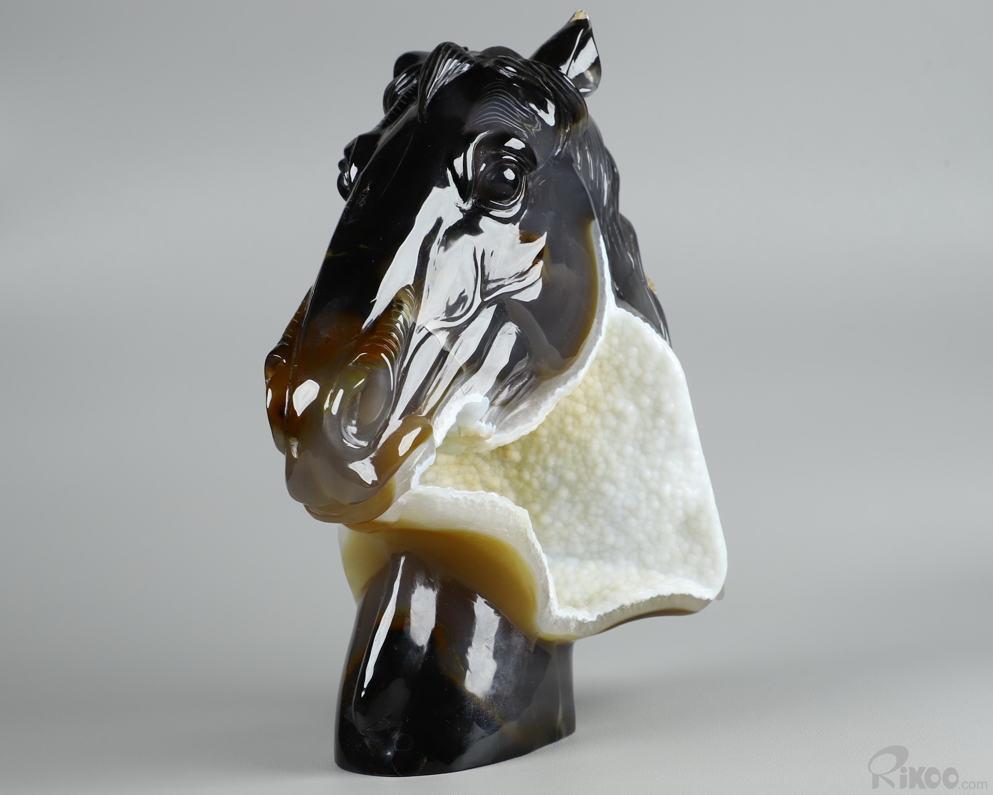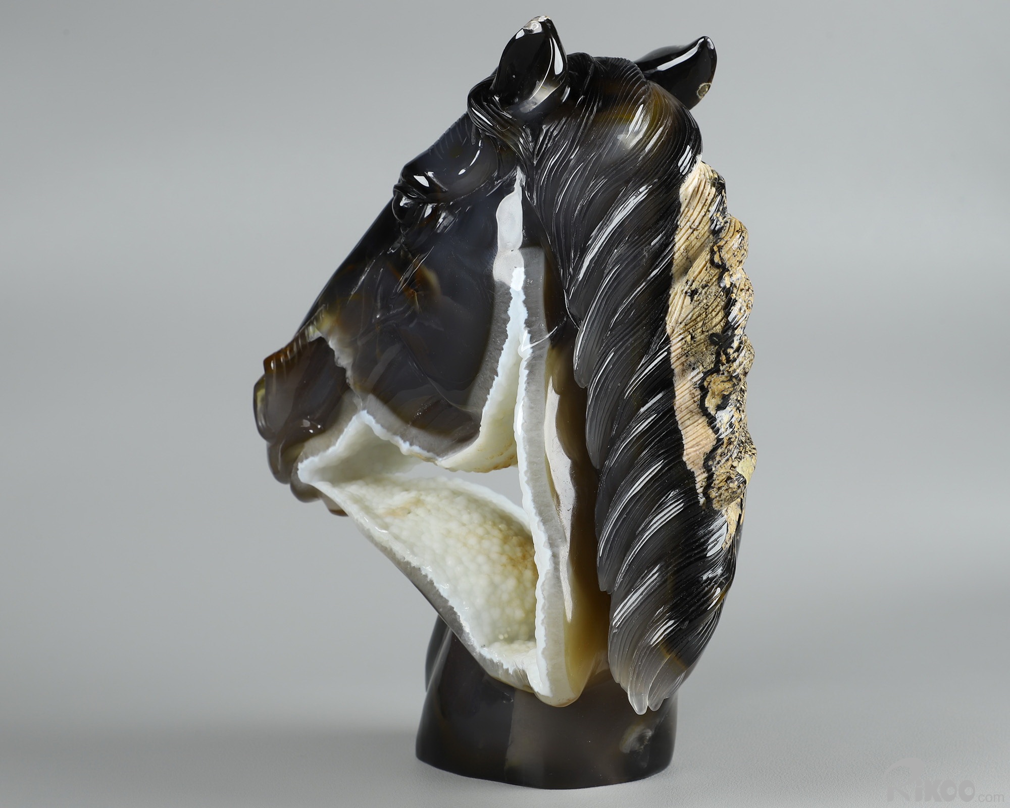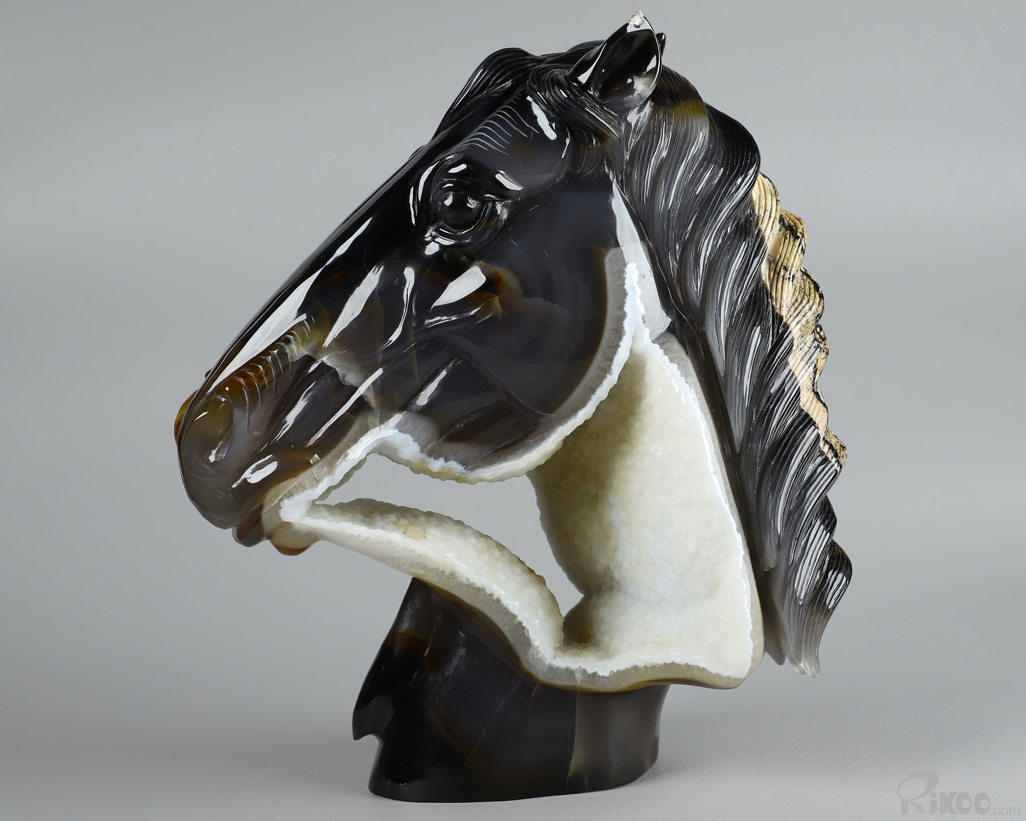 7.0" Agate Geode Carved Crystal Horse Sculpture, Realistic, Crystal Healing