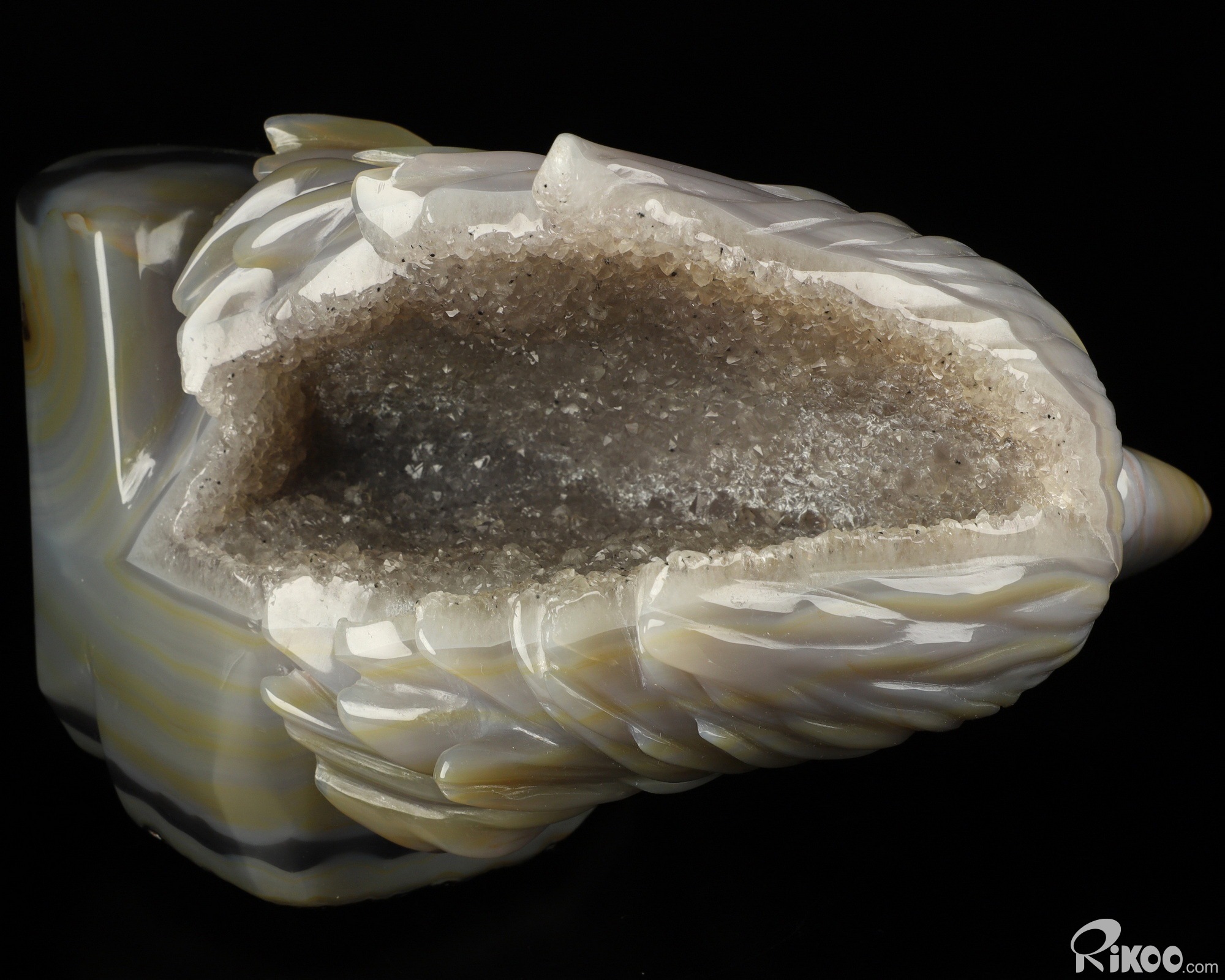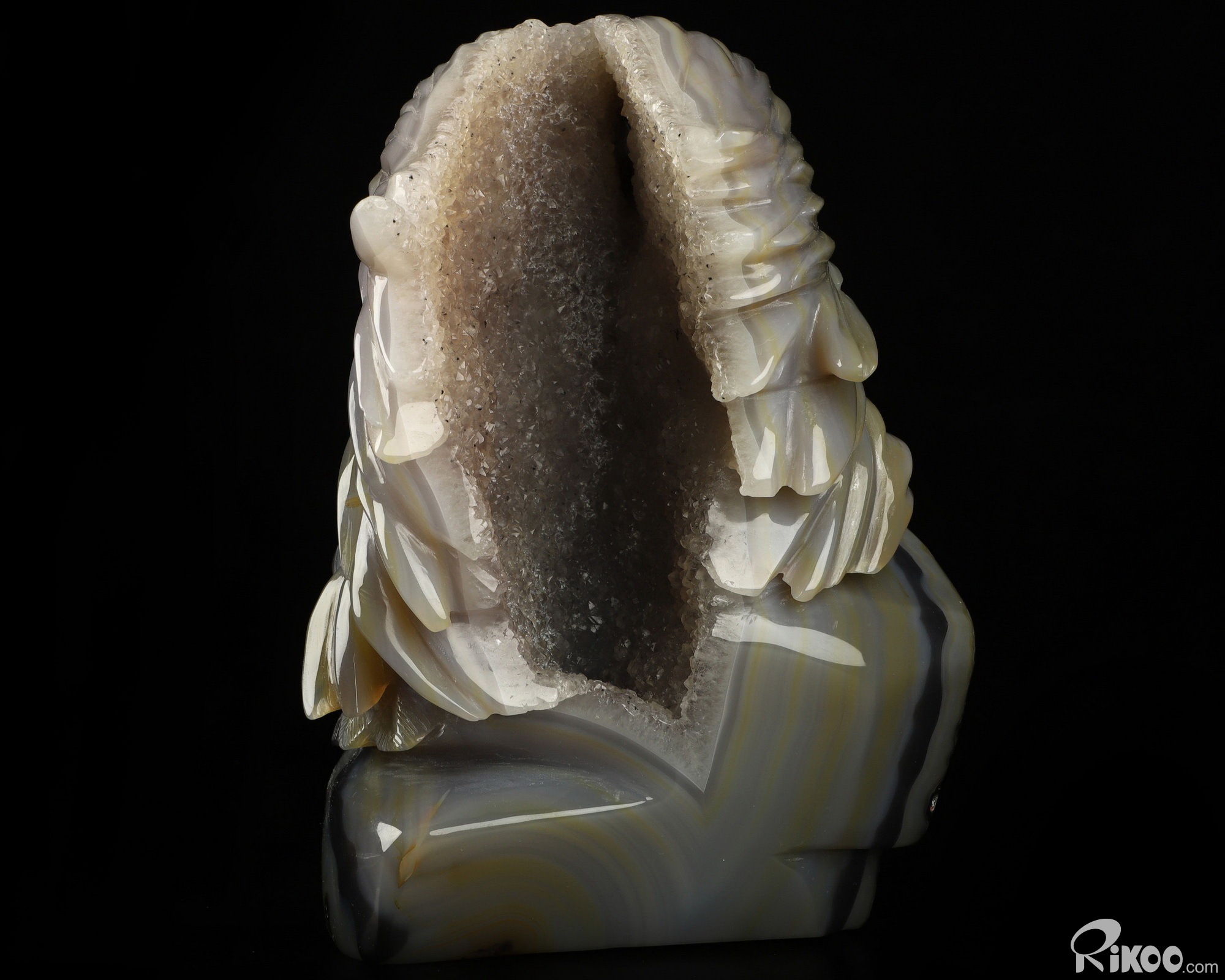 Composed of microscopic crystals of Quartz laid down in colorful bands or ribbons. The appearance of the stone is waxy and soft. Almost always translucent and occasionally transparent. Agates are grounding stones. Agates are one of the oldest good luck stones. They help obtain a better physical/emotional balance. They work to raise consciousness. Builds self-confidence. Agate enables the person wearing it to choose their friends carefully. Used to avert from lighting and stormy weather (physically and metaphysically), agate brings prosperity. It is a protector of children. This stone helps us to have patience, and allows for inner peace. Use agate as a gazing tool for divination and meditation. Agate balances emotions and brings insight to any situation.