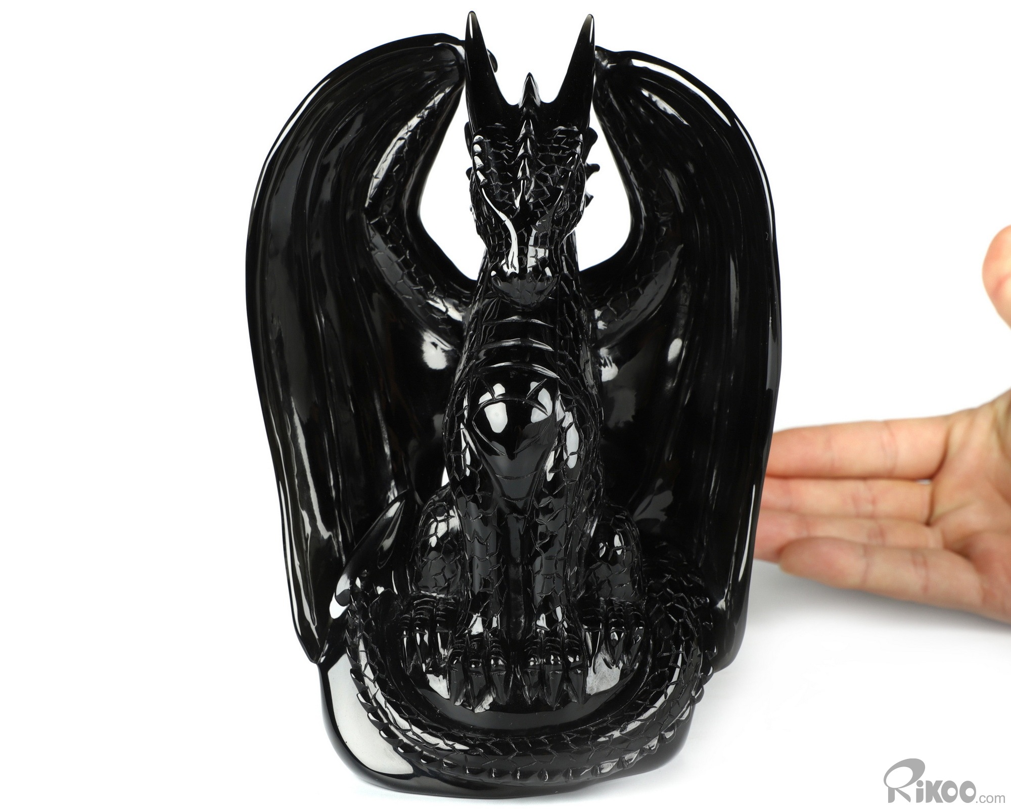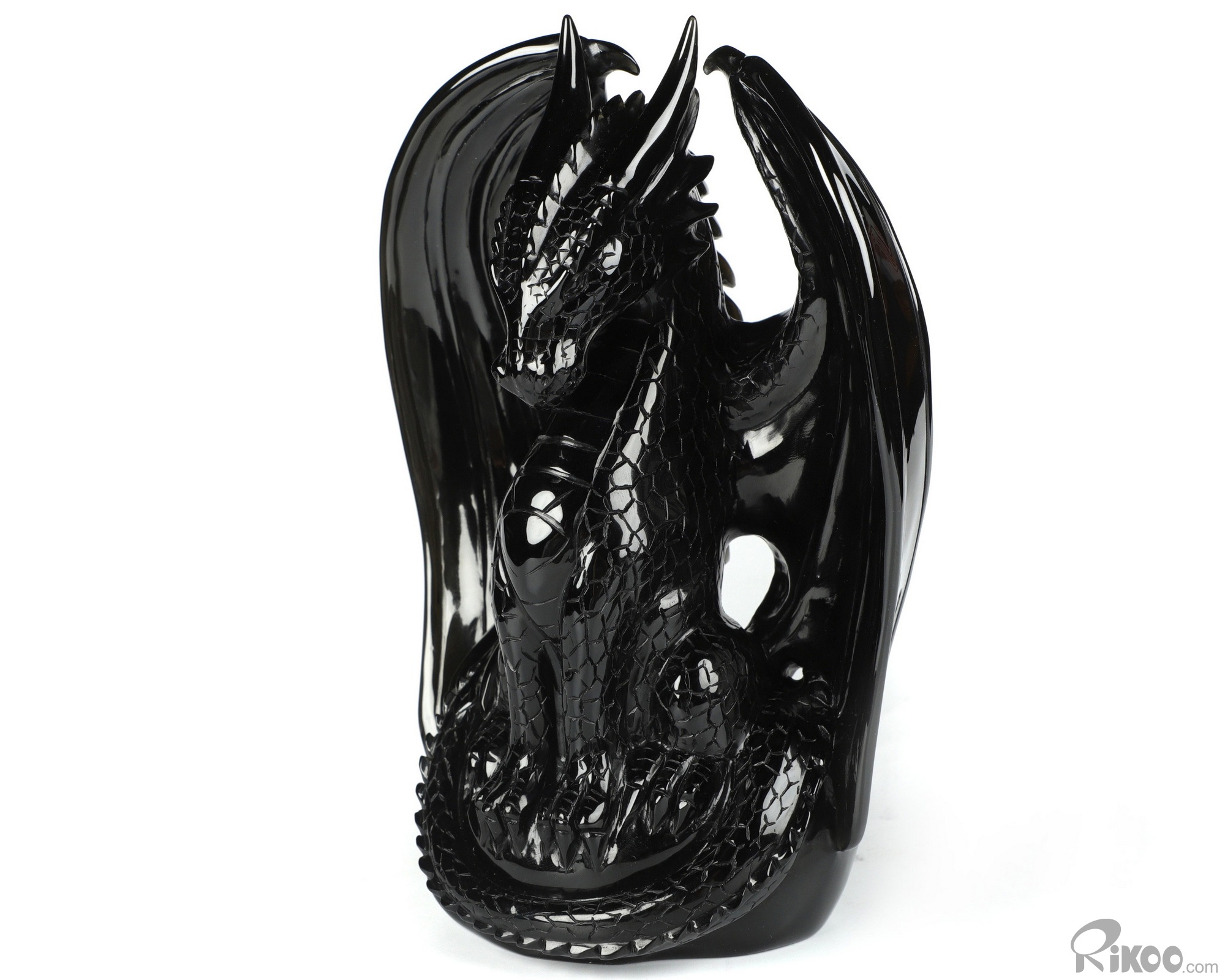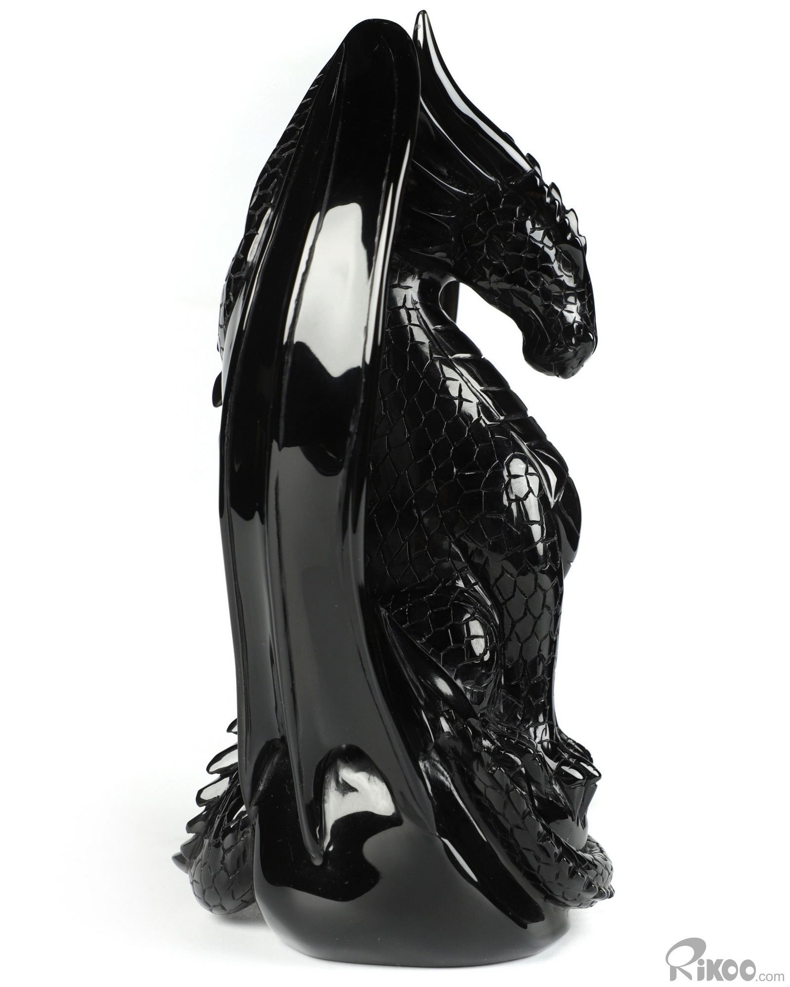 7.0" Black Obsidian Carved Crystal Dragon Sculpture, Realistic, Crystal Healing