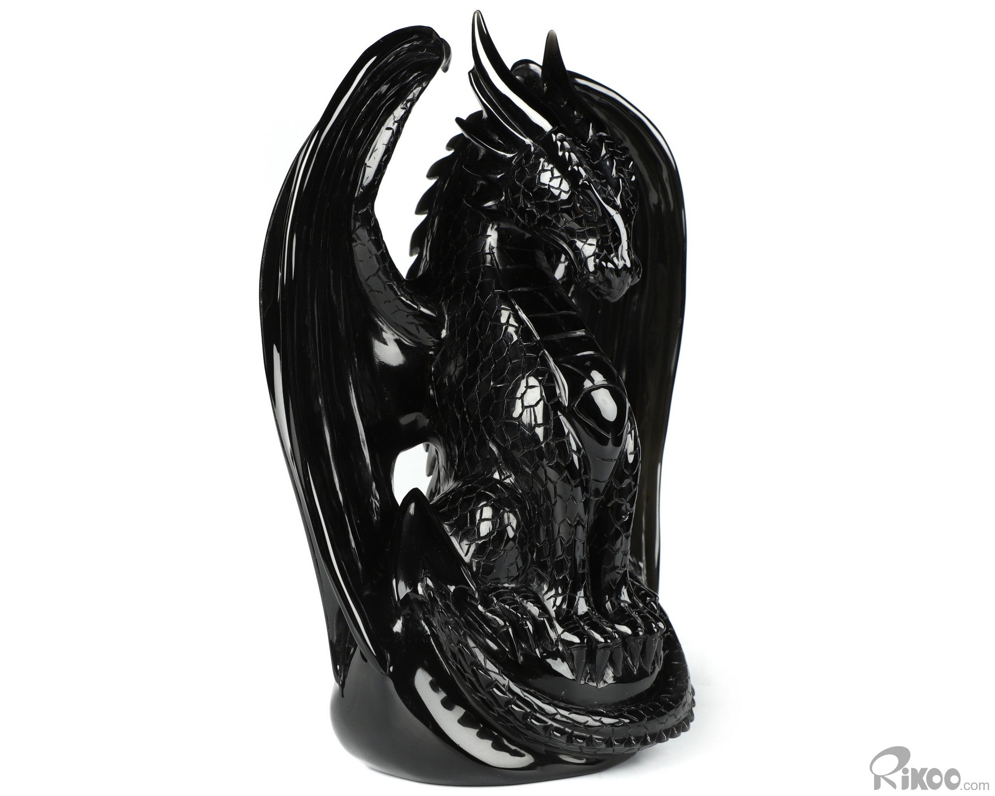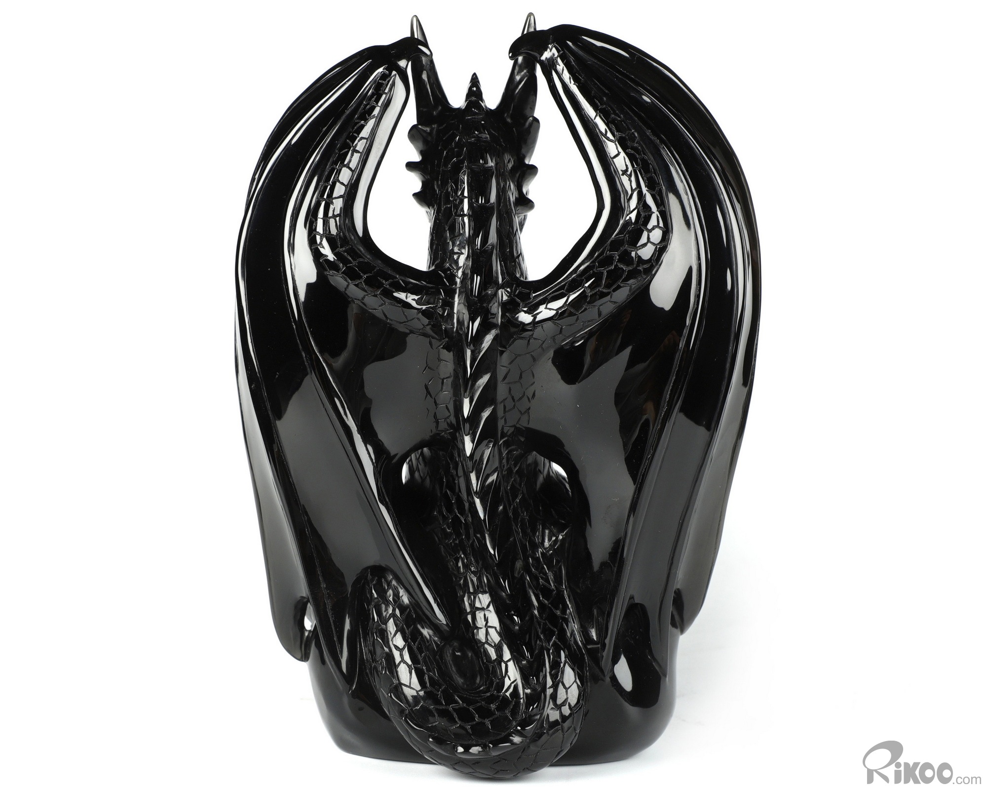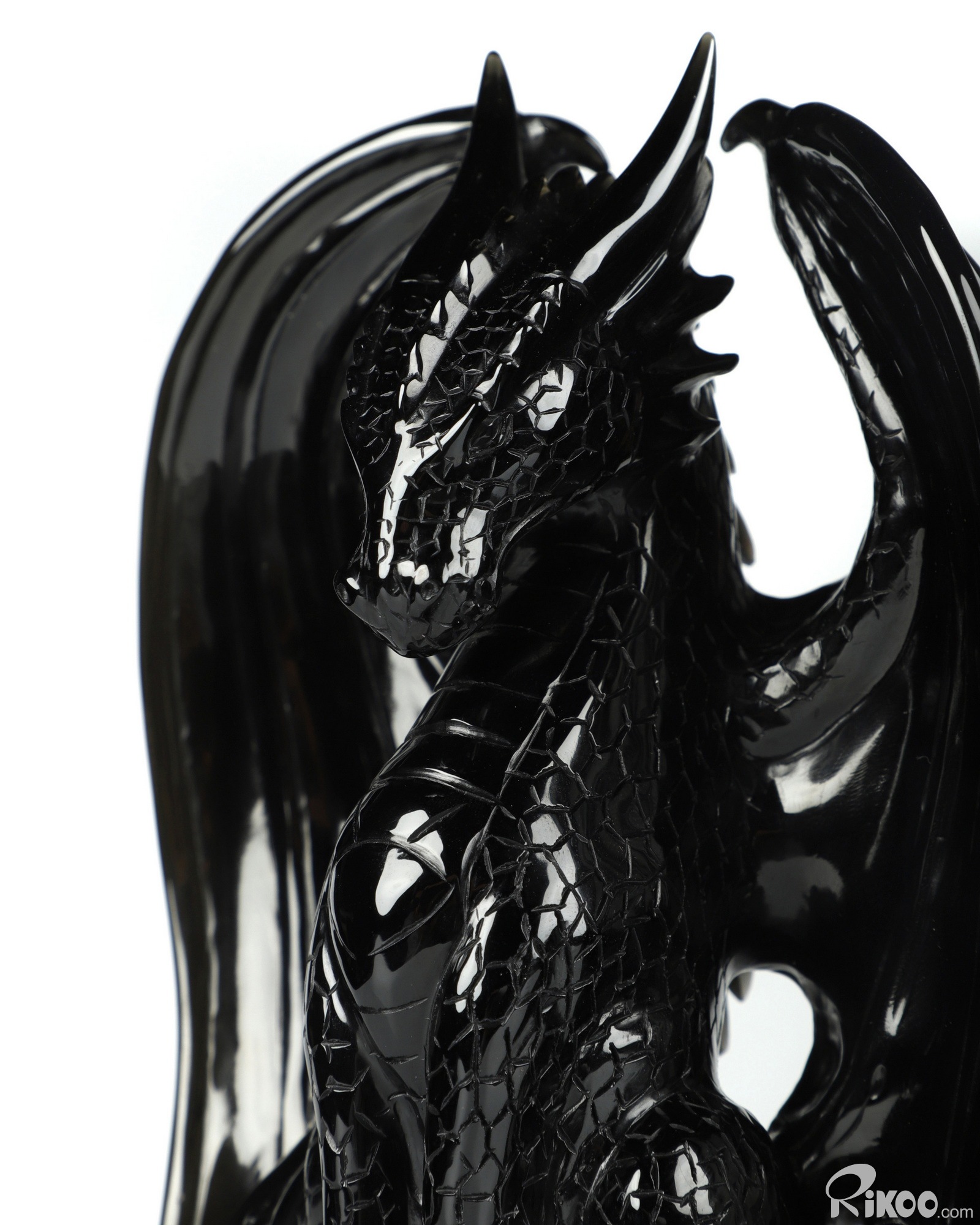 7.0" Black Obsidian Carved Crystal Dragon Sculpture, Realistic, Crystal Healing