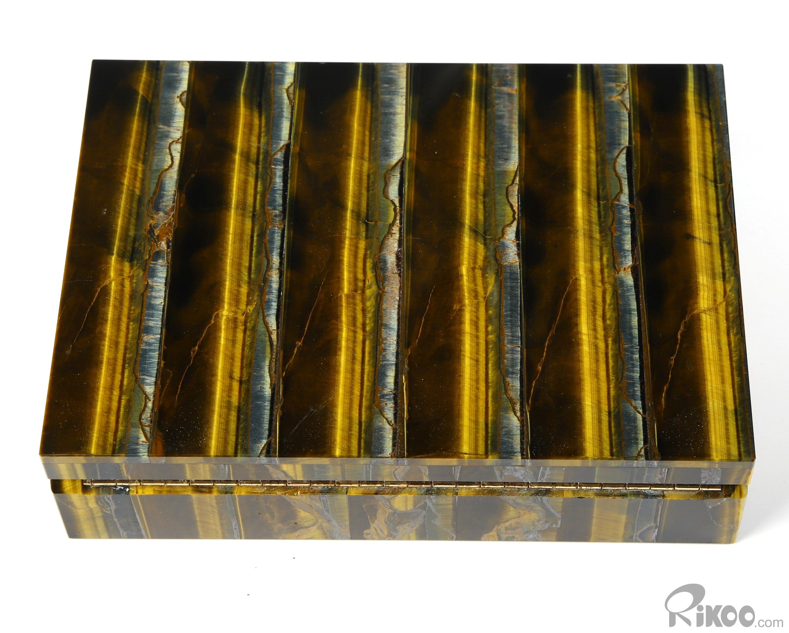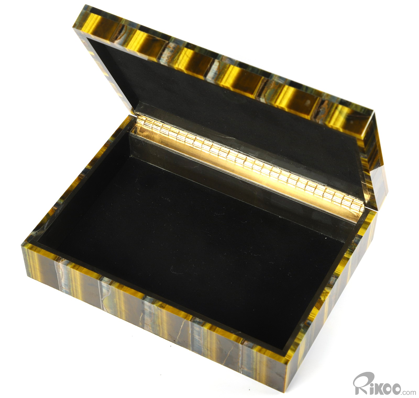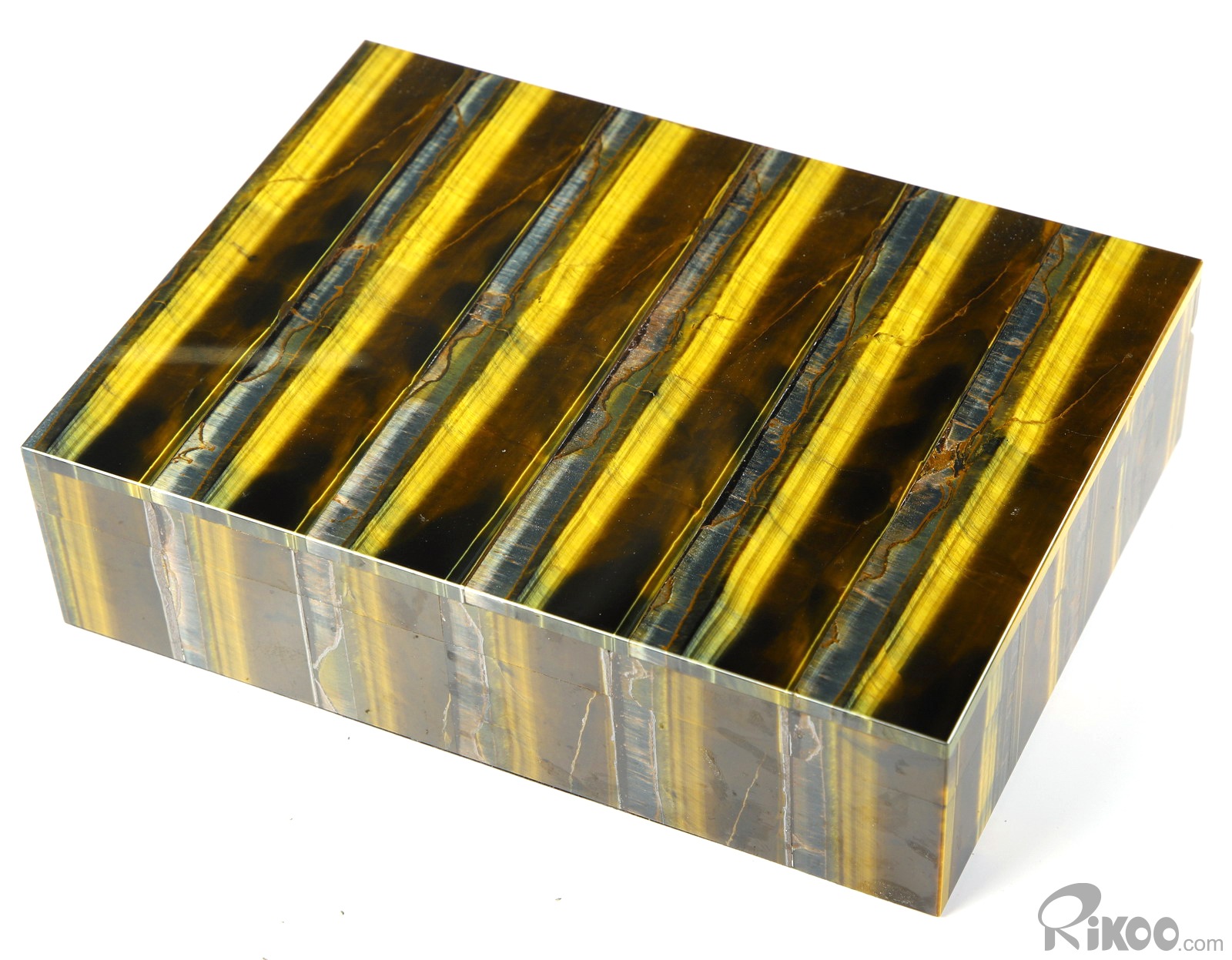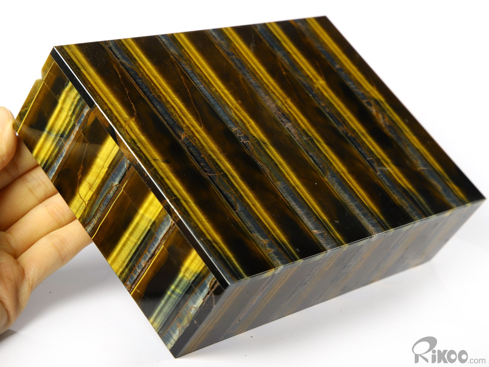7.0" Blue & Gold Tiger's Eye Carved Crystal Jewelry Box, Gemstone BOX, Crystal Healing