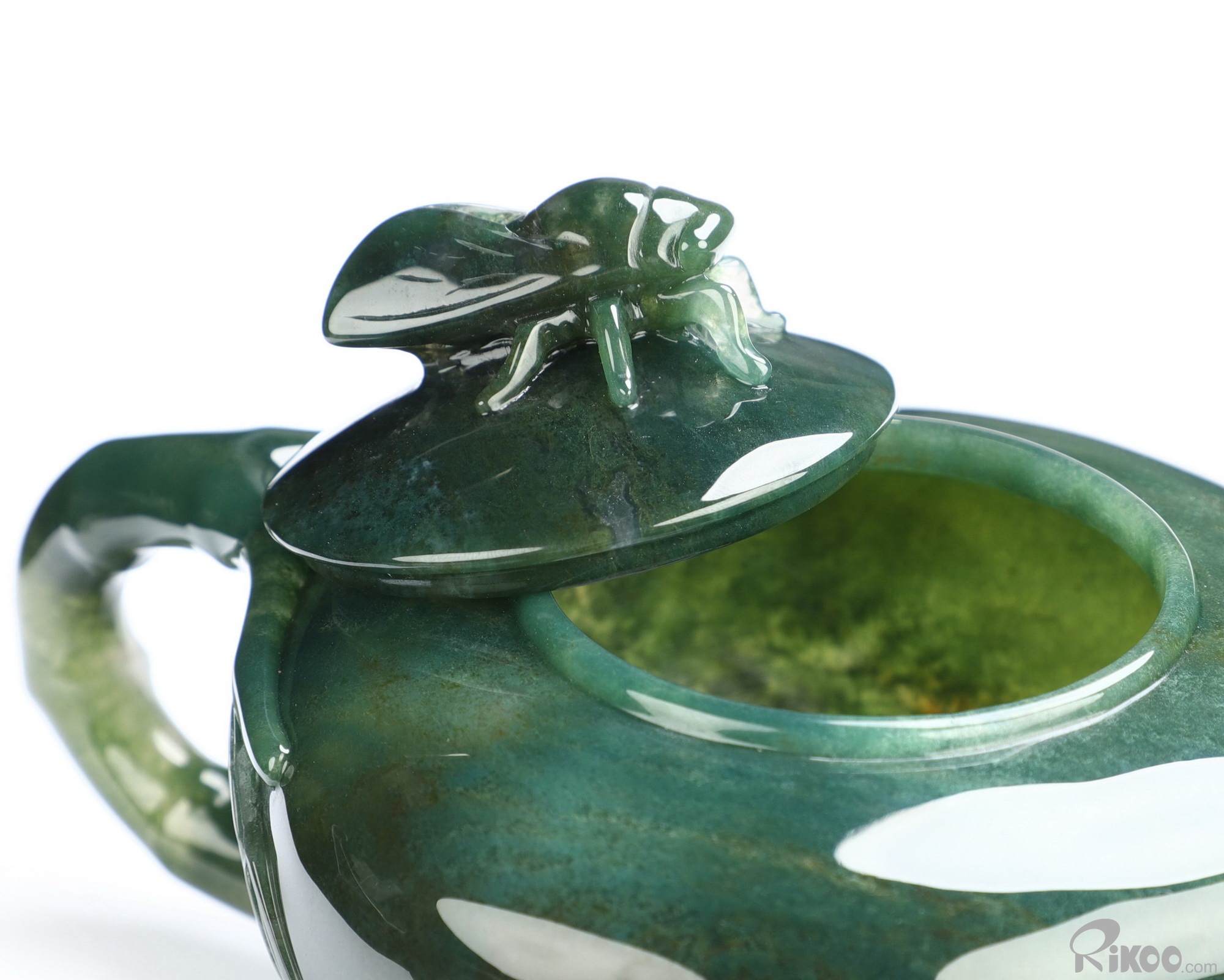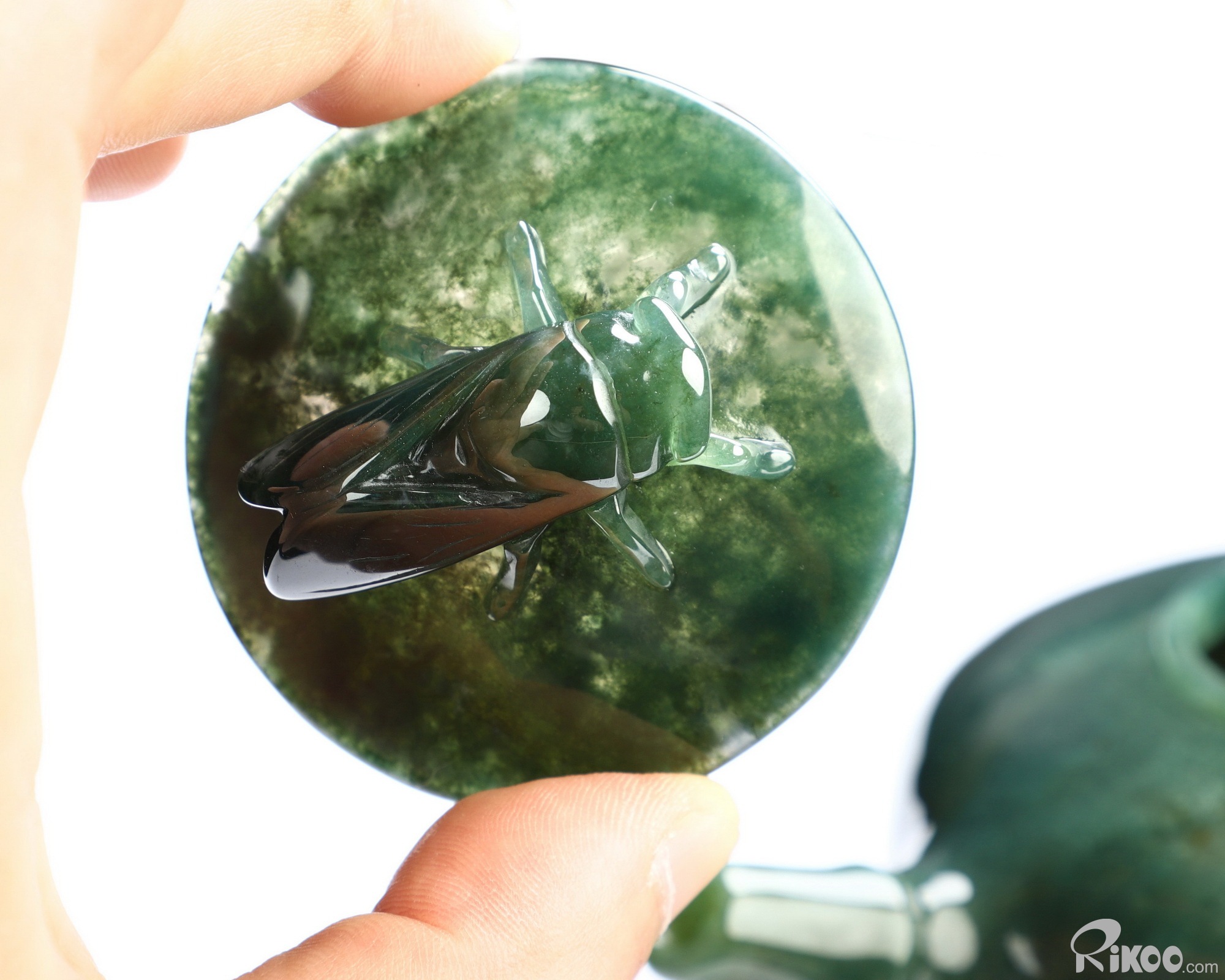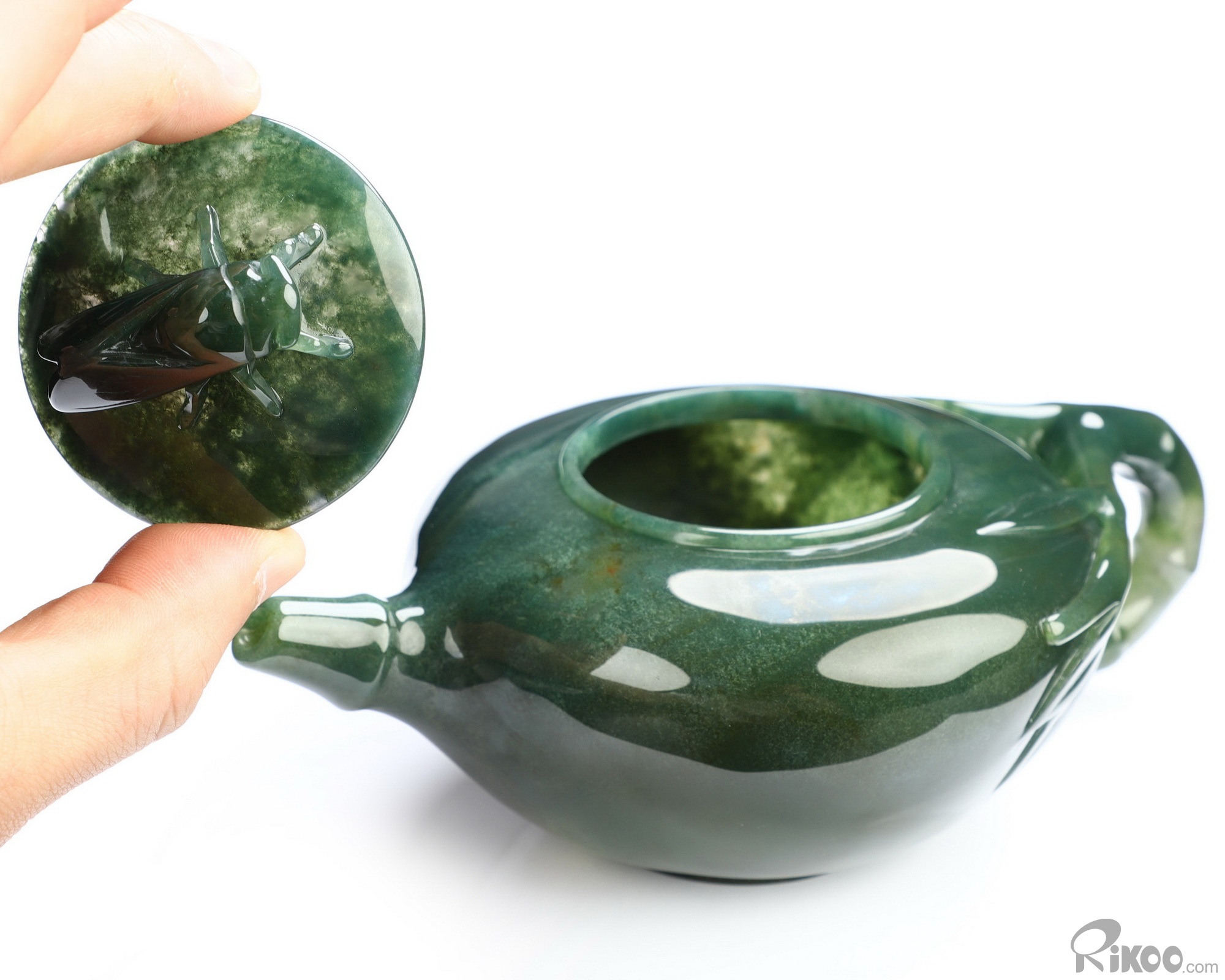 7.0" Indian Agate Hand Carved Crystal Pot and Cicada, Crystal Healing