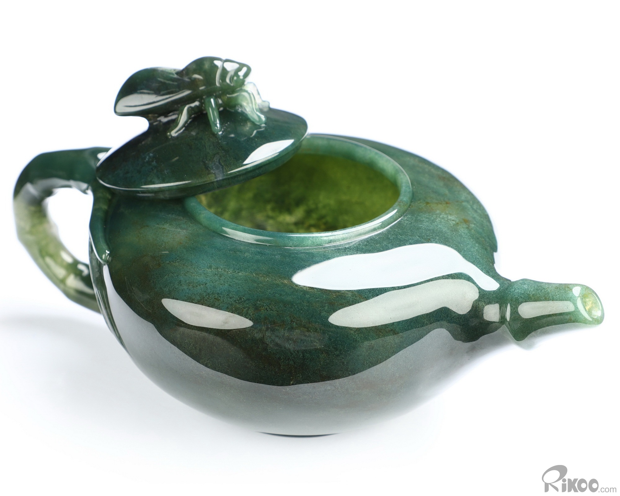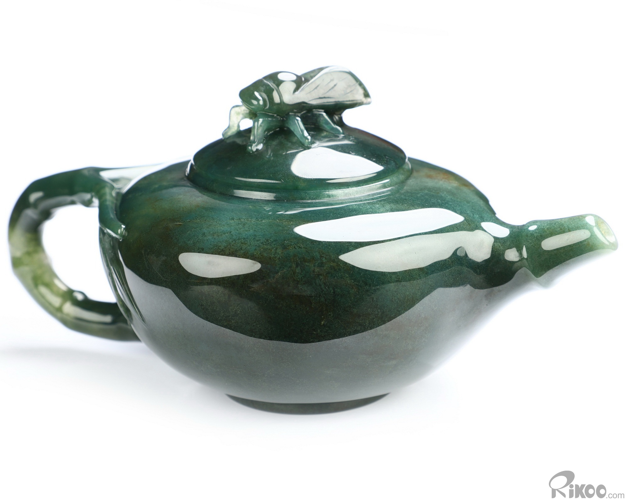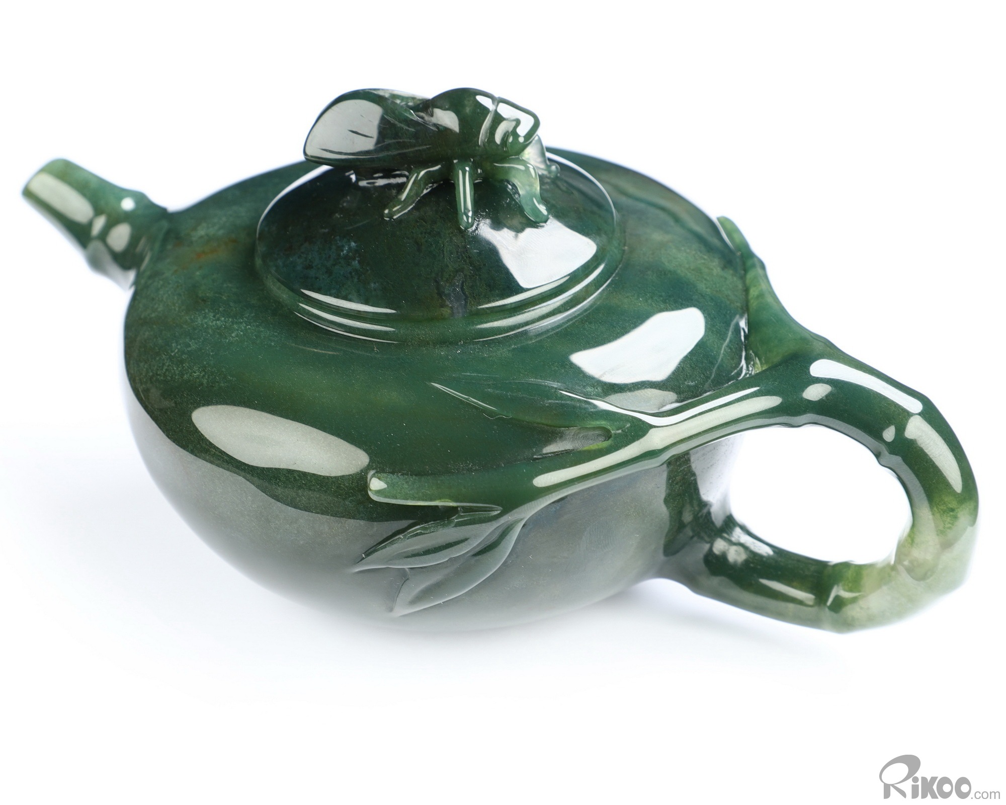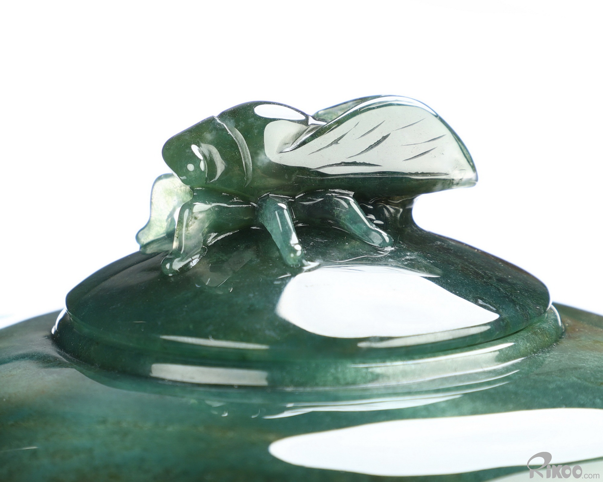7.0" Indian Agate Hand Carved Crystal Pot and Cicada, Crystal Healing