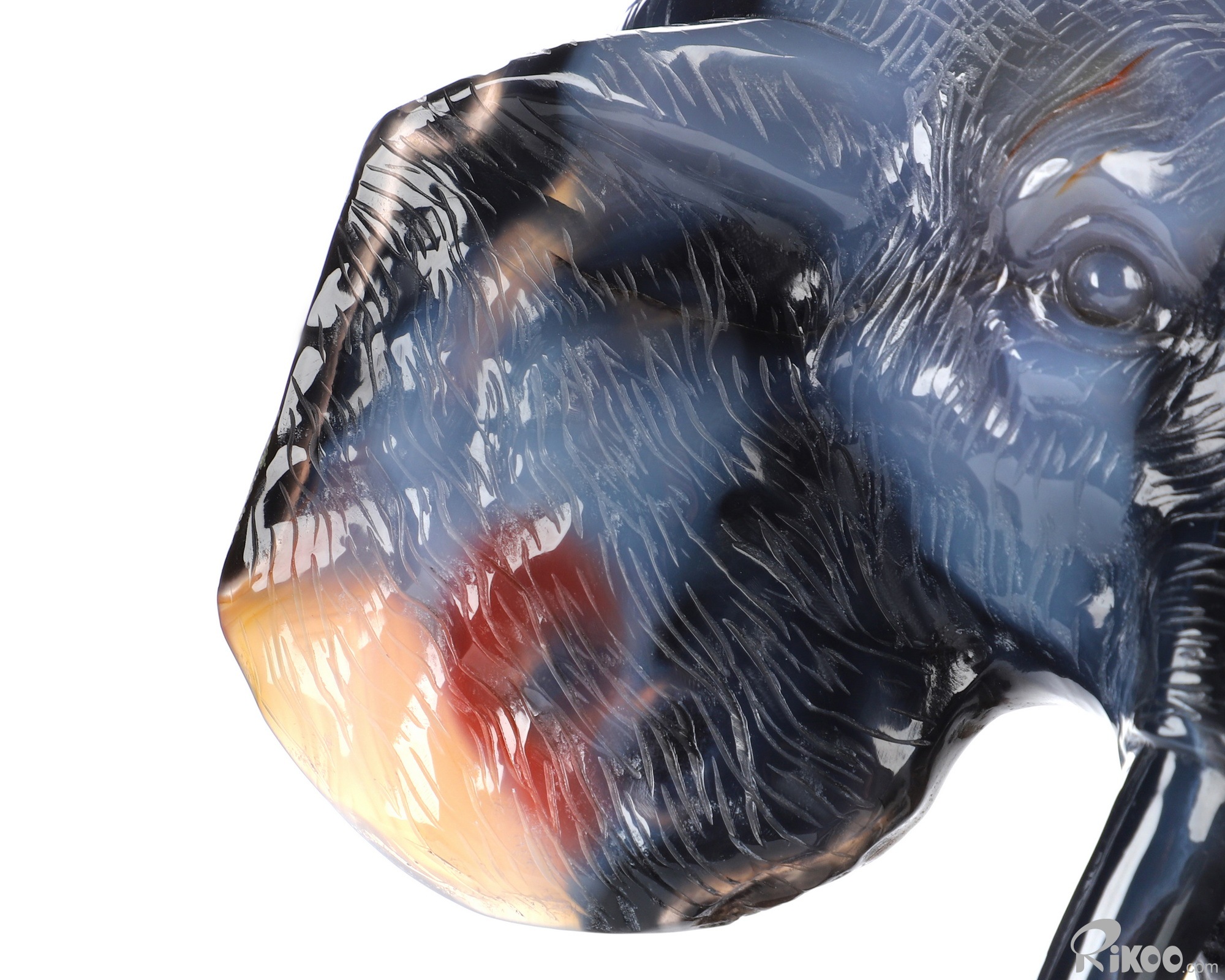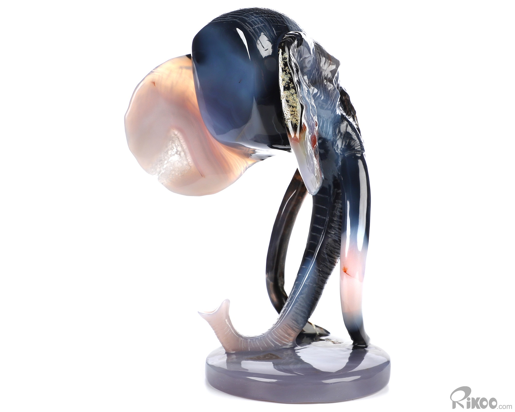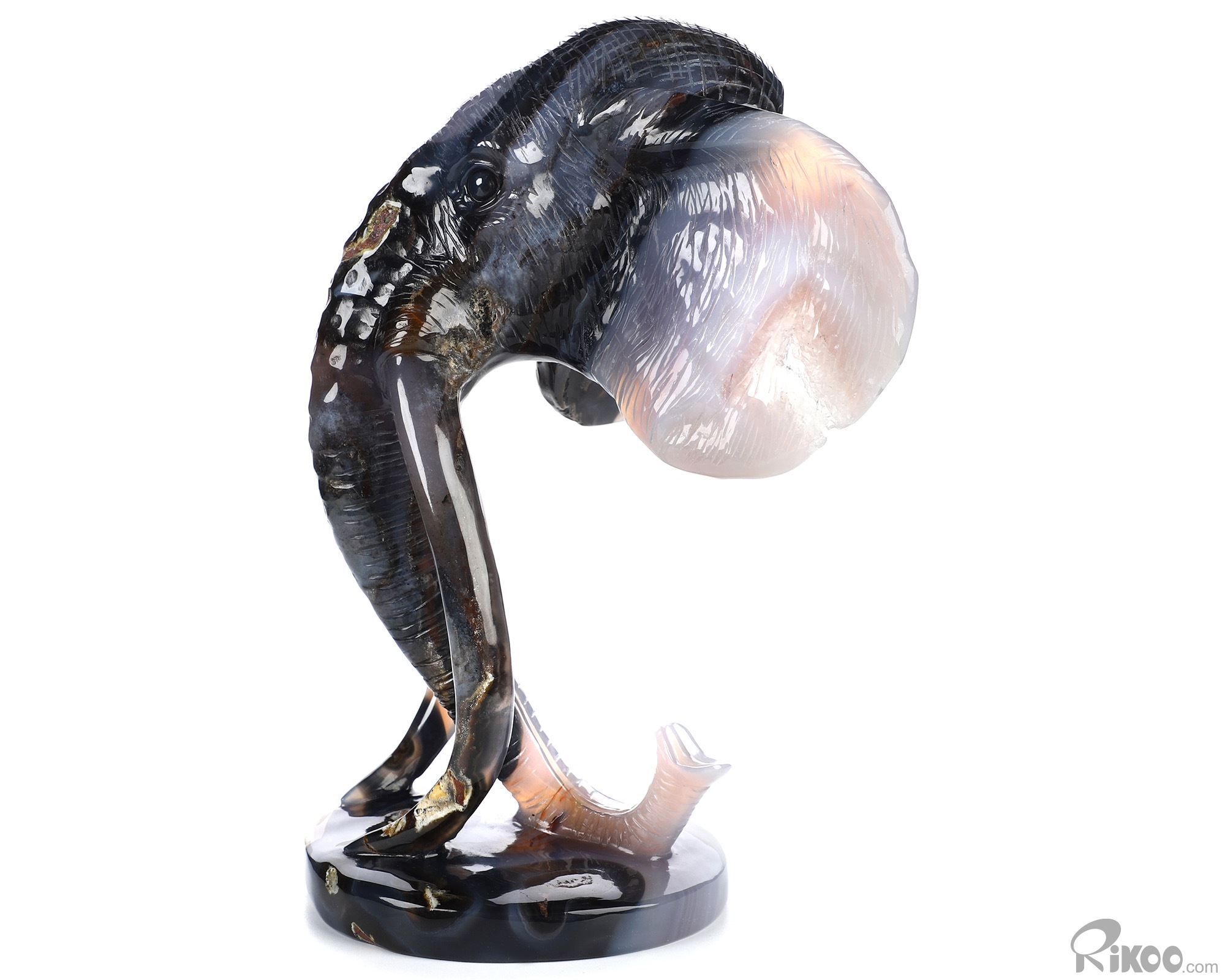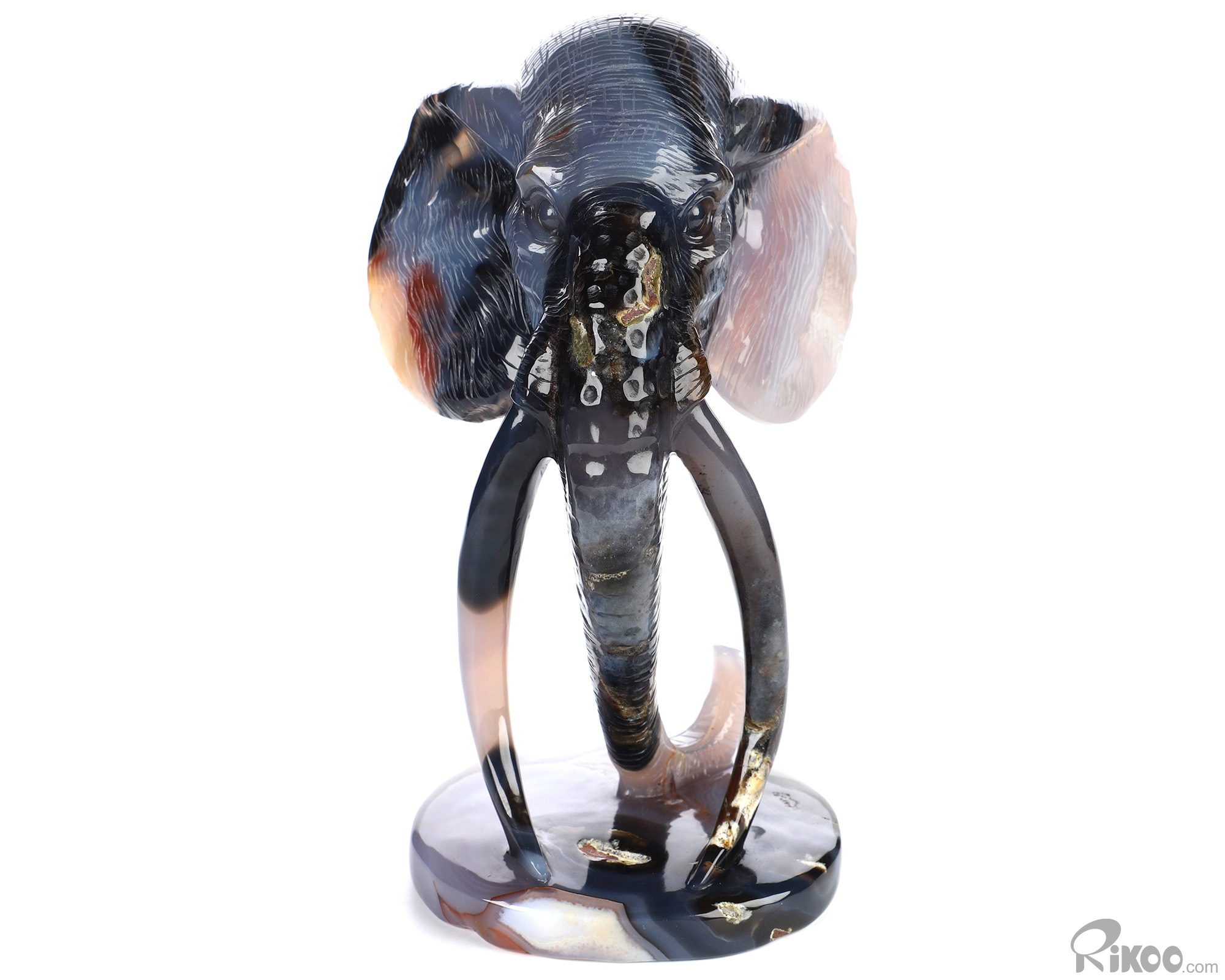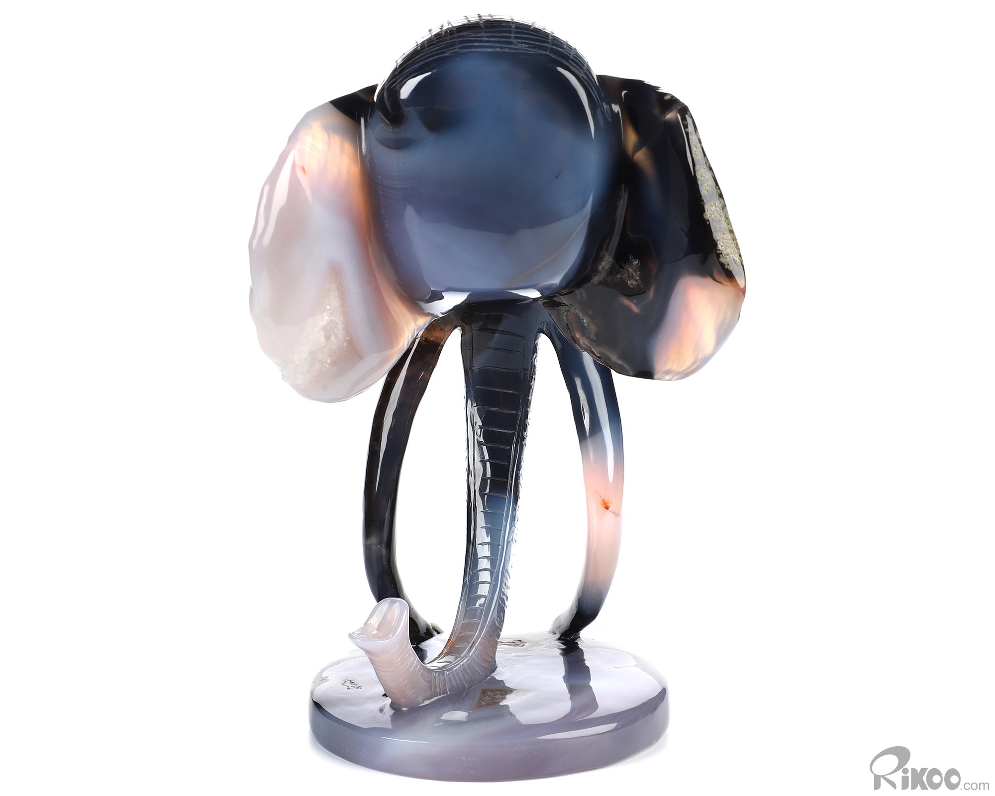 7.0" Premium Brazilian Agate Hand Carved Crystal Elephant Sculpture, Crystal Healing