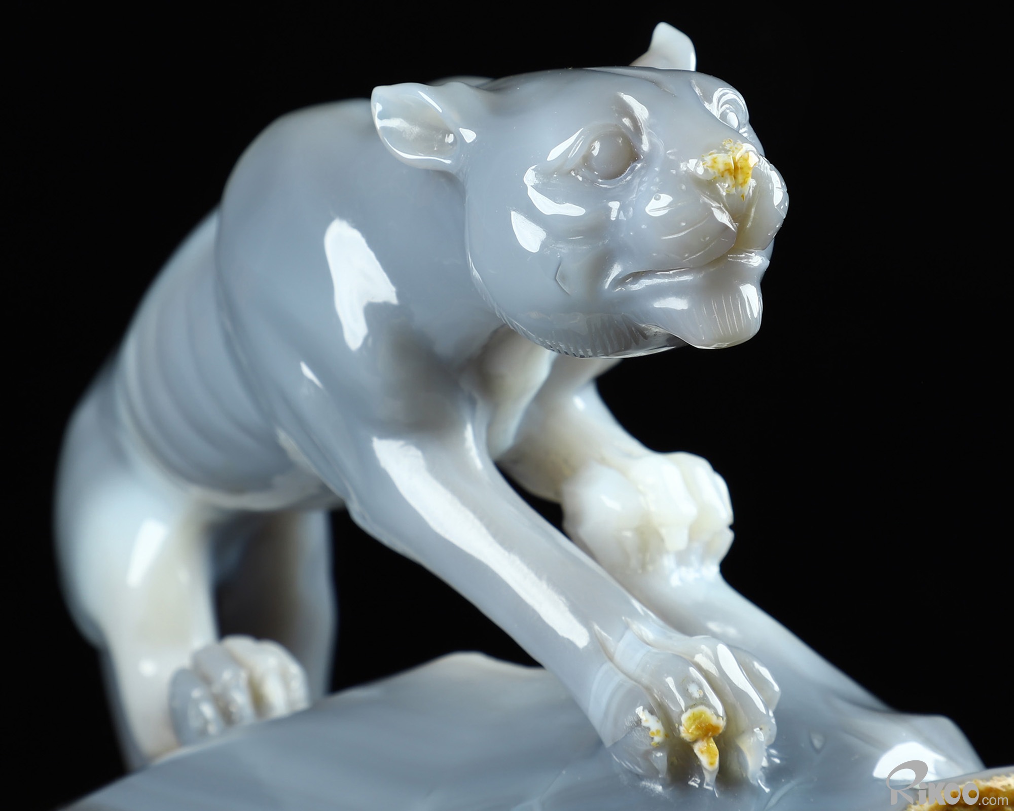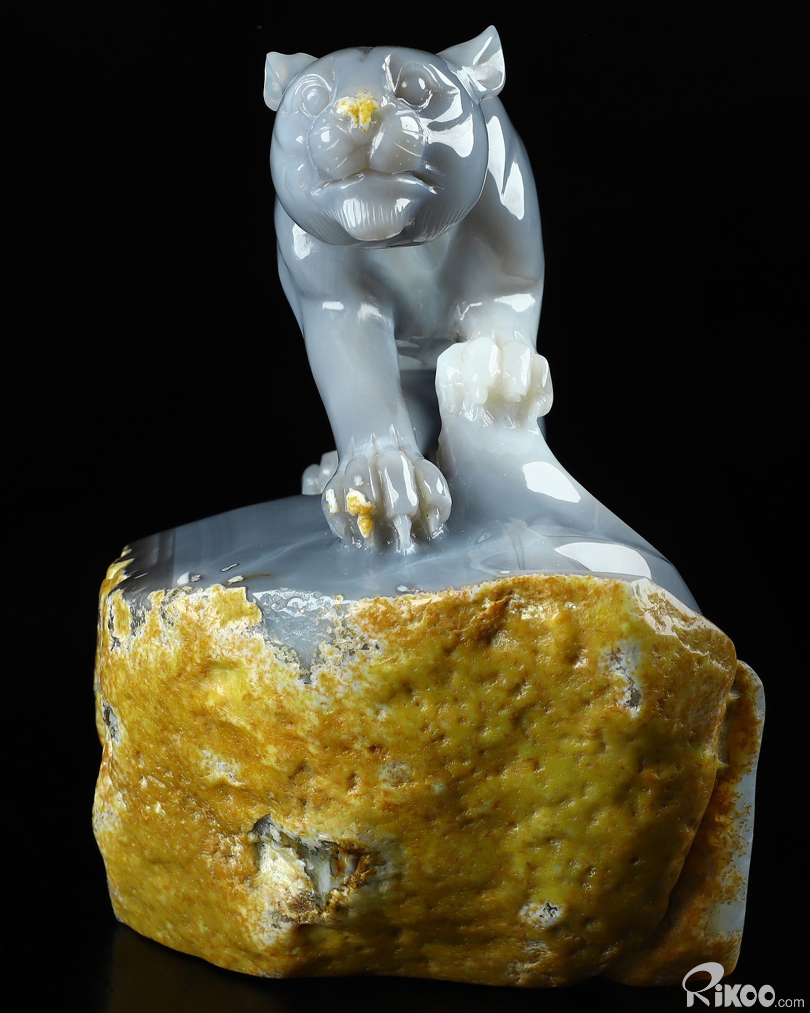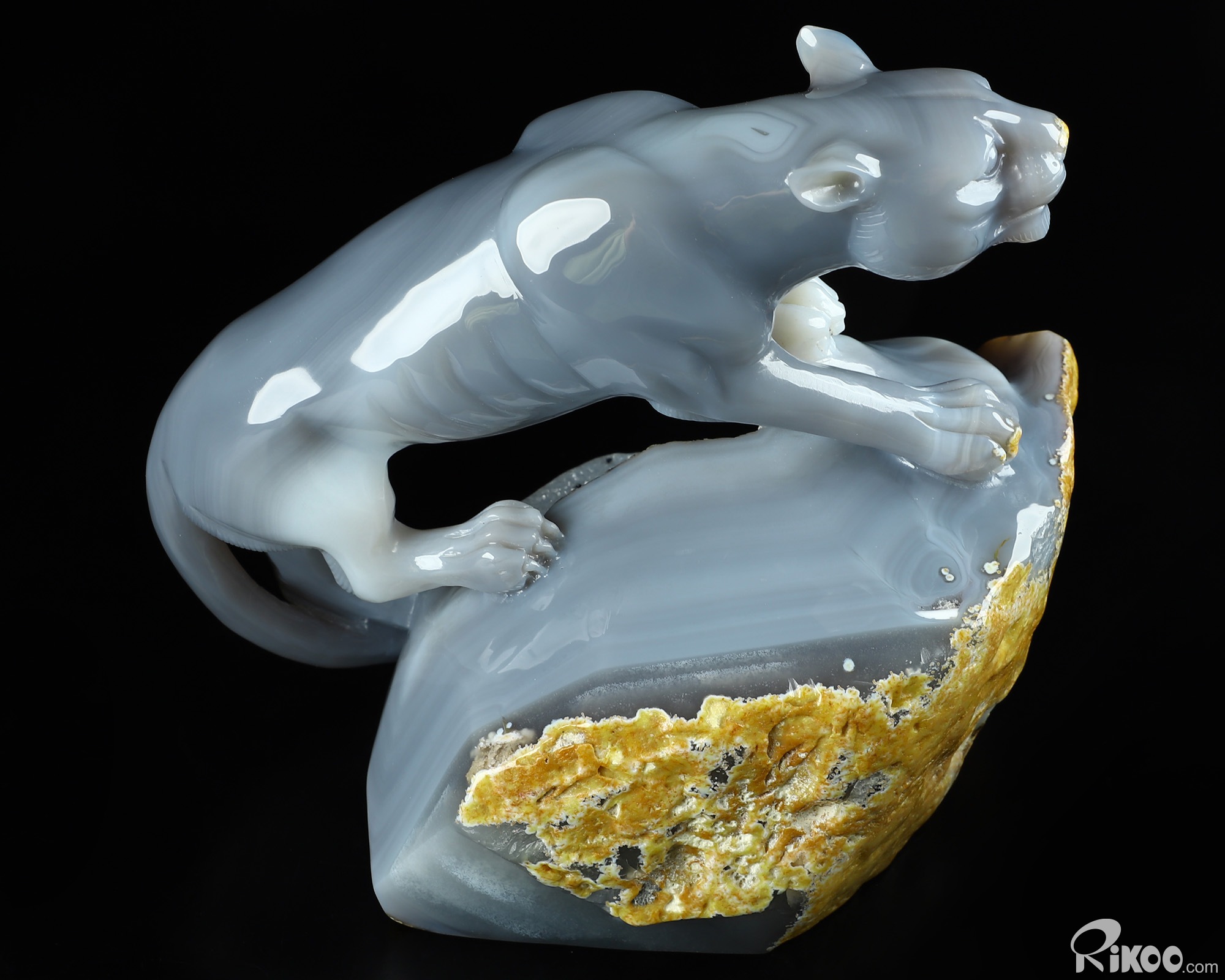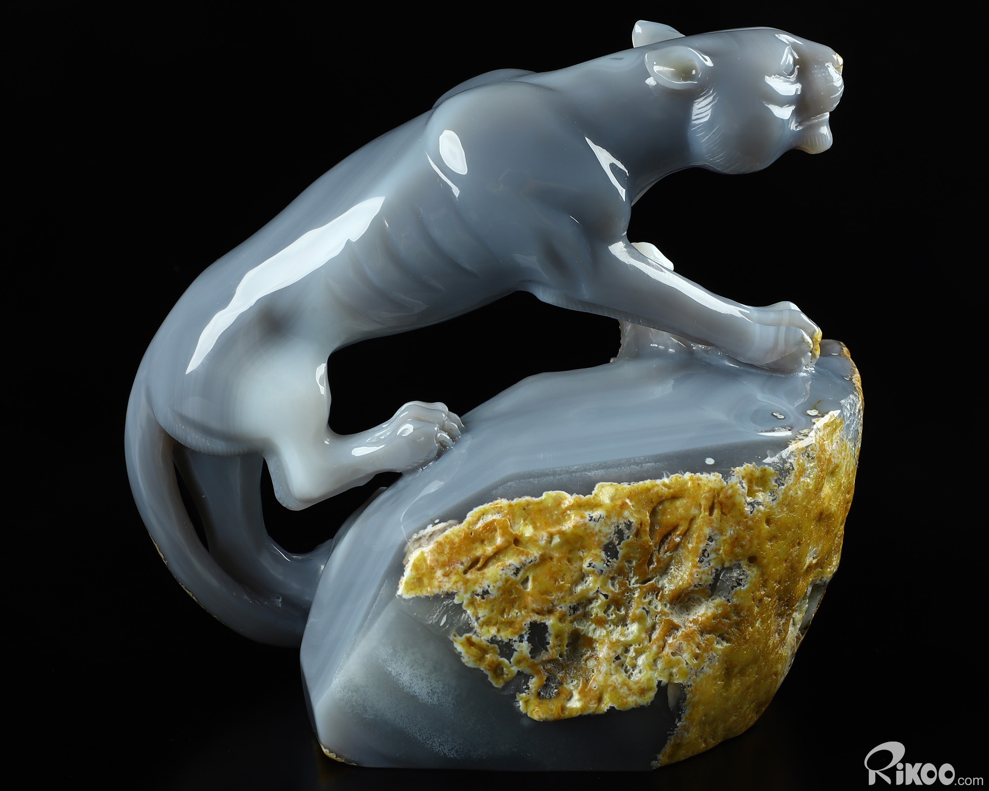7.1" Agate Geode Hand Carved Crystal Leopard Sculpture, Crystal Healing