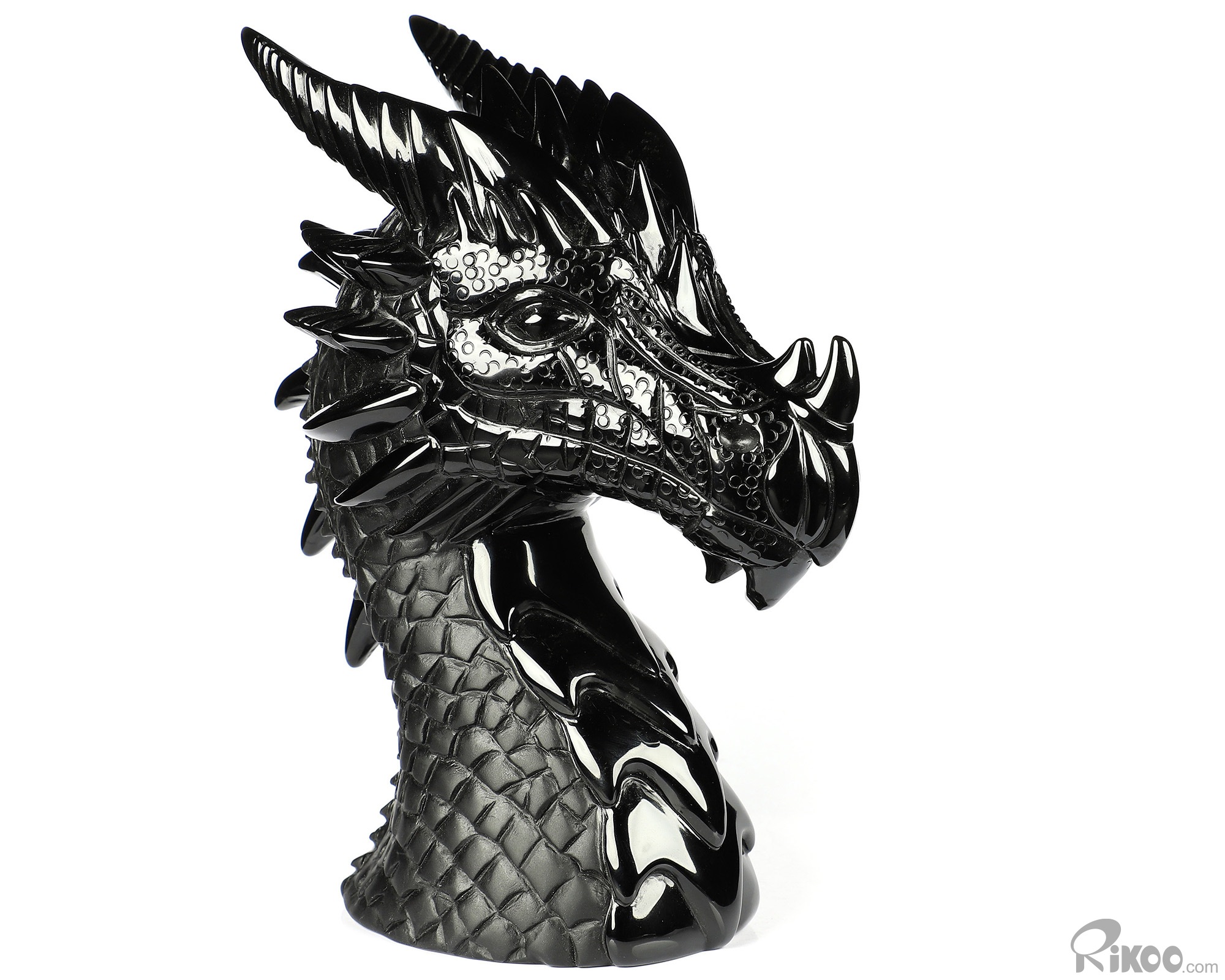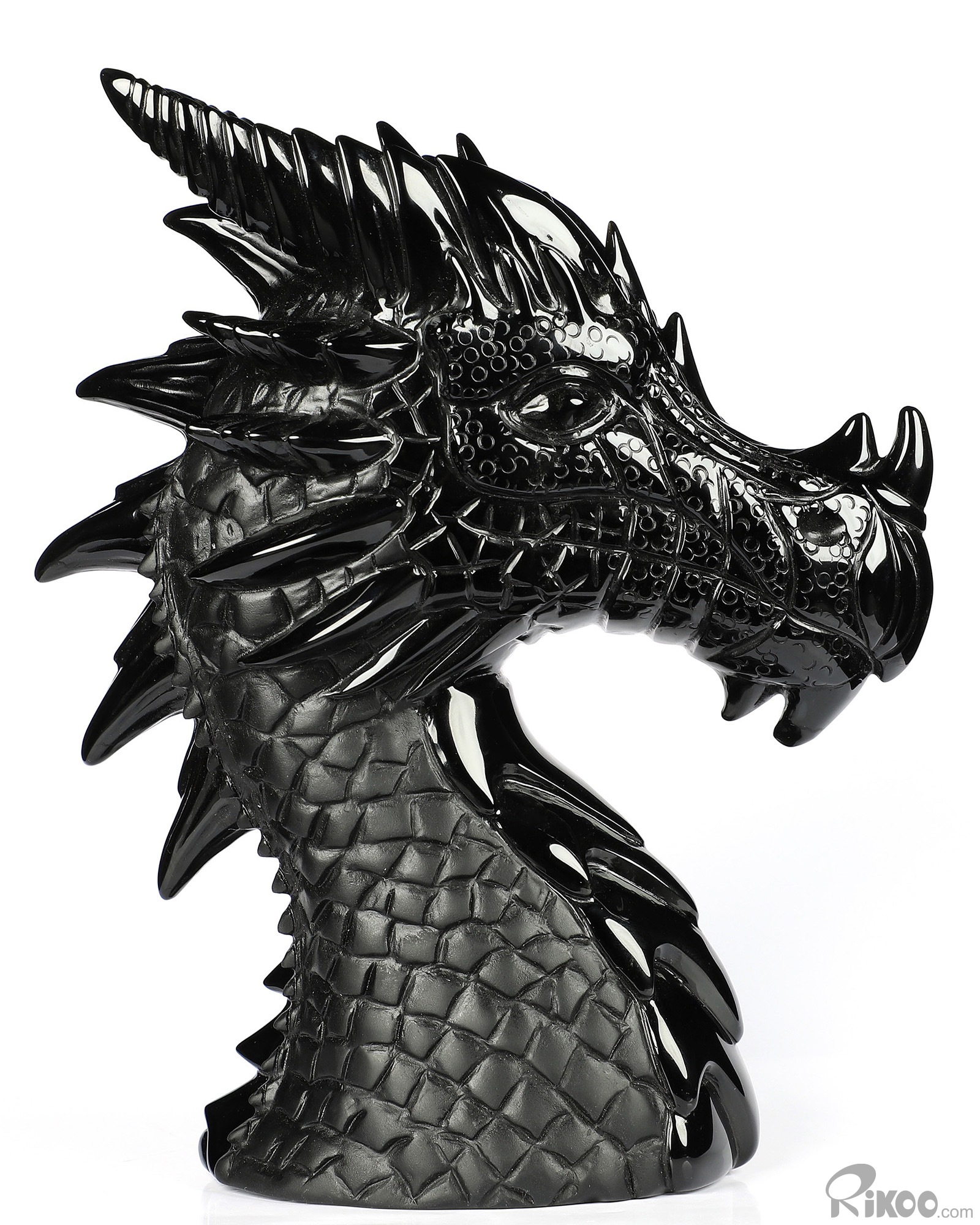 7.1" Black Obsidian Carved Crystal Dragon Sculpture, Crystal Healing