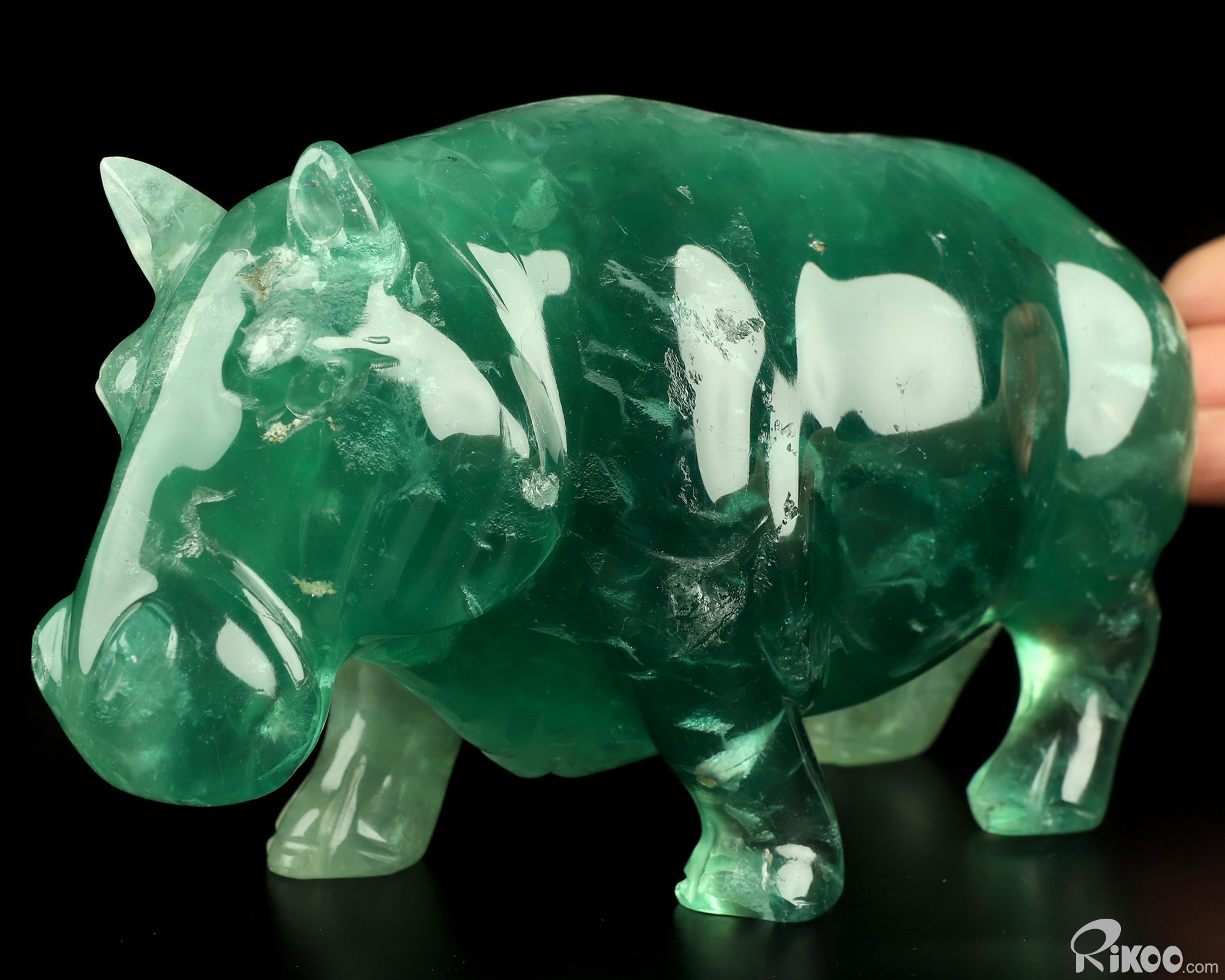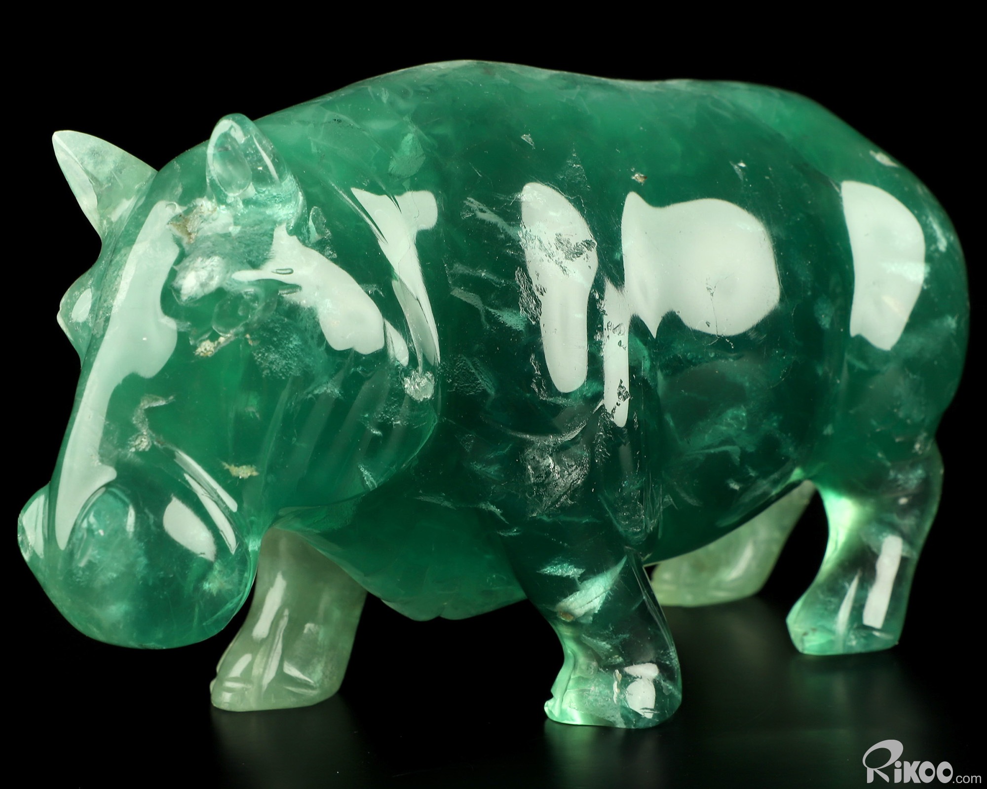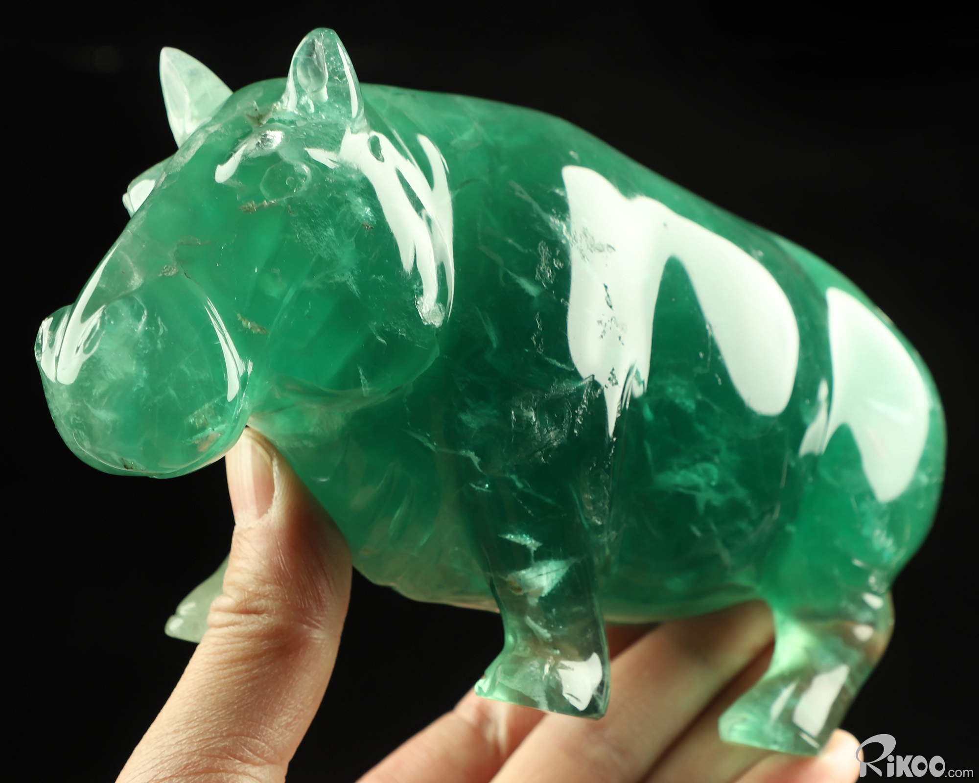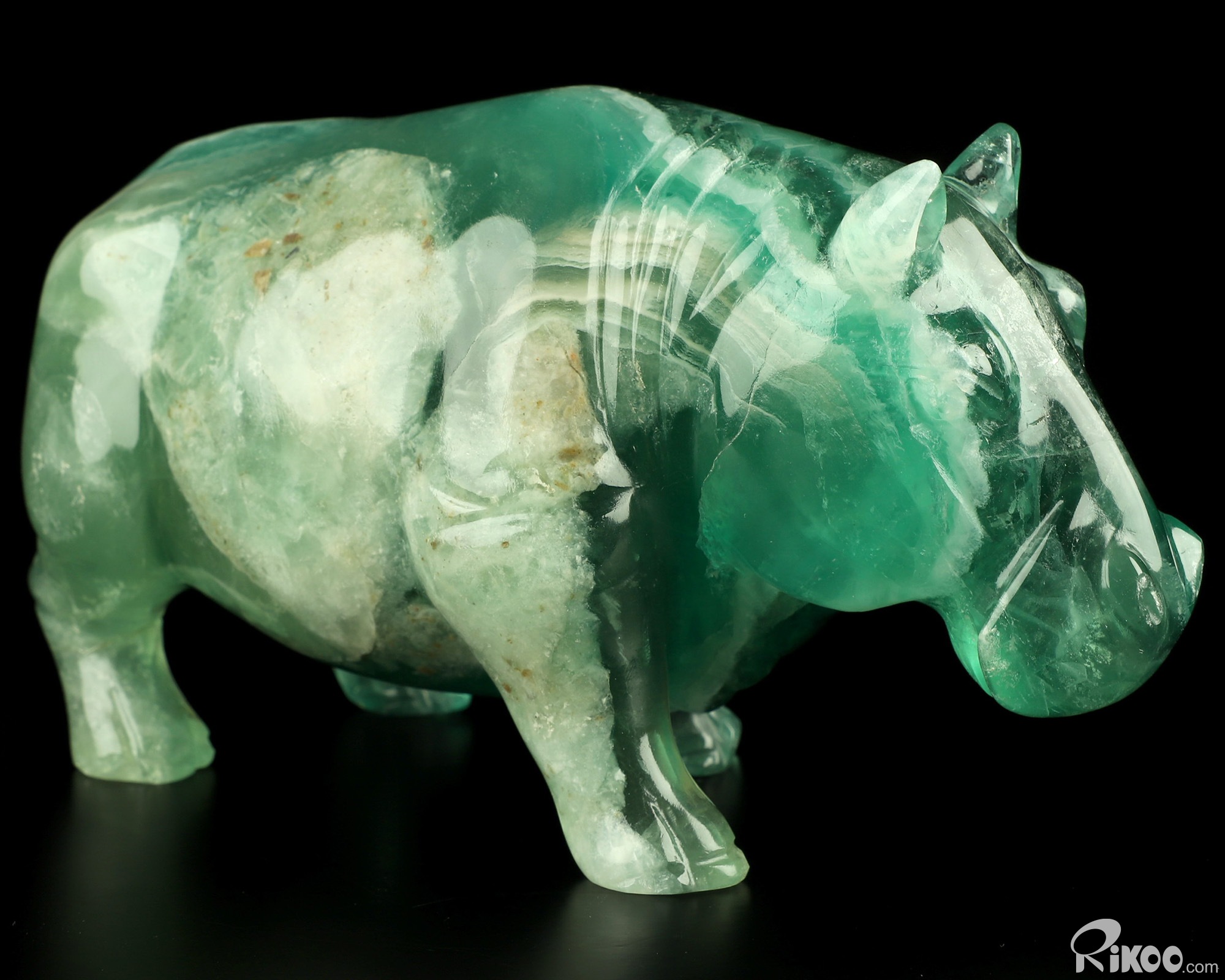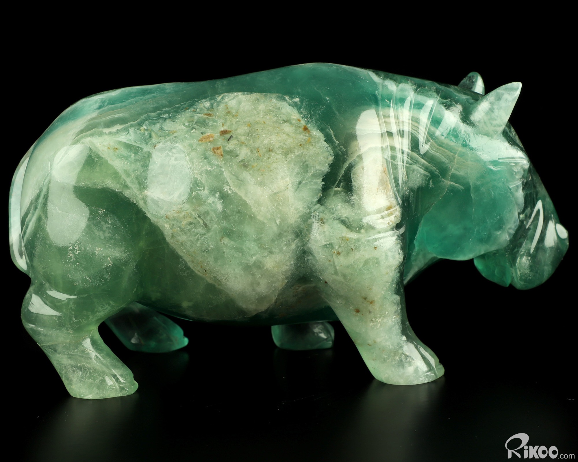 7.1" Fluorite Hand Carved Crystal Rhino Sculpture, Crystal Healing