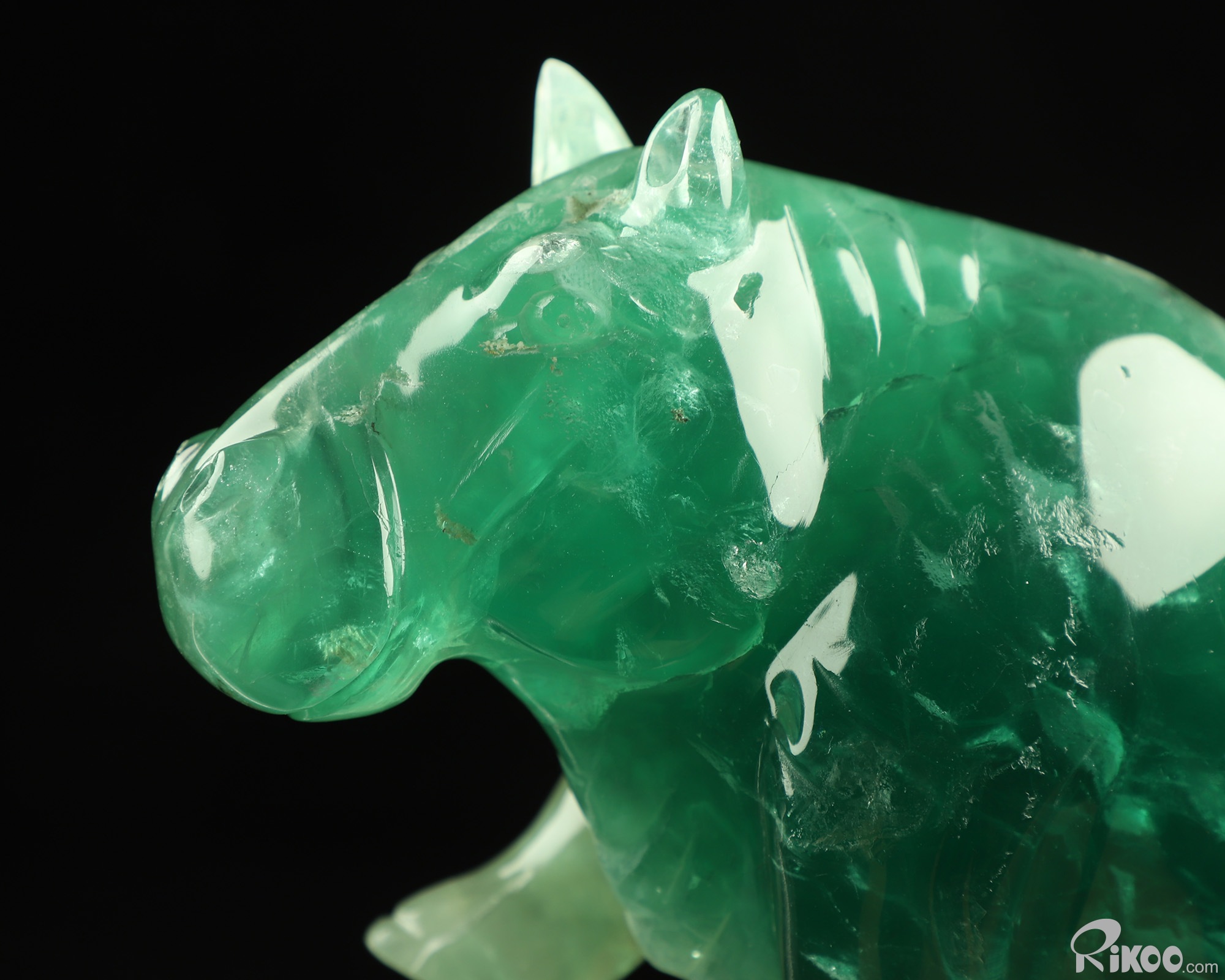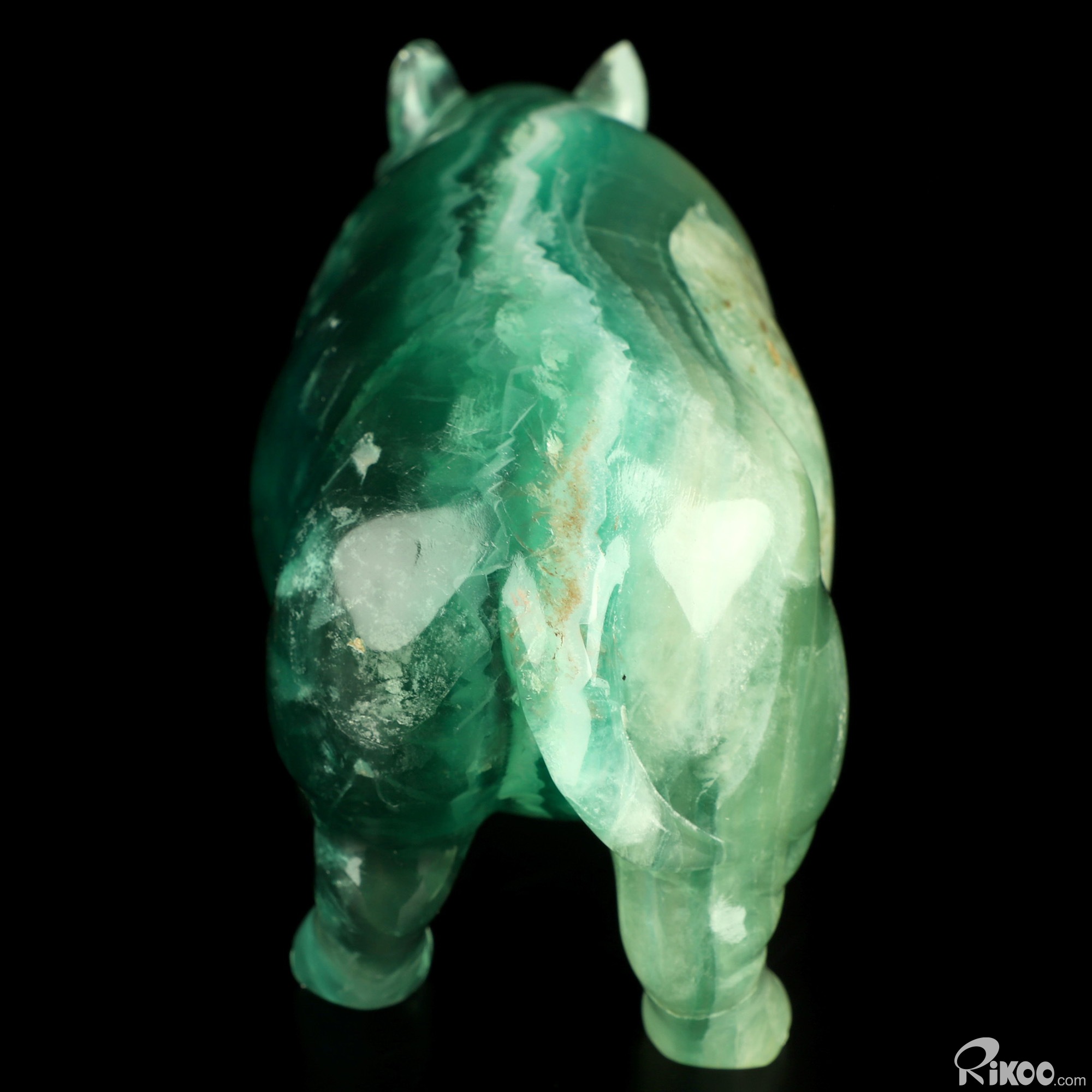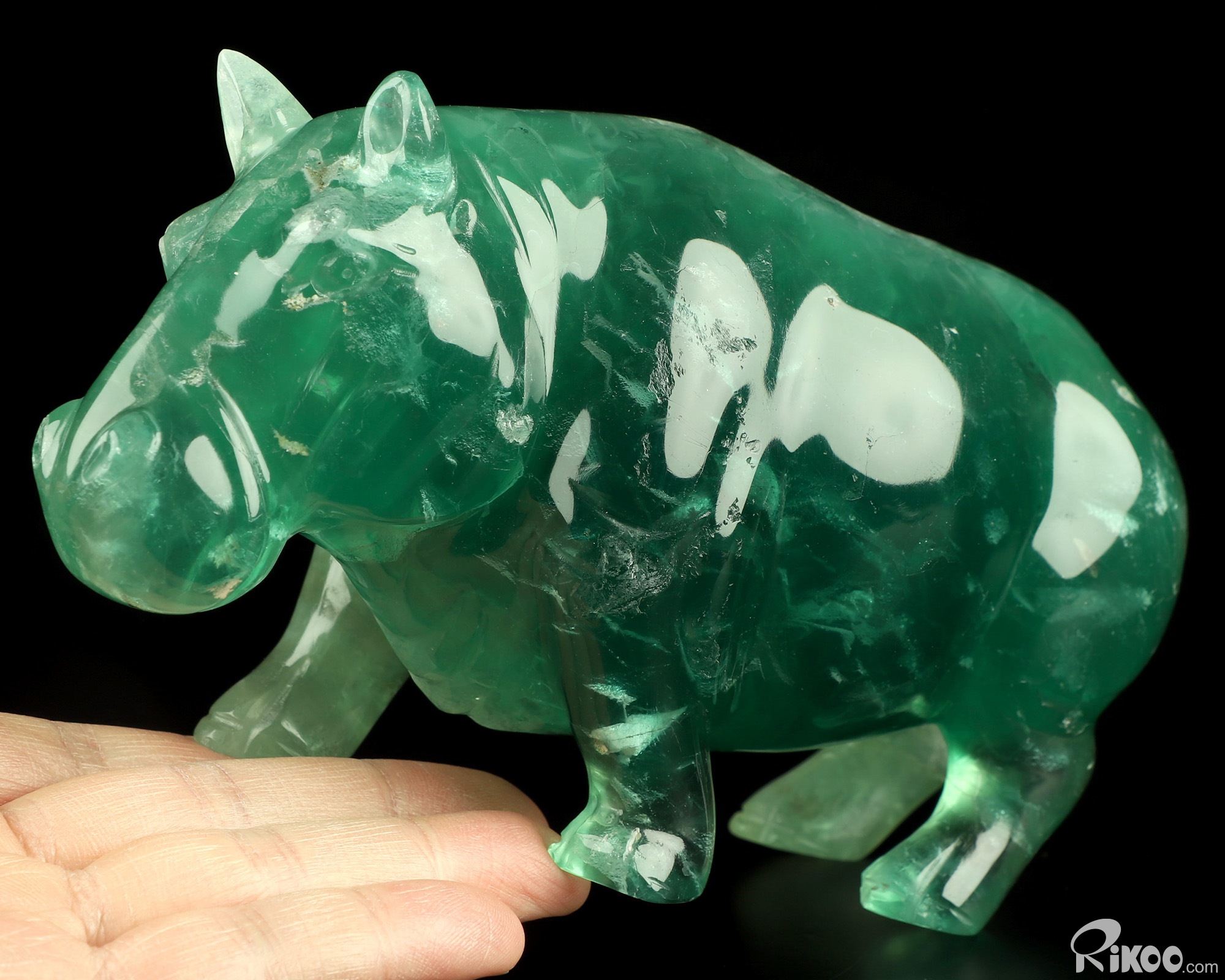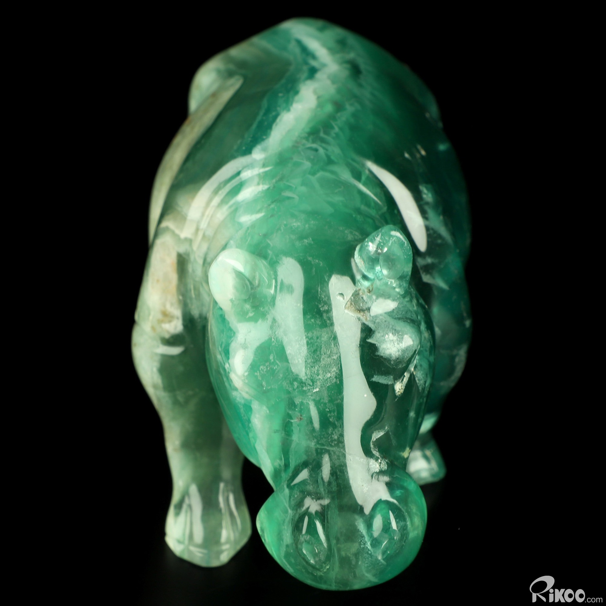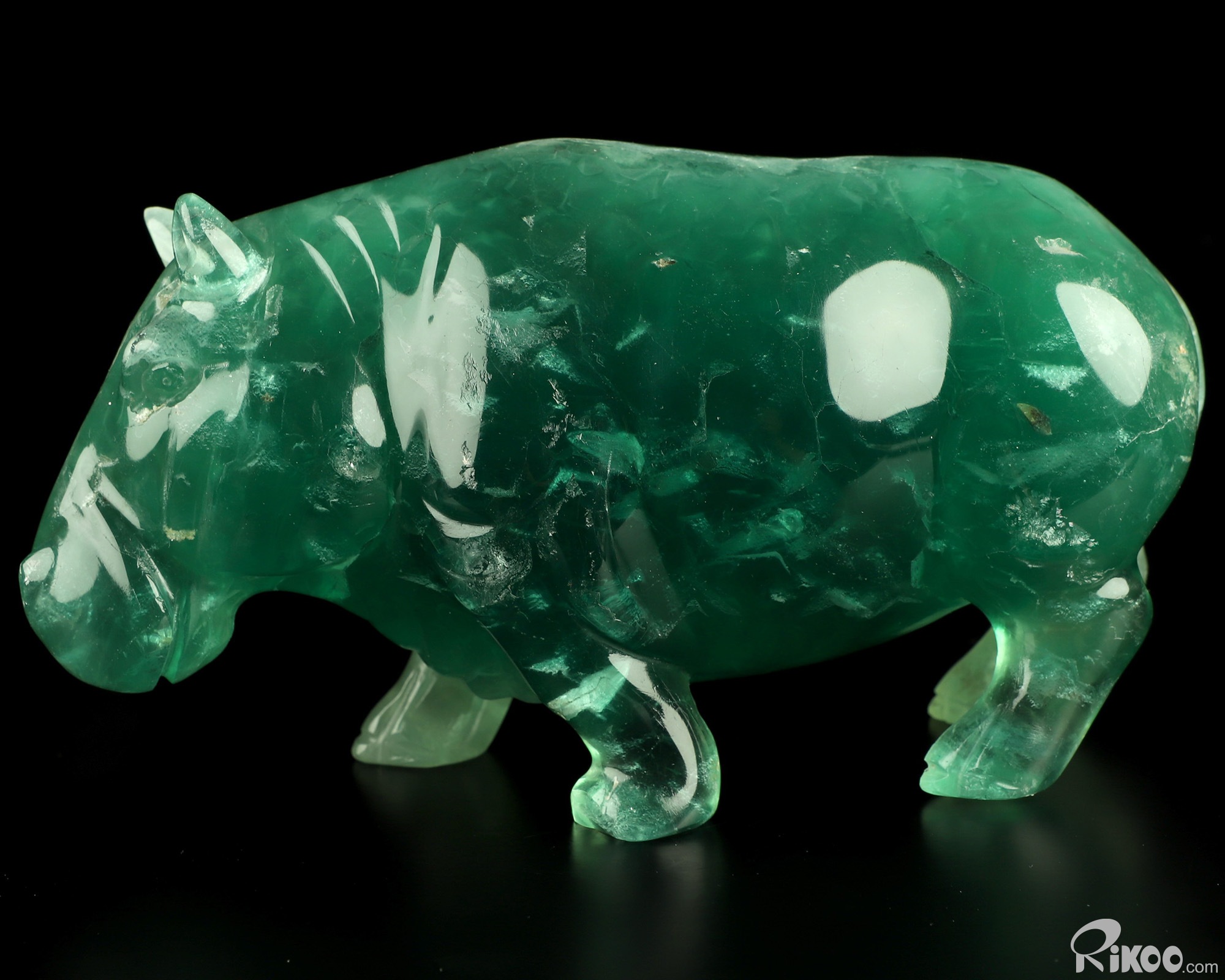 7.1" Fluorite Hand Carved Crystal Rhino Sculpture, Crystal Healing