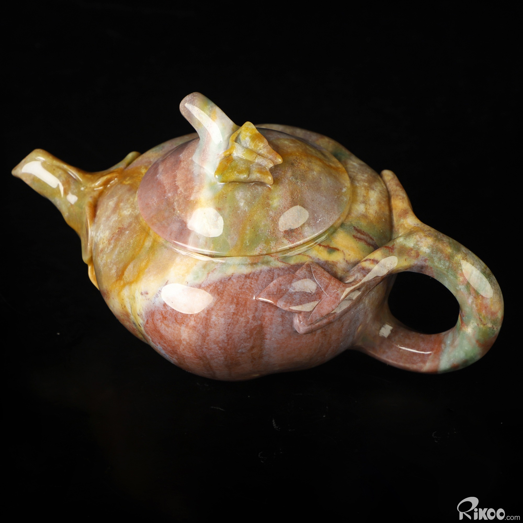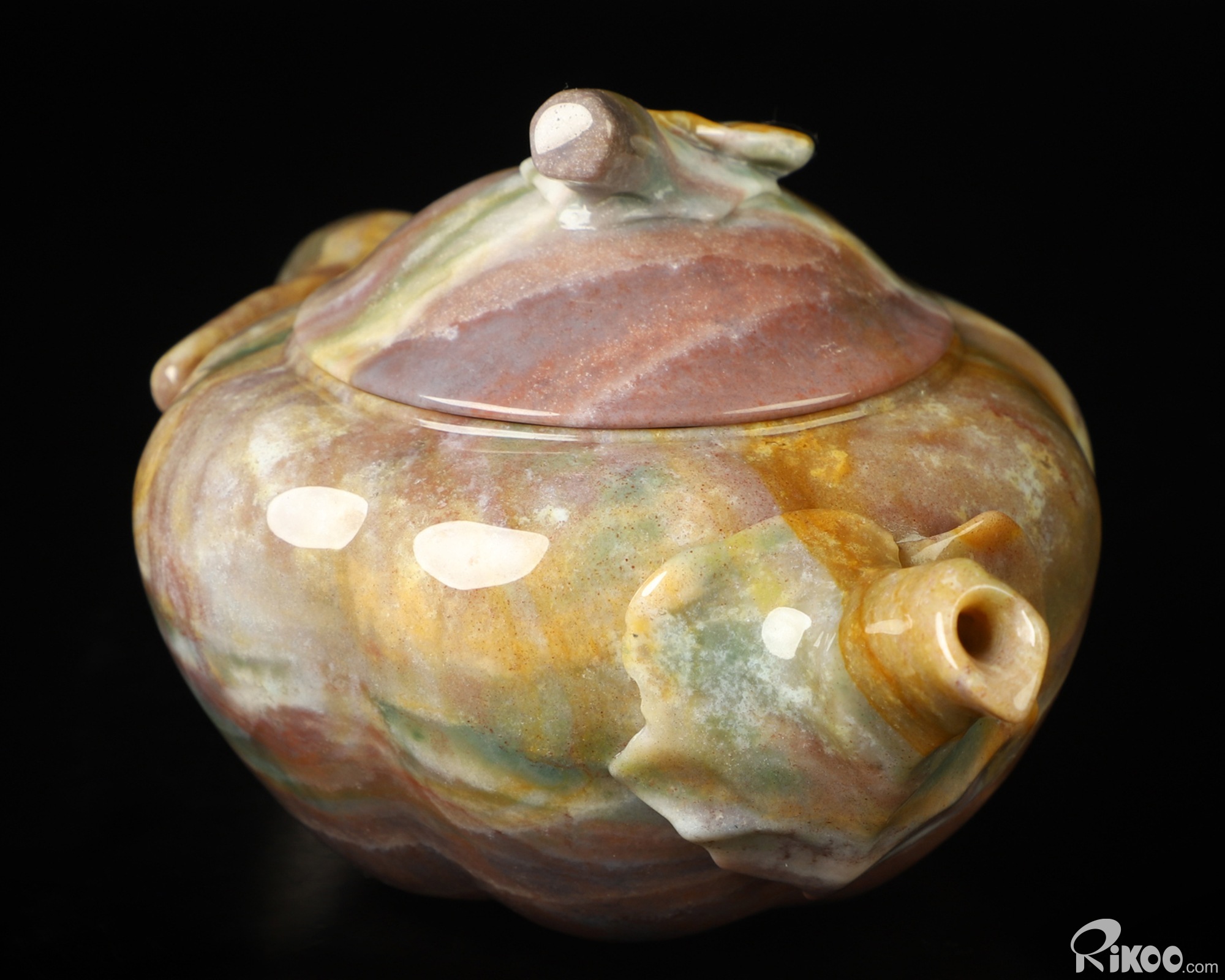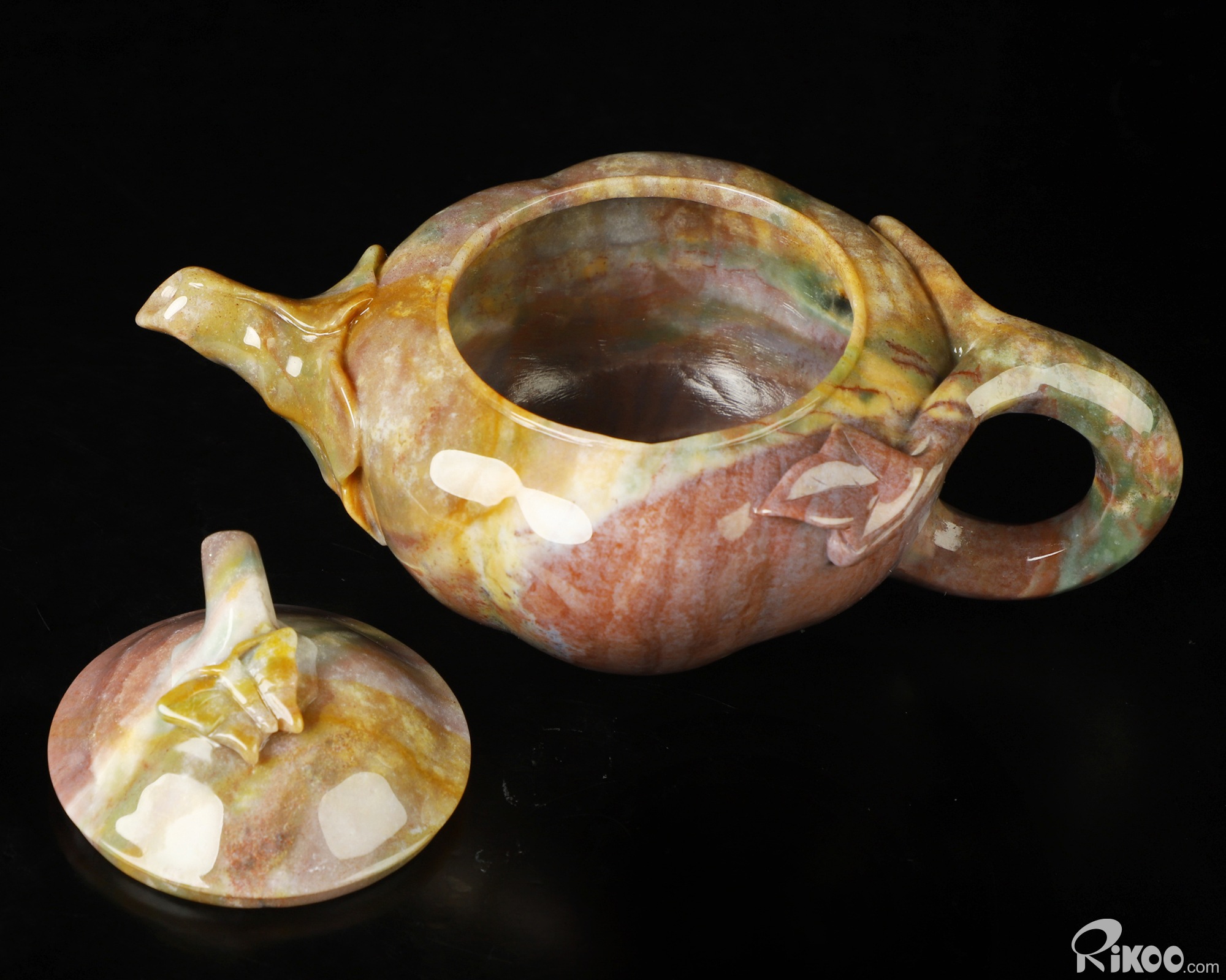 7.1" Indian Agate Hand Carved Crystal Pot and Butterfly, Crystal Healing