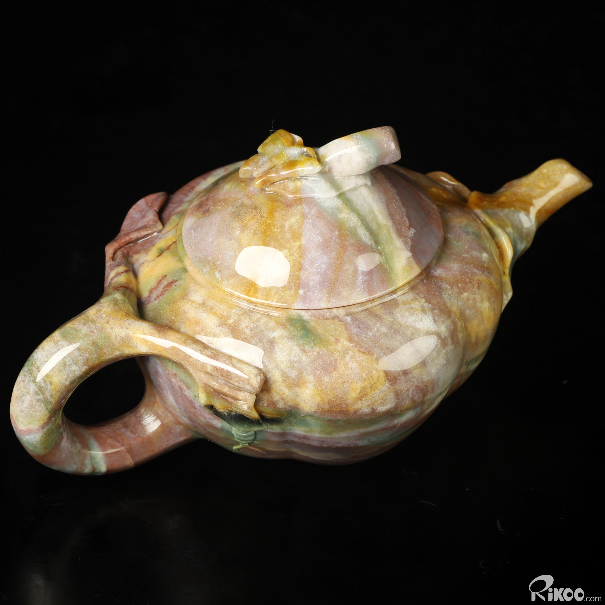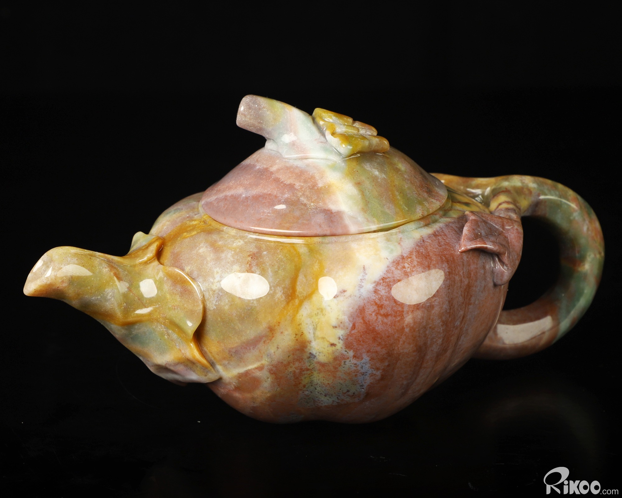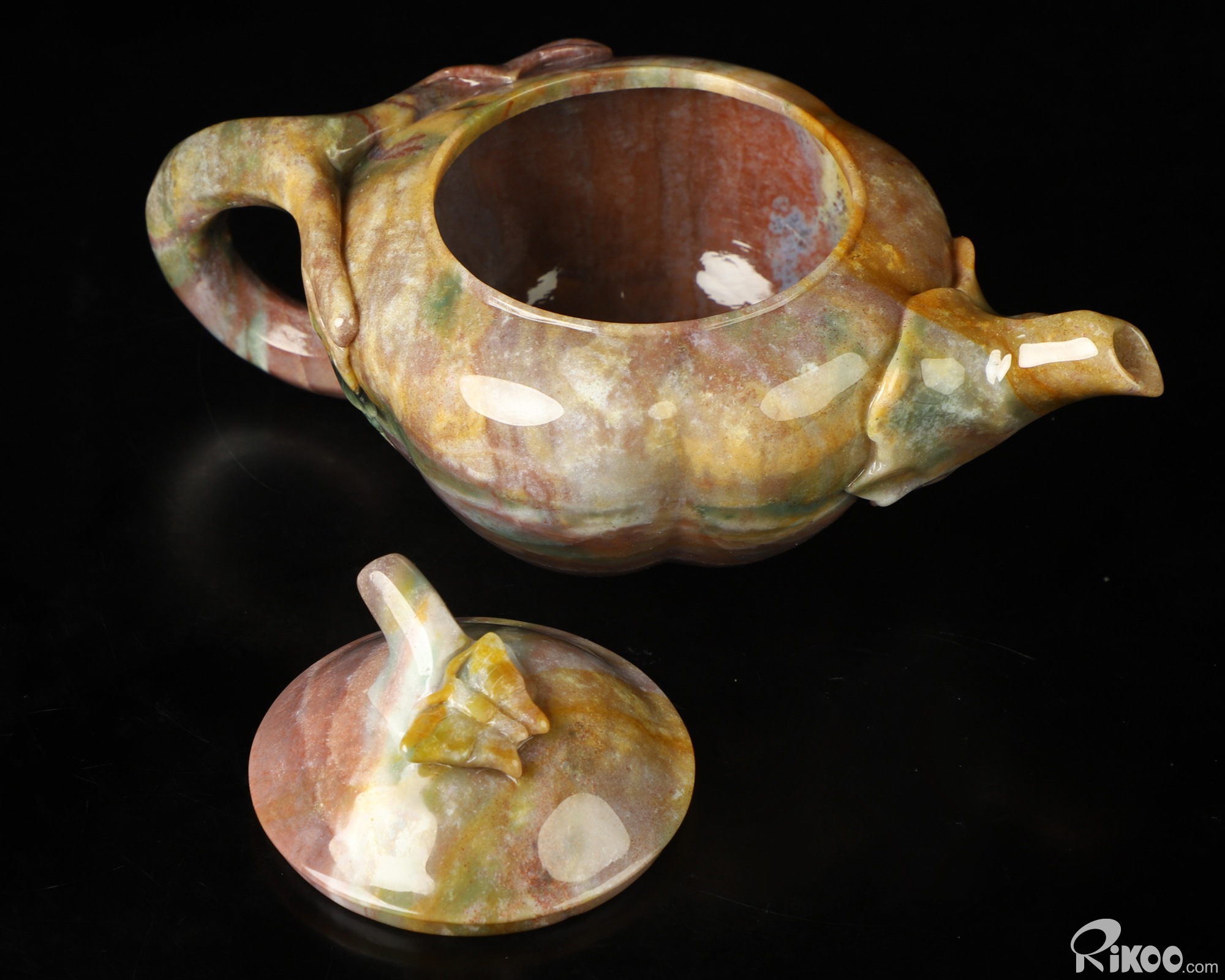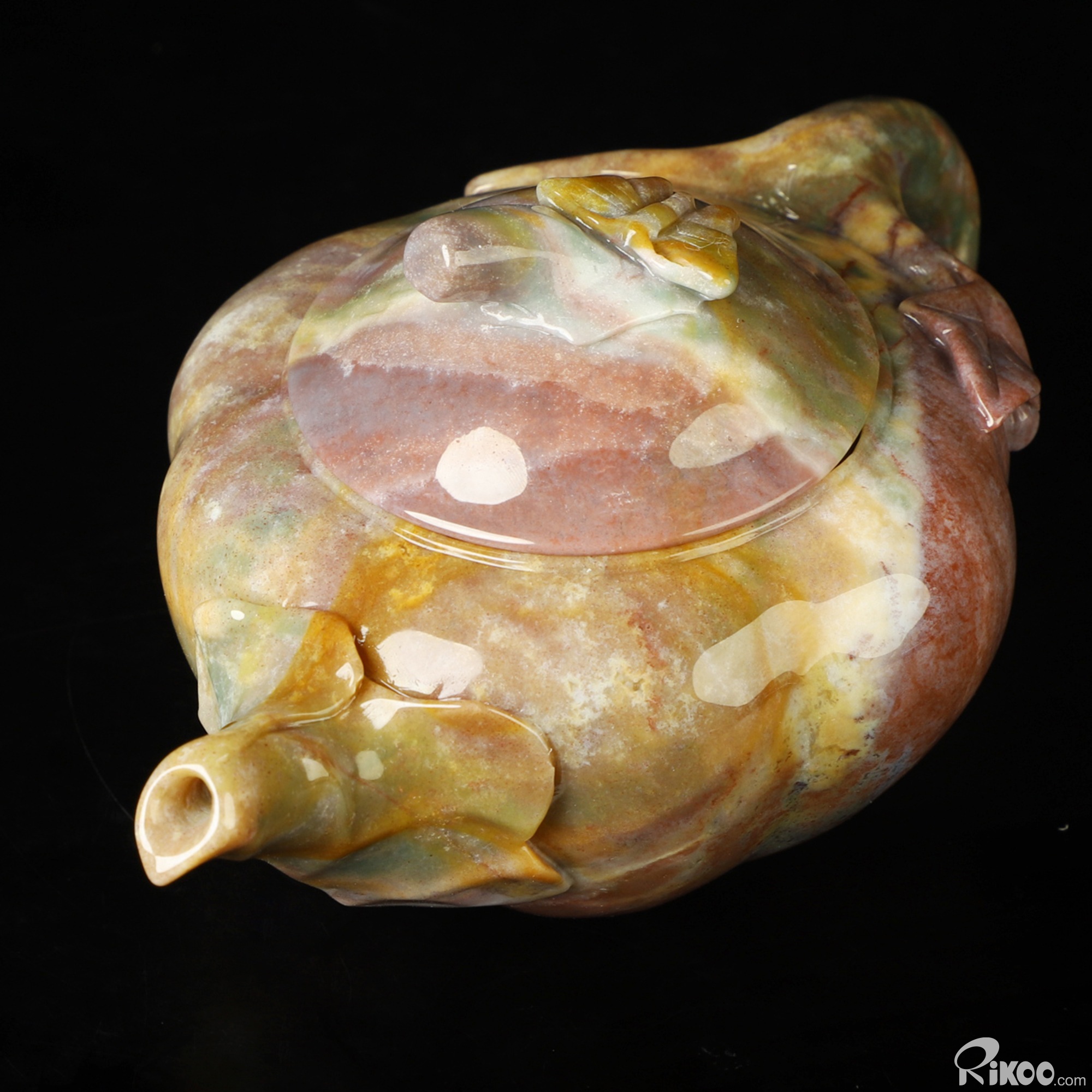 7.1" Indian Agate Hand Carved Crystal Pot and Butterfly, Crystal Healing