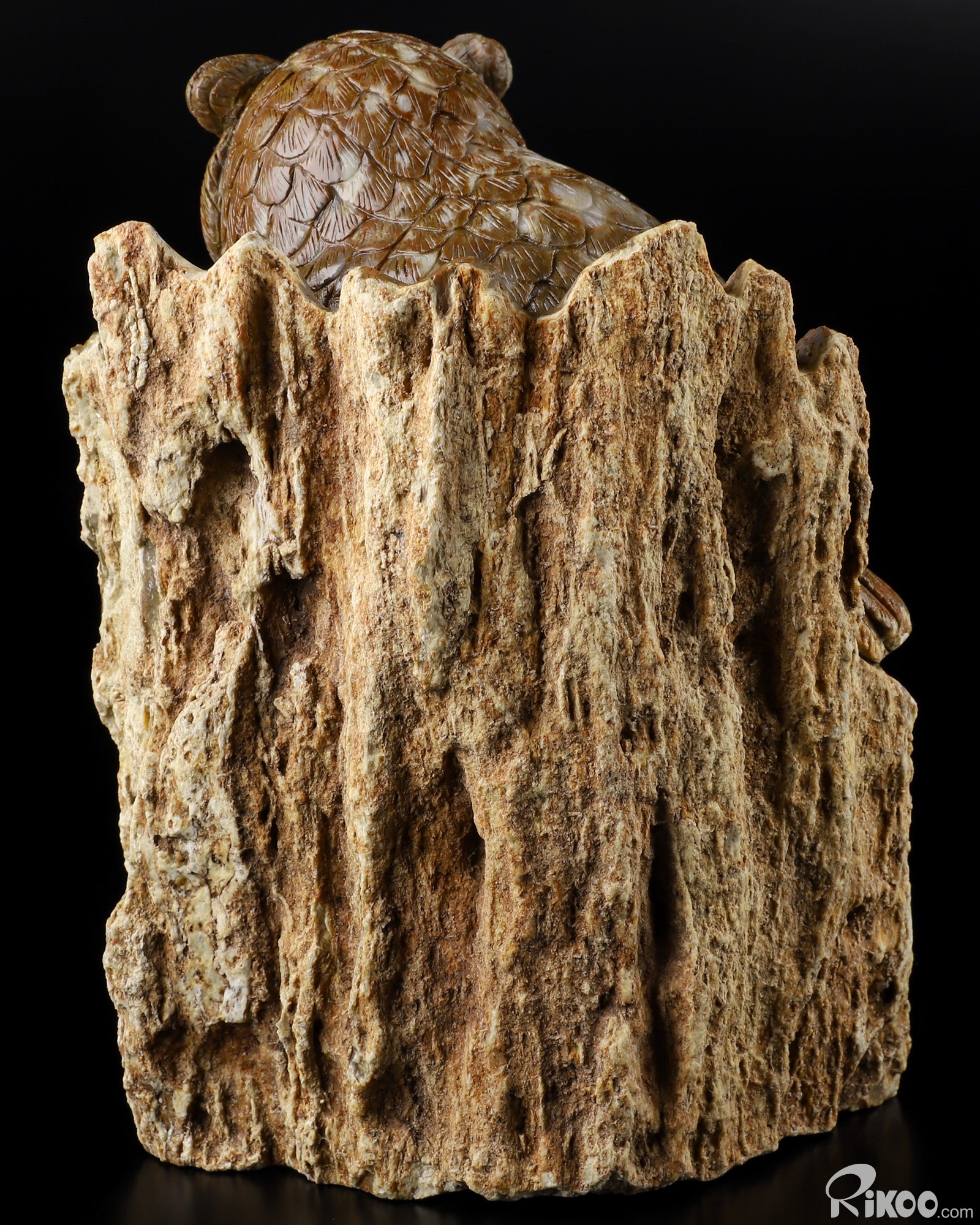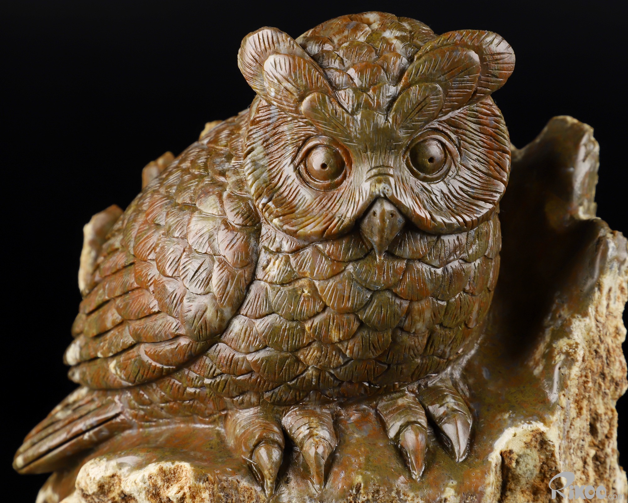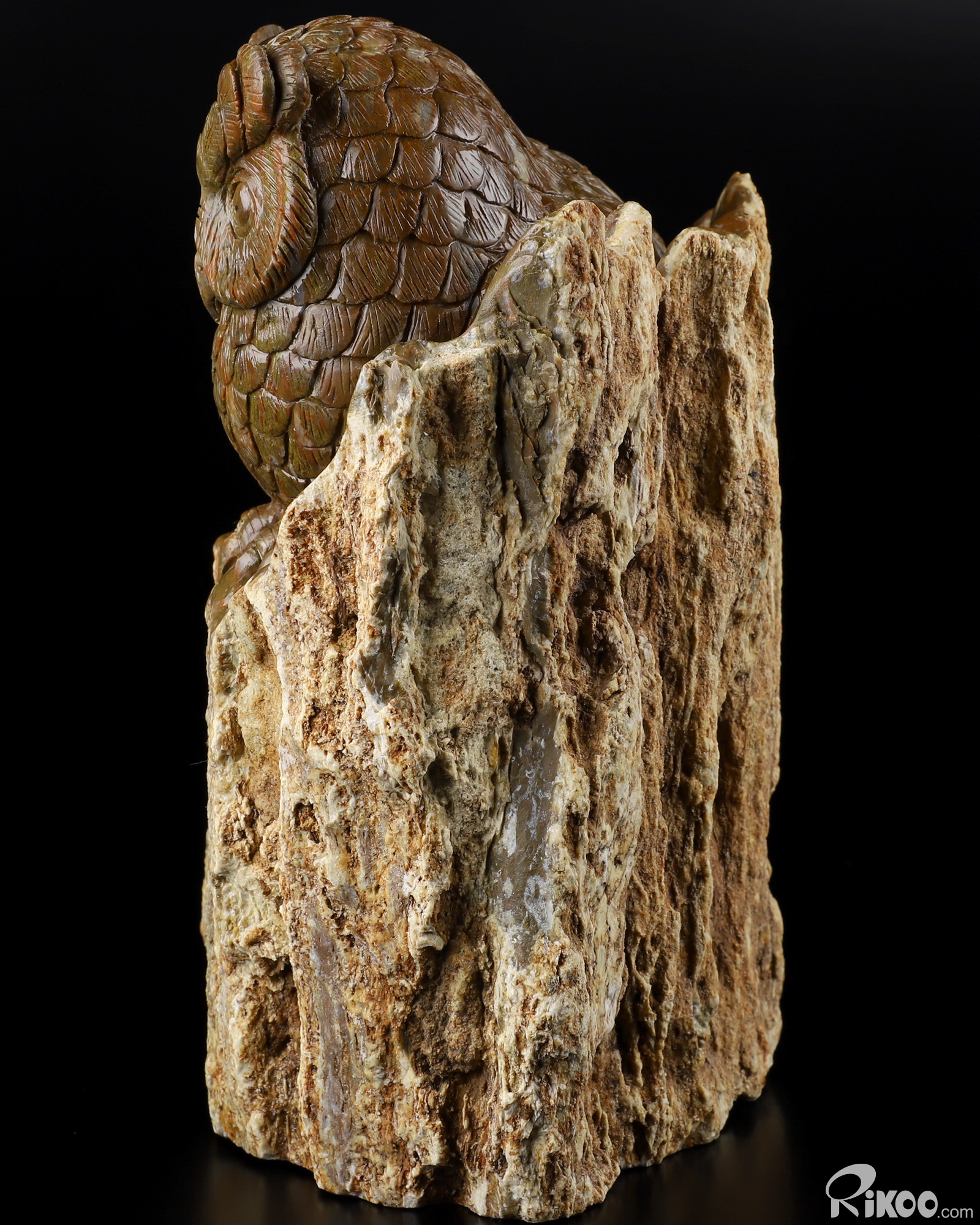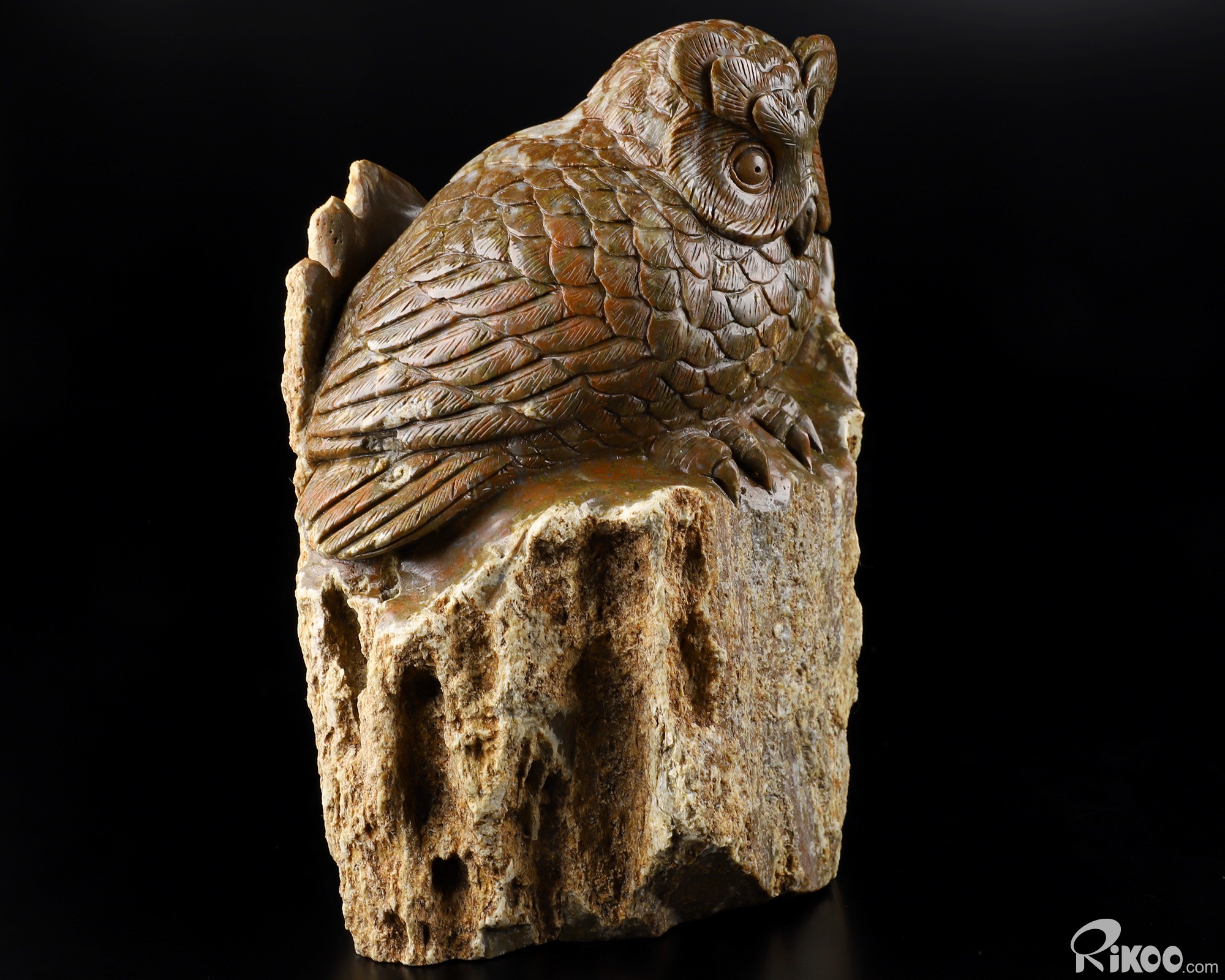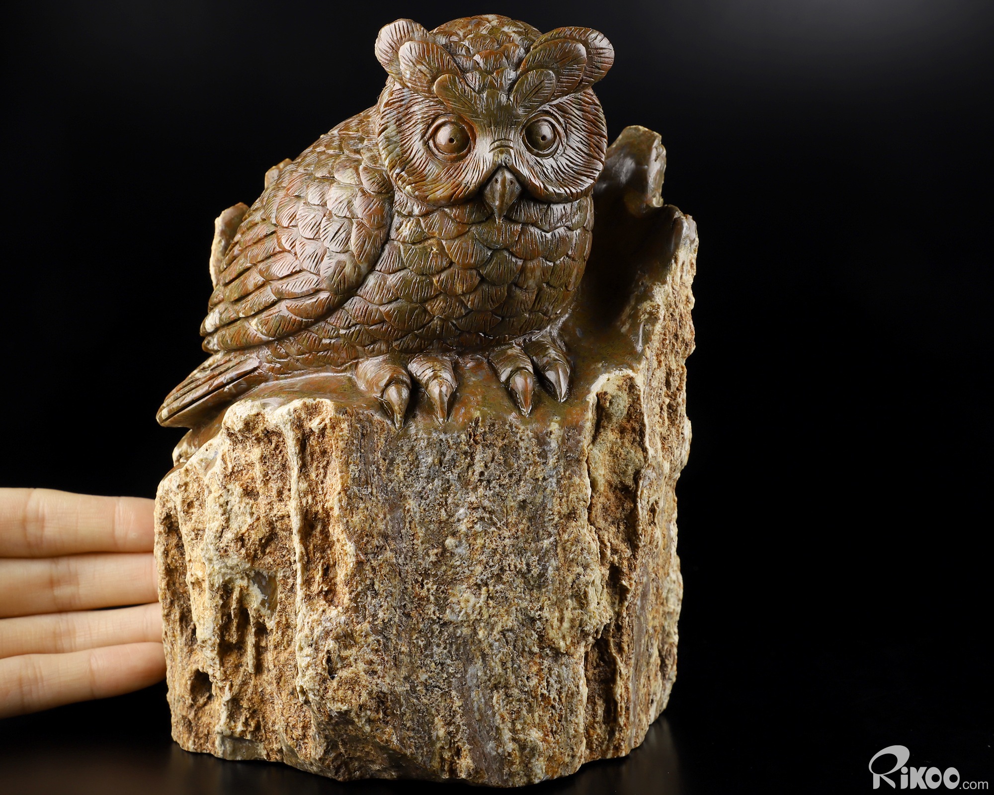 7.1" Petrified Wood BRANCH Carved Crystal Owl Sculpture, Realistic, Crystal Healing