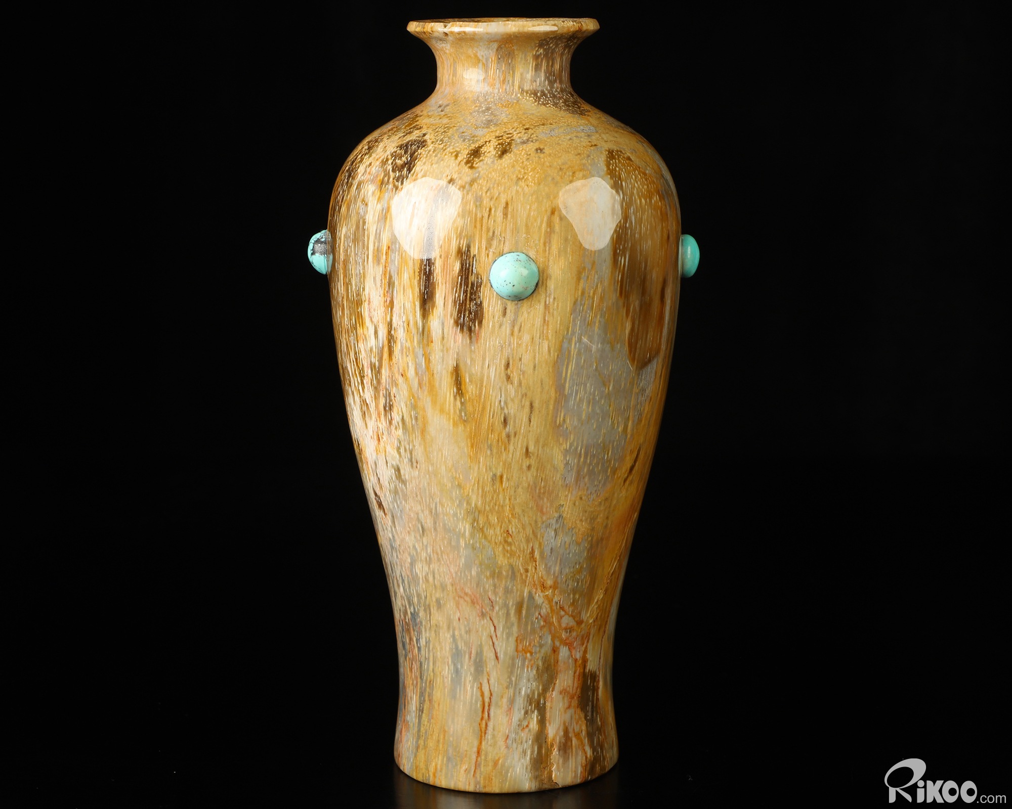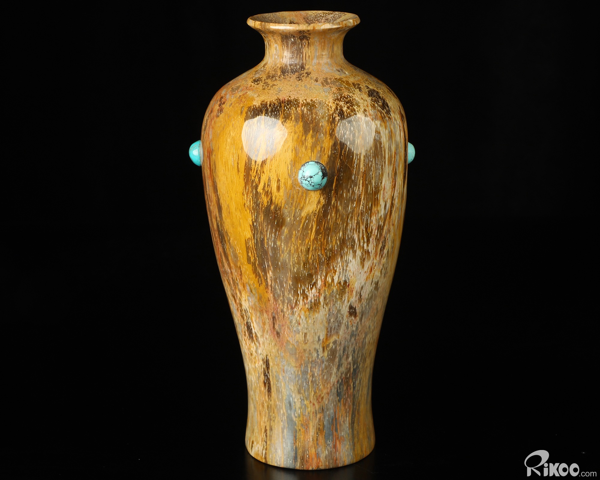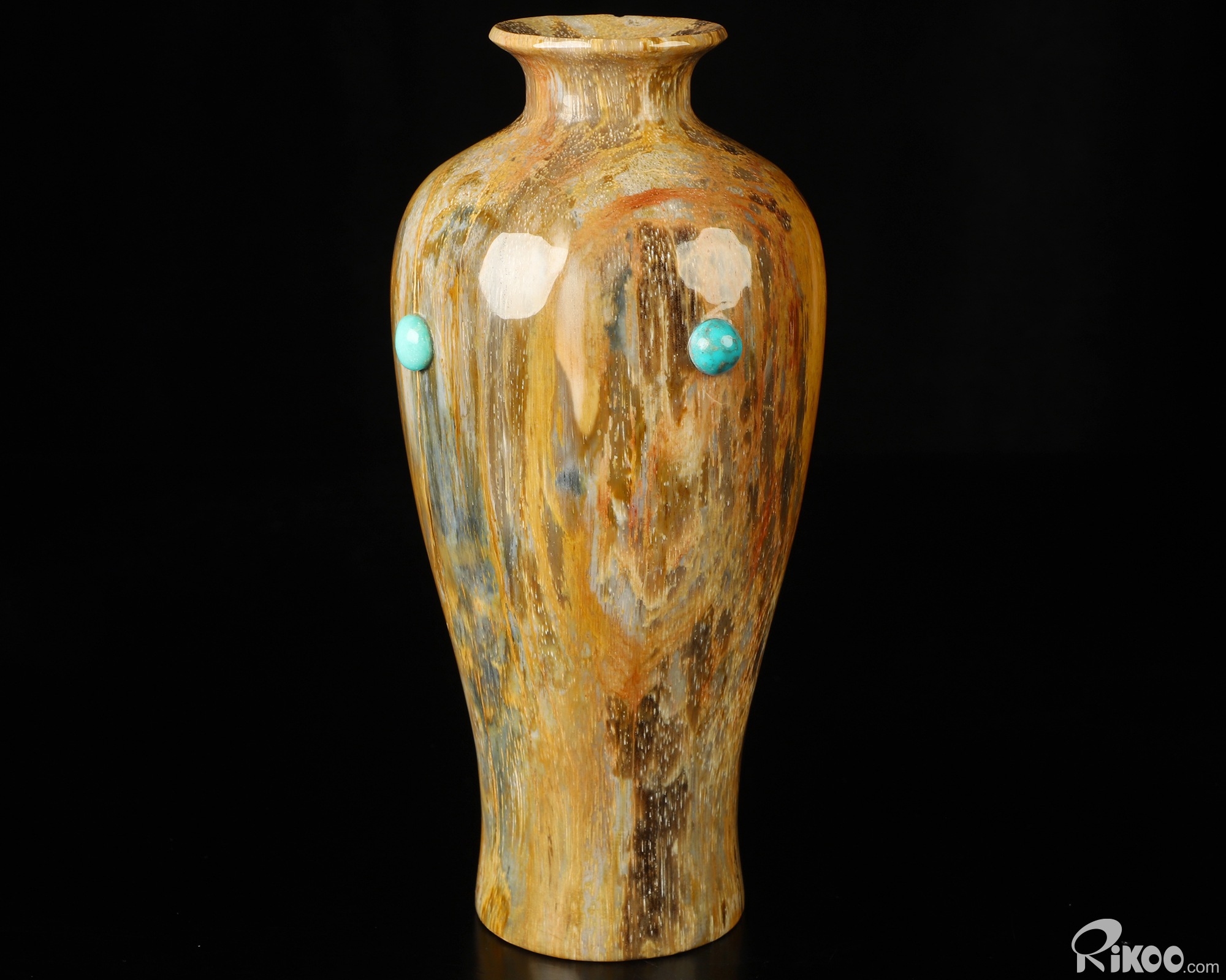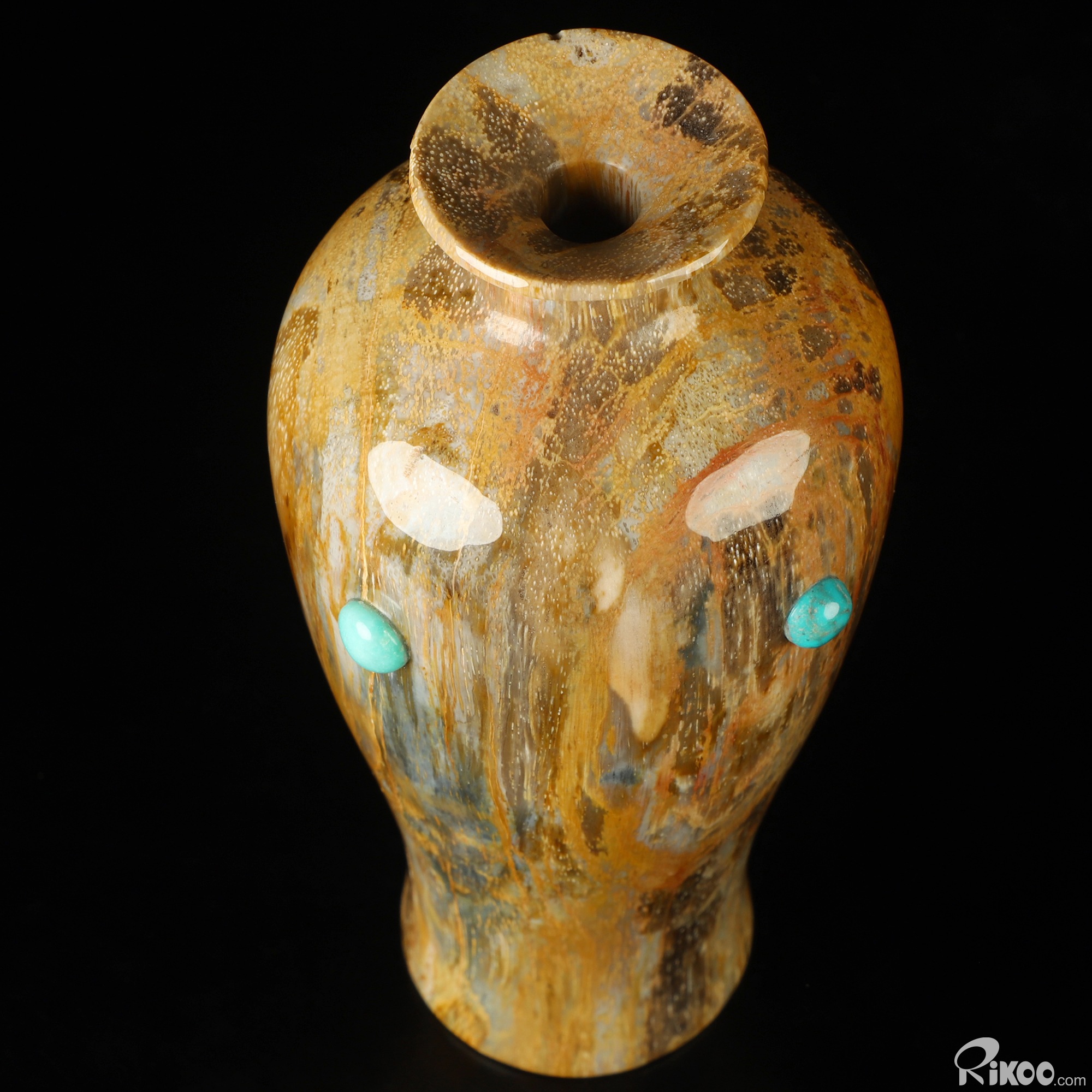 7.1" Petrified Wood & Turquoise inlay Hand Carved Crystal Vase Sculpture, Crystal Healing