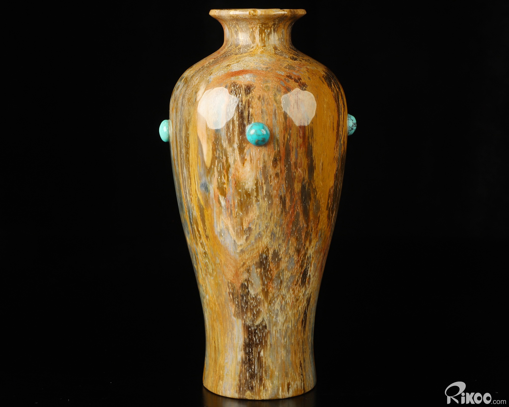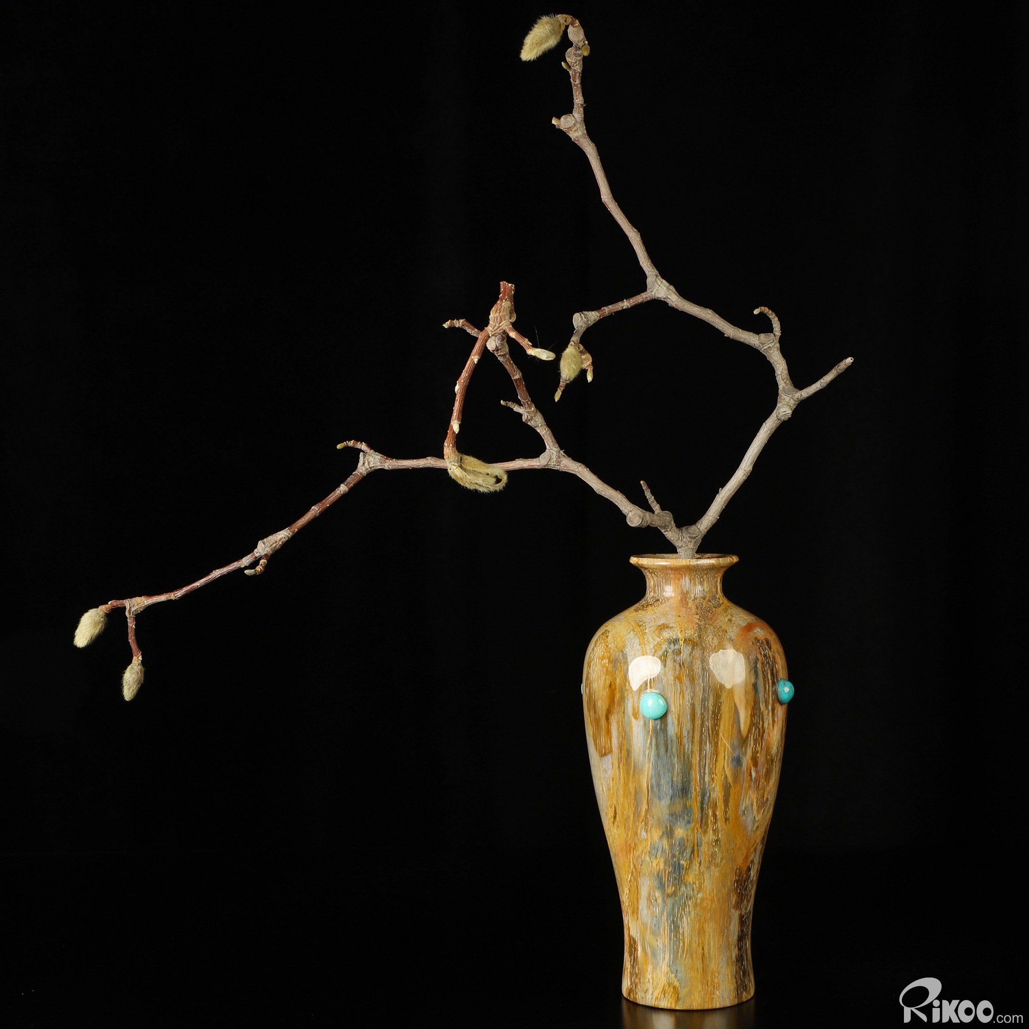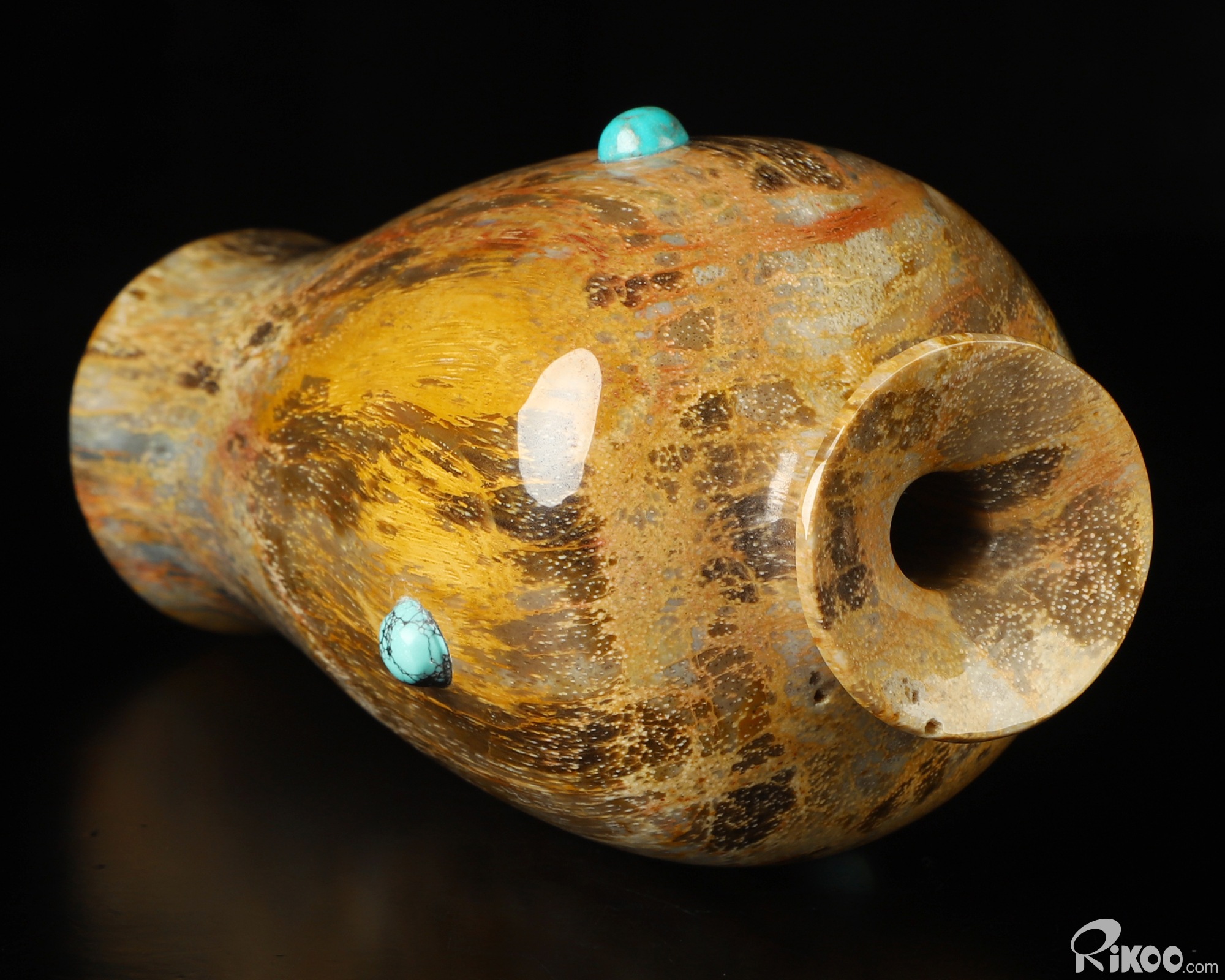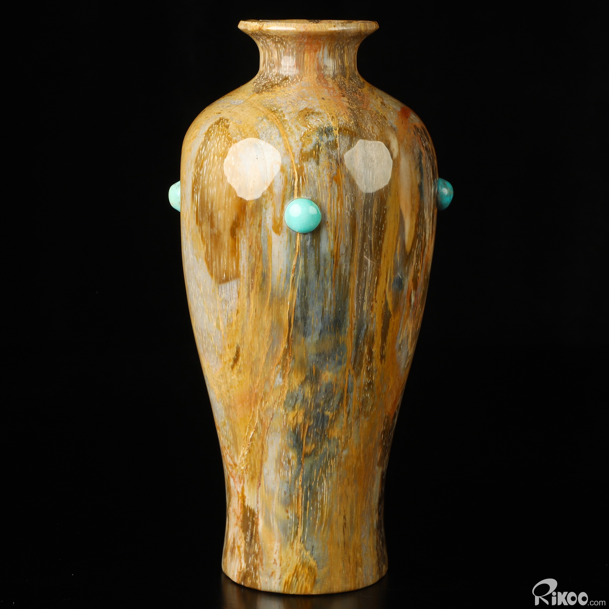 7.1" Petrified Wood & Turquoise inlay Hand Carved Crystal Vase Sculpture, Crystal Healing