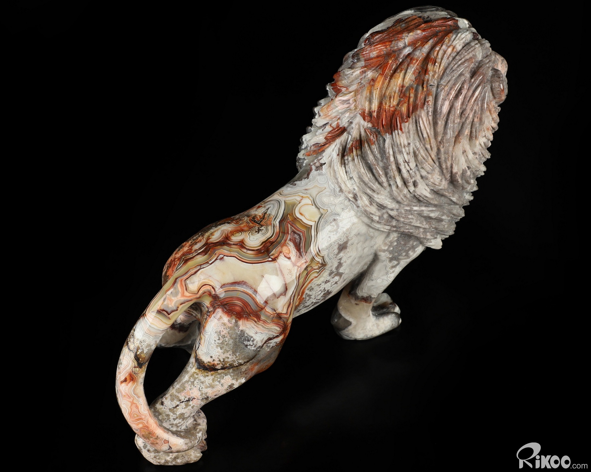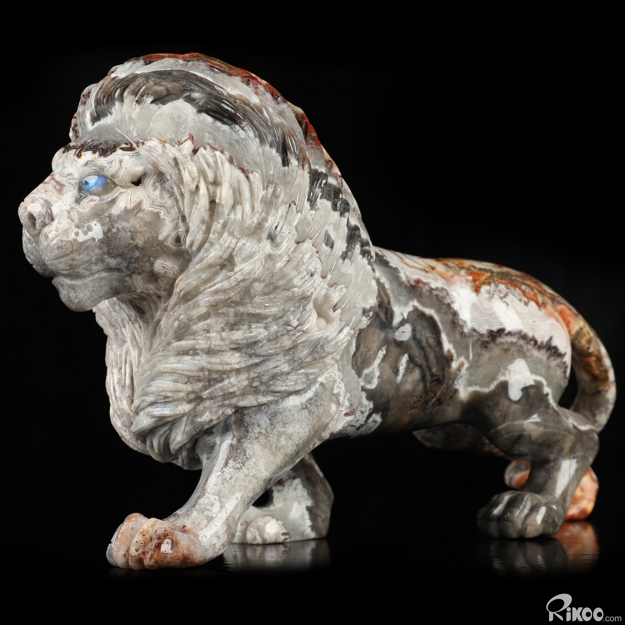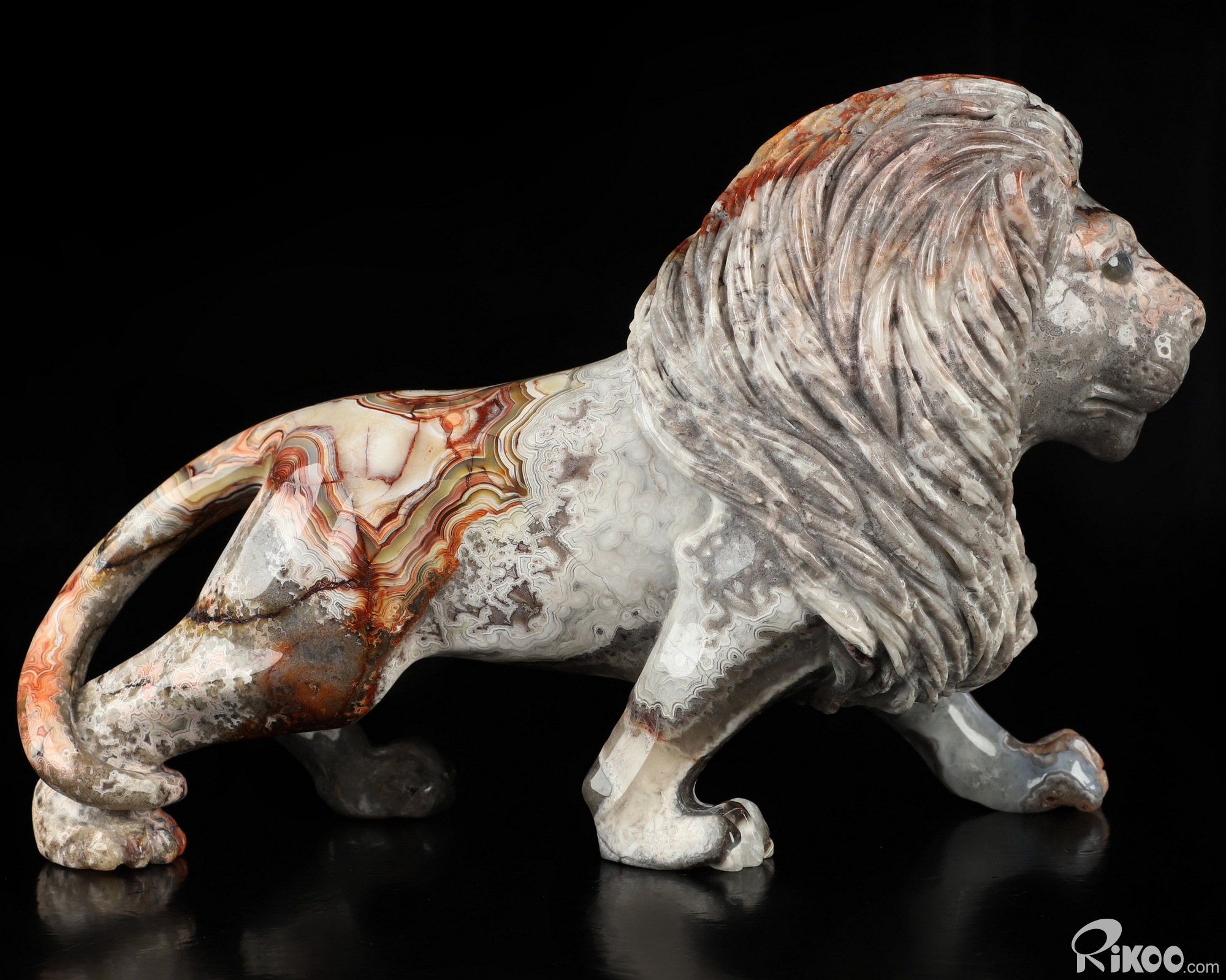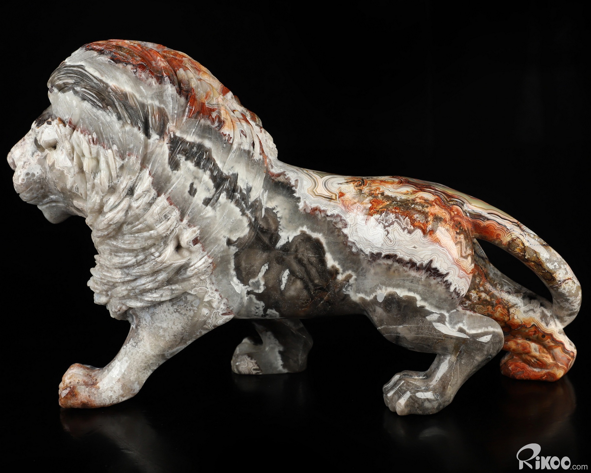 7.1" Red Crazy Lace Agate Hand Carved Crystal Lion Sculpture, Crystal Healing