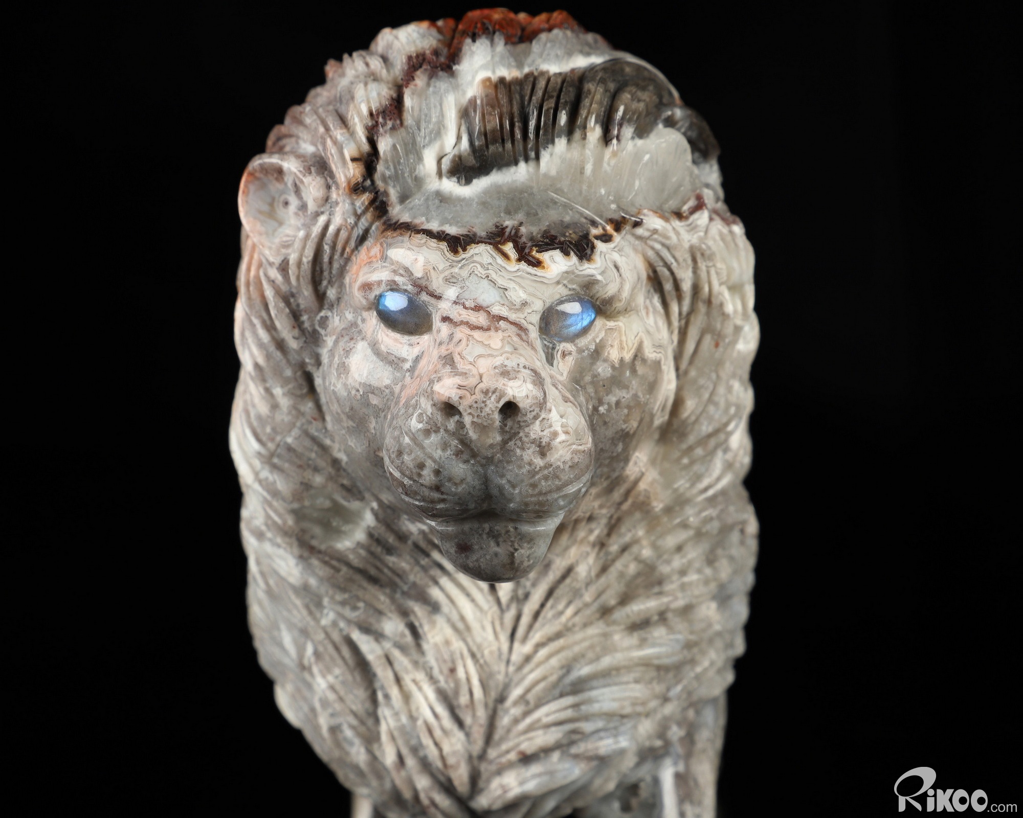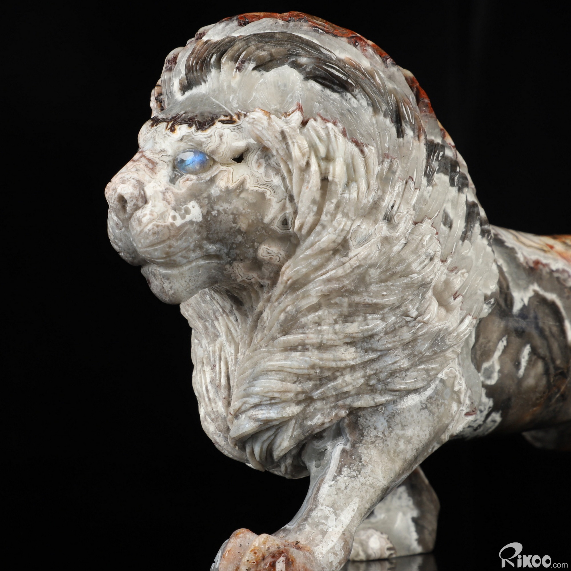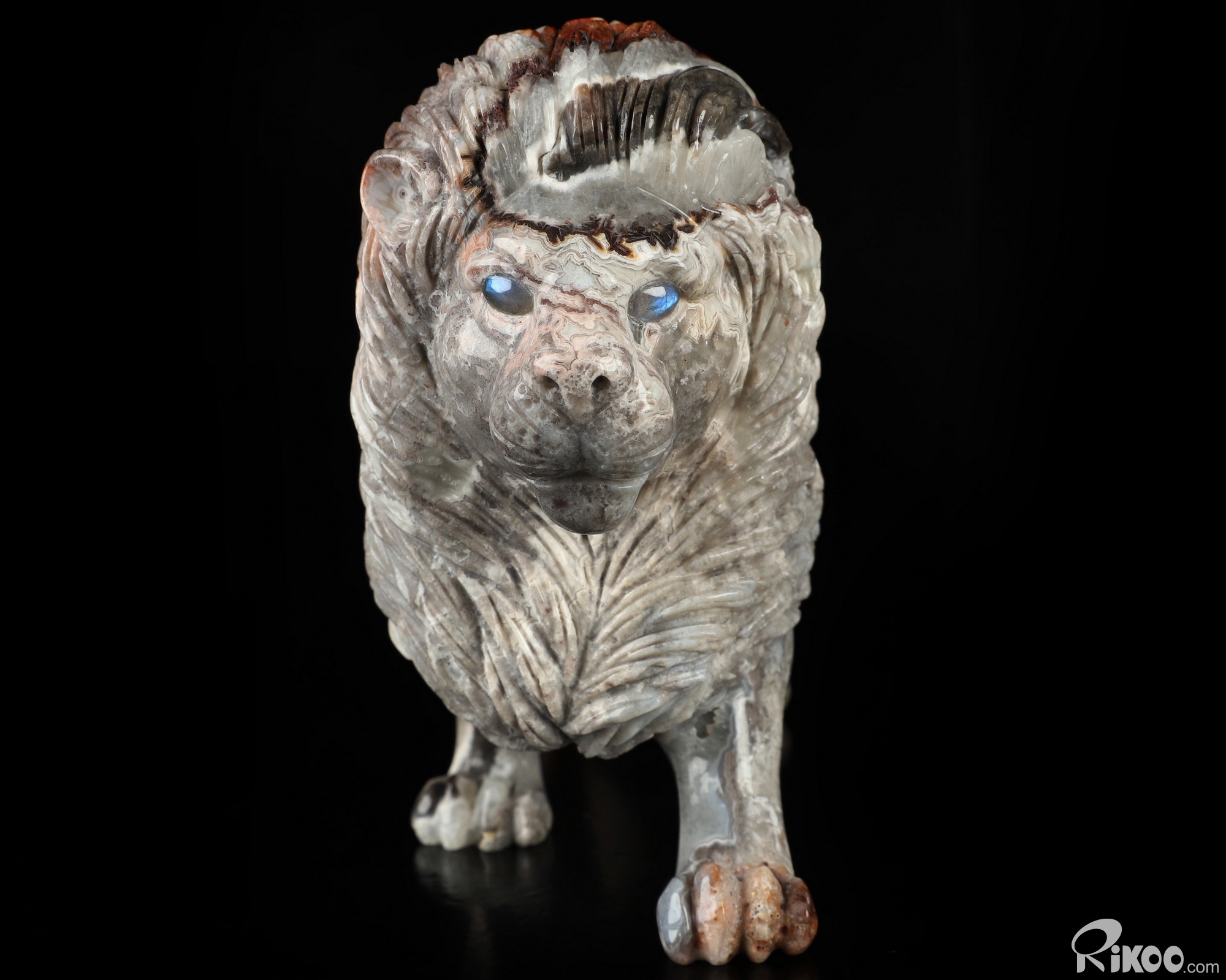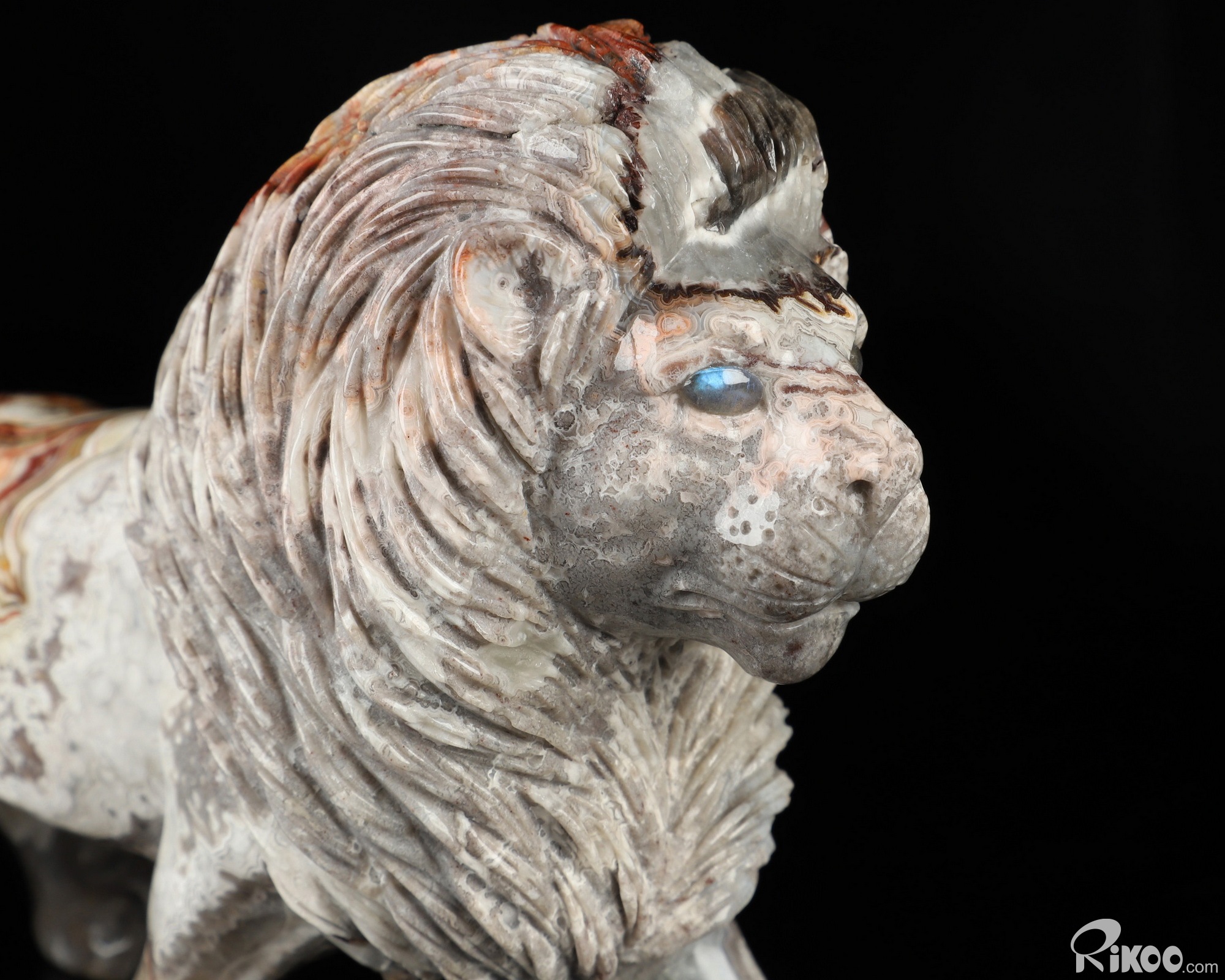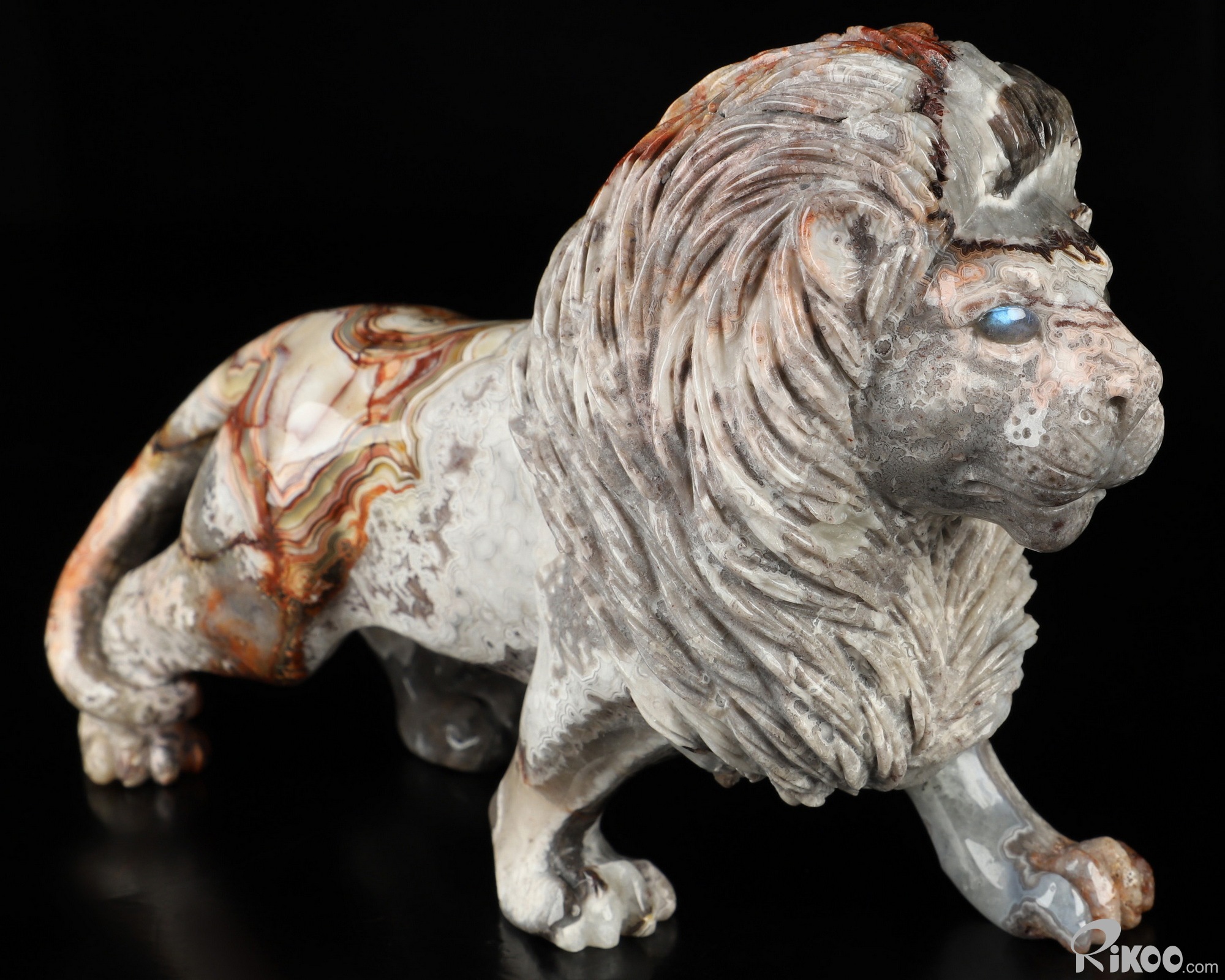 7.1" Red Crazy Lace Agate Hand Carved Crystal Lion Sculpture, Crystal Healing