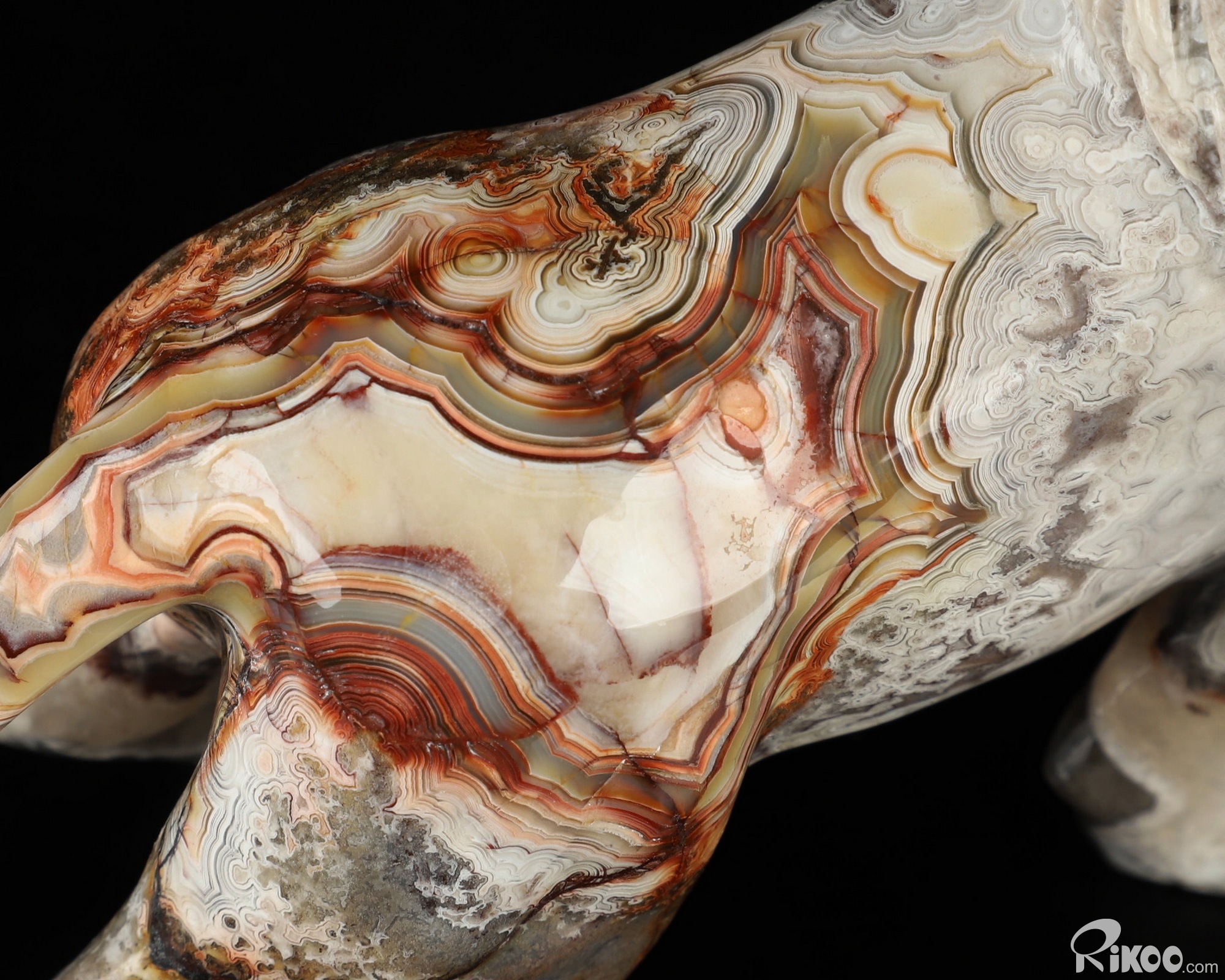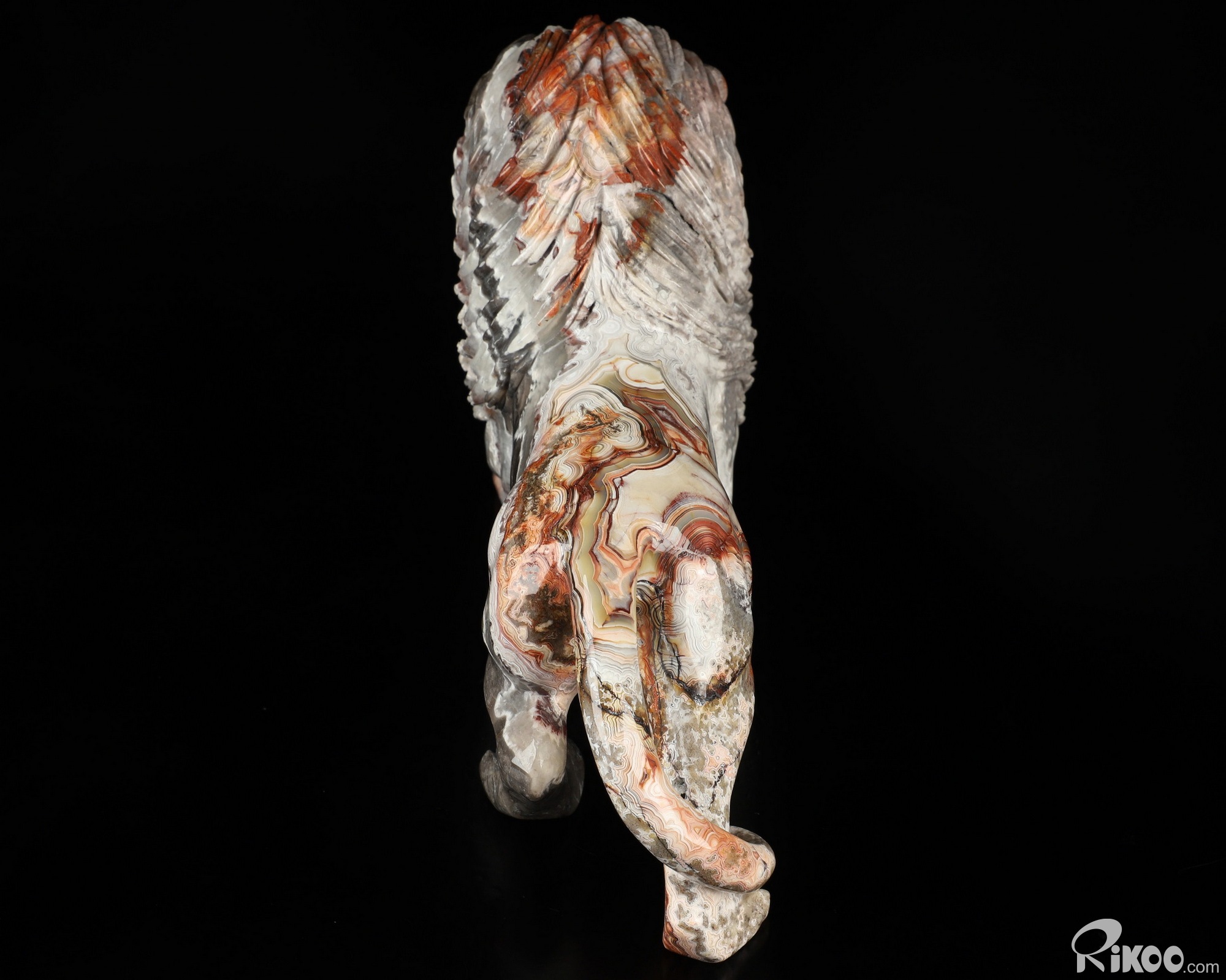 You are looking at a Red Crazy Lace Agate sculpture. The sculpture is 7.1 inches long.