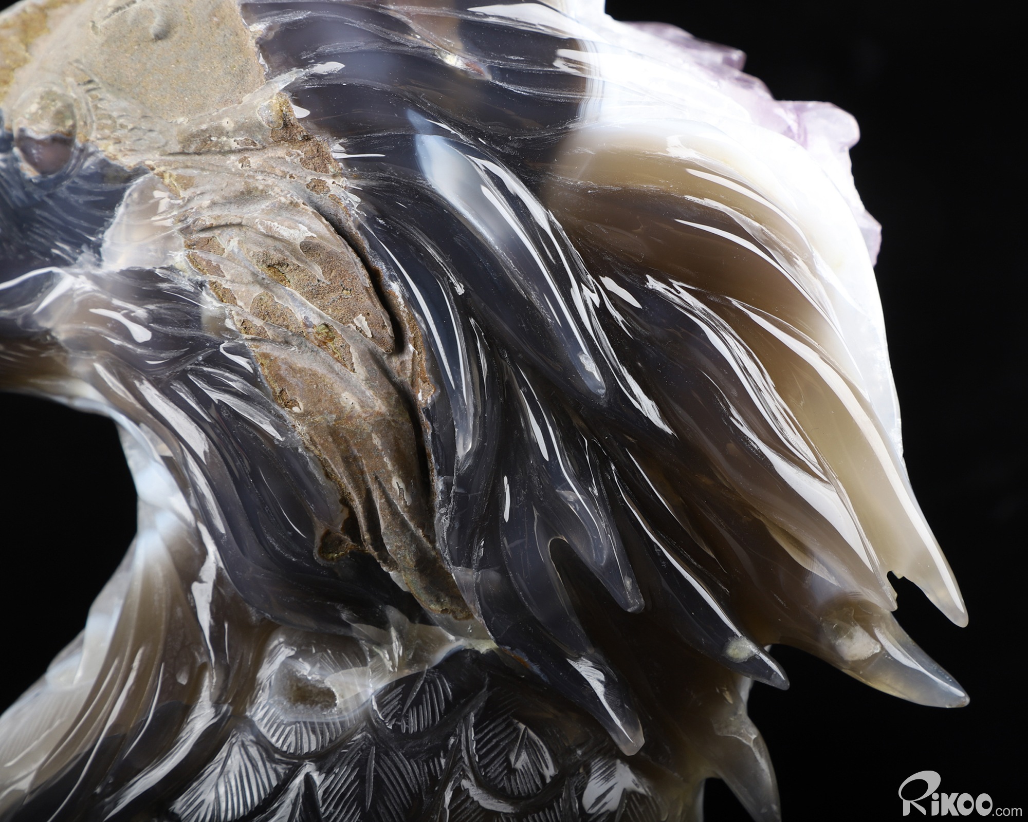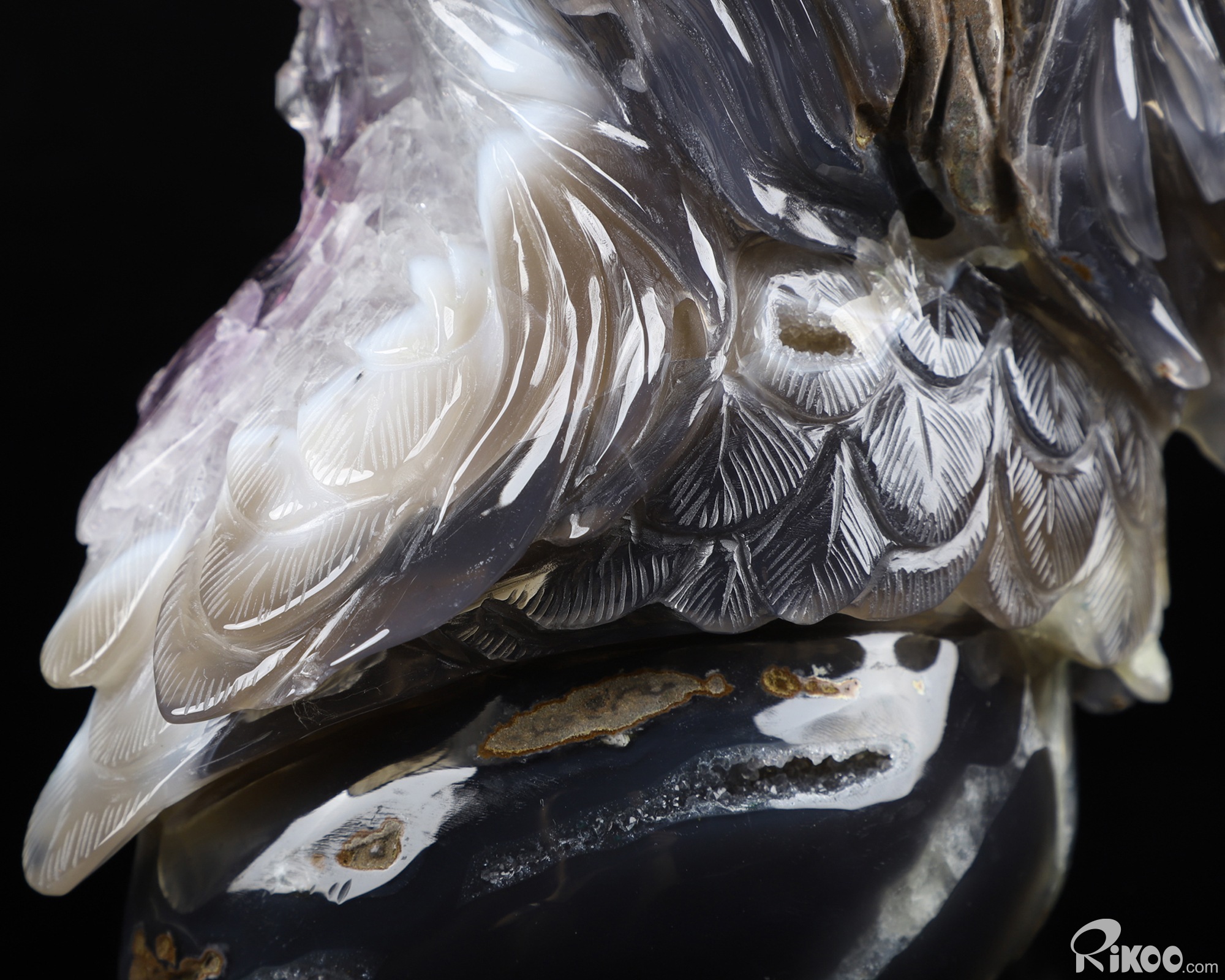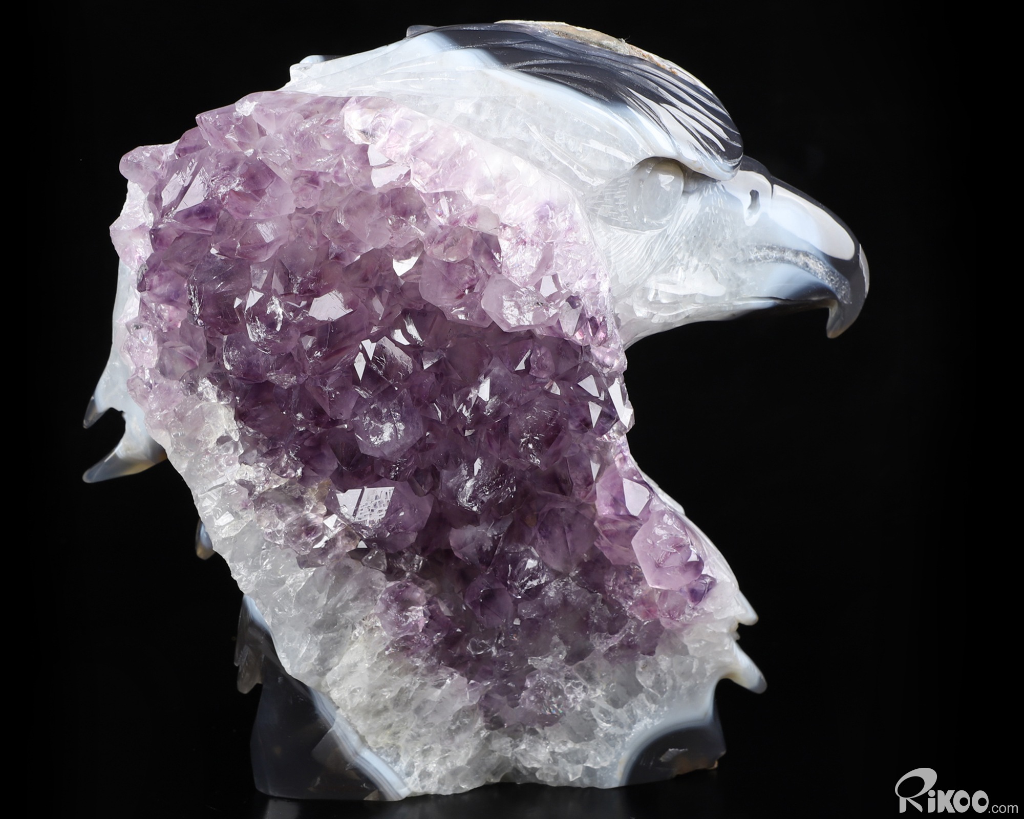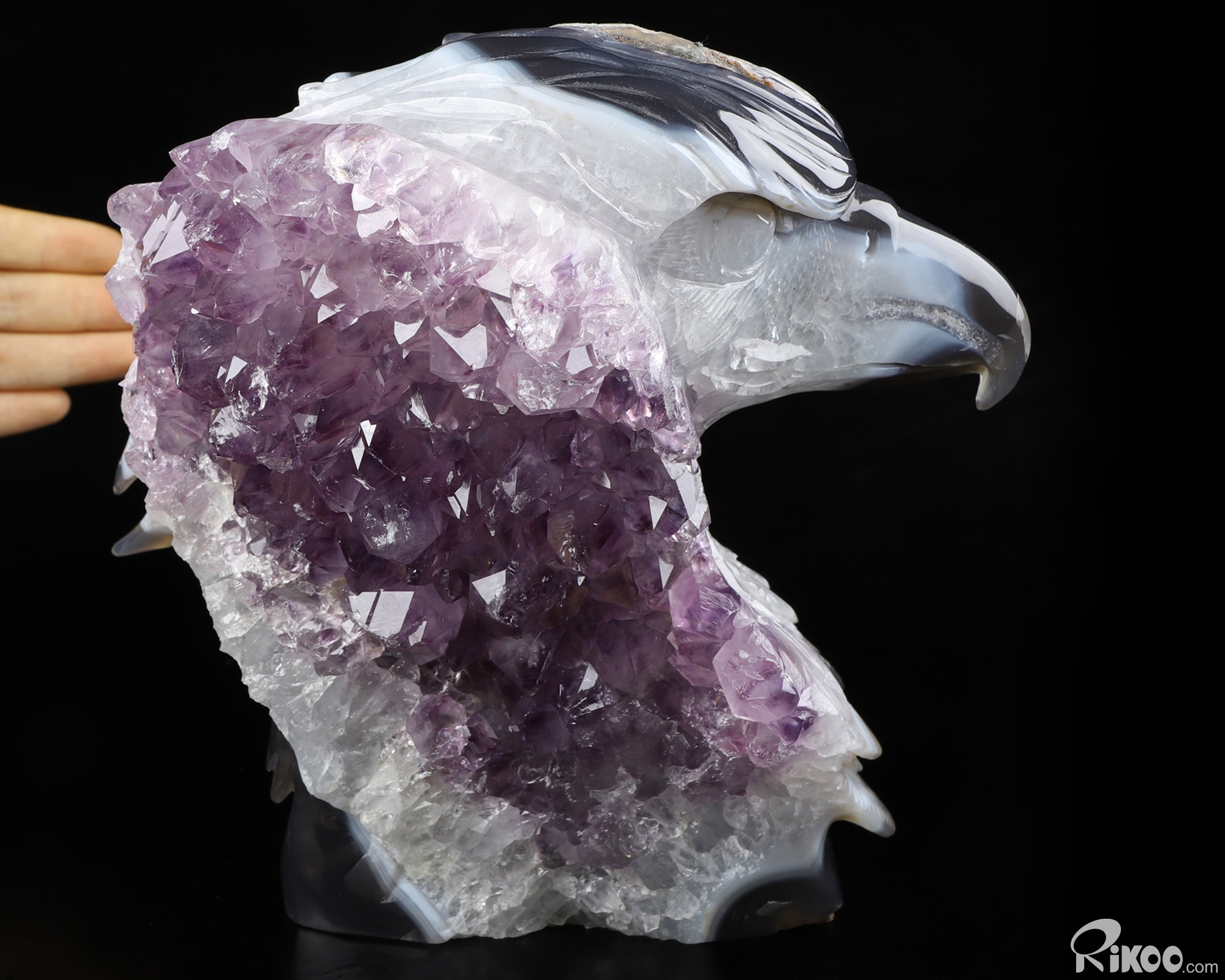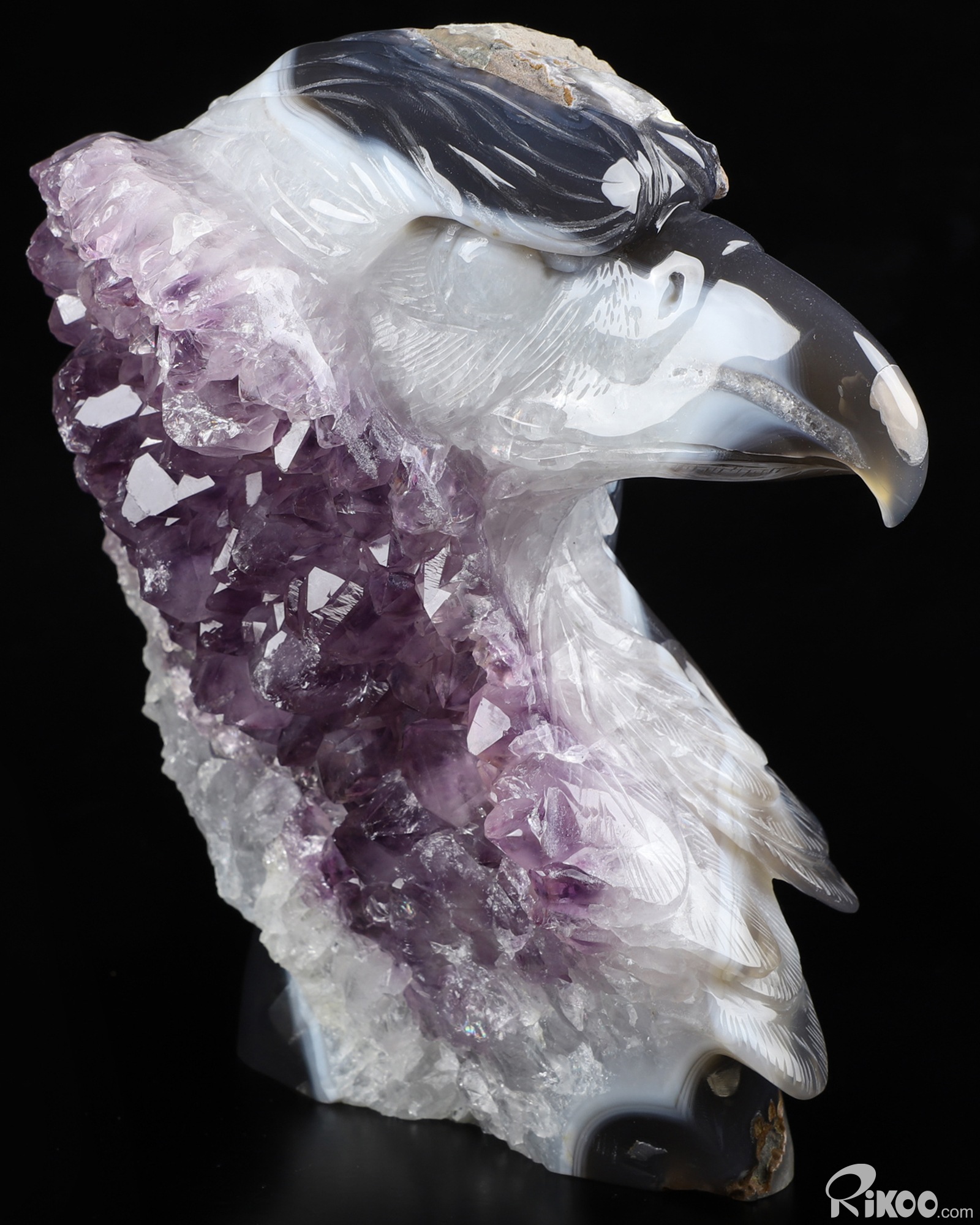 You are looking at a Agate Amethyst Geode eagle. The eagle is 7.2 inches long from front to back.