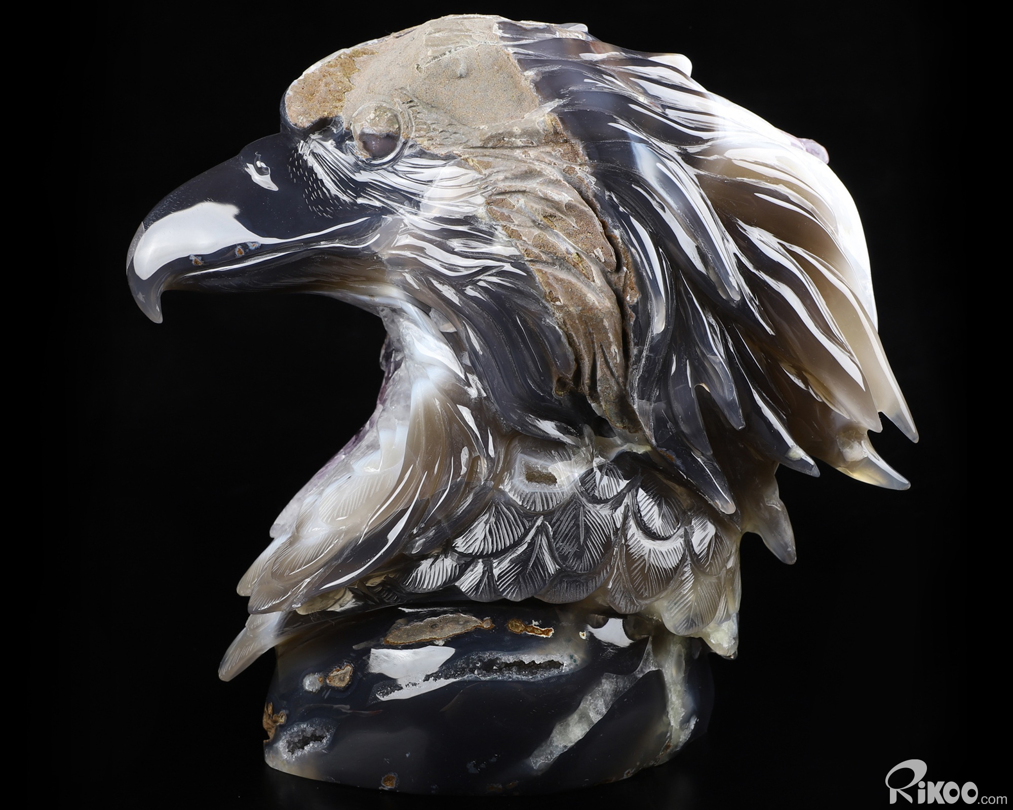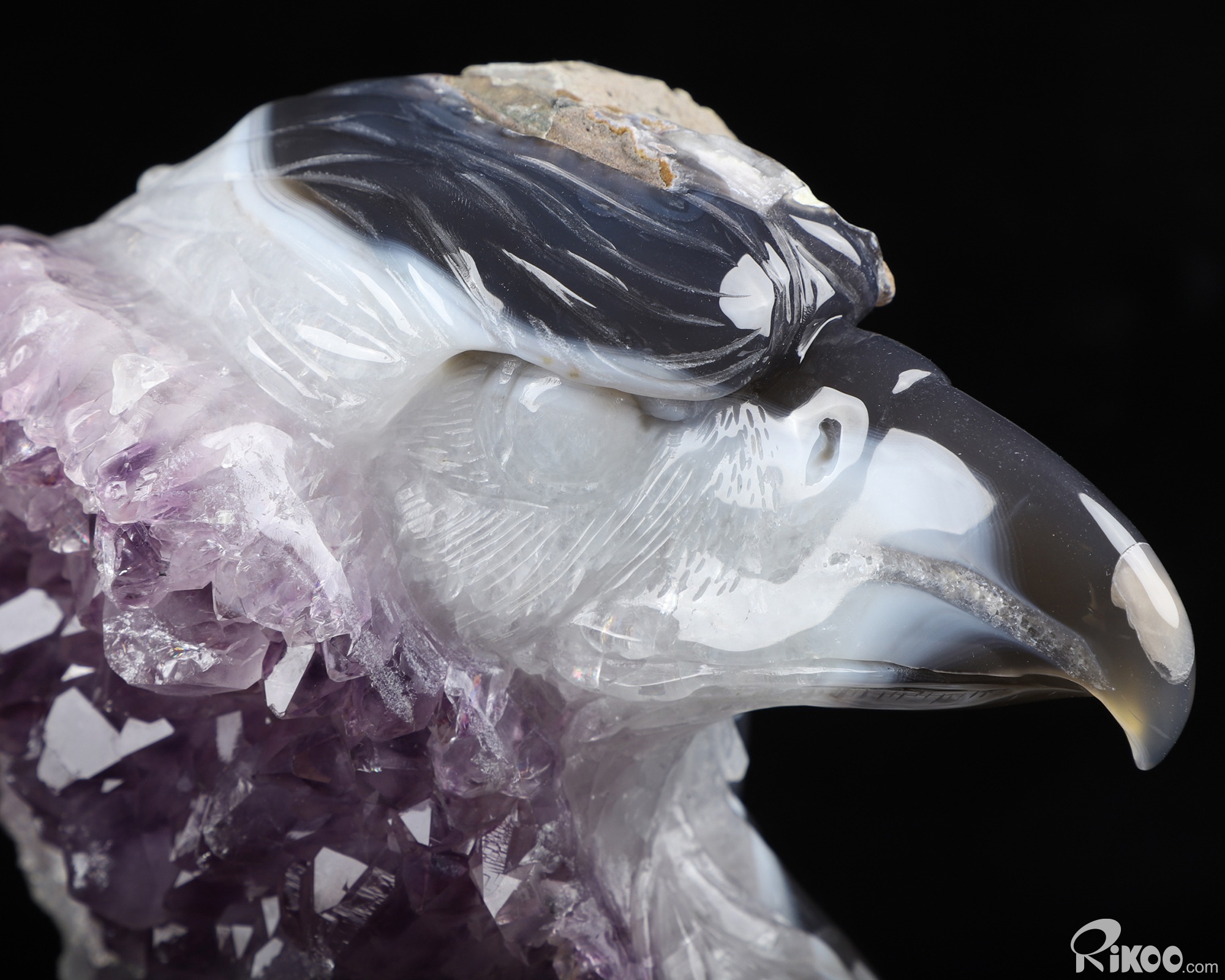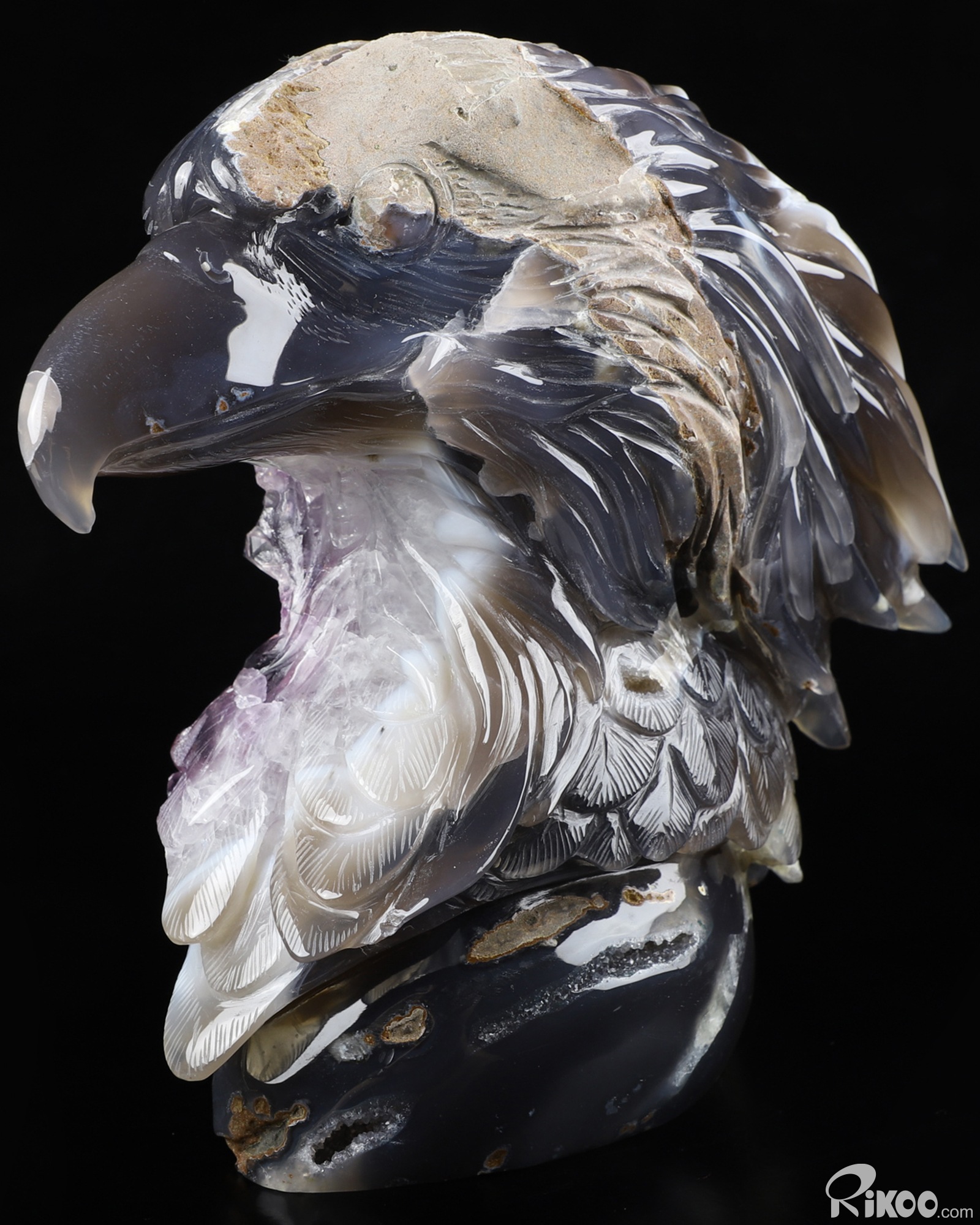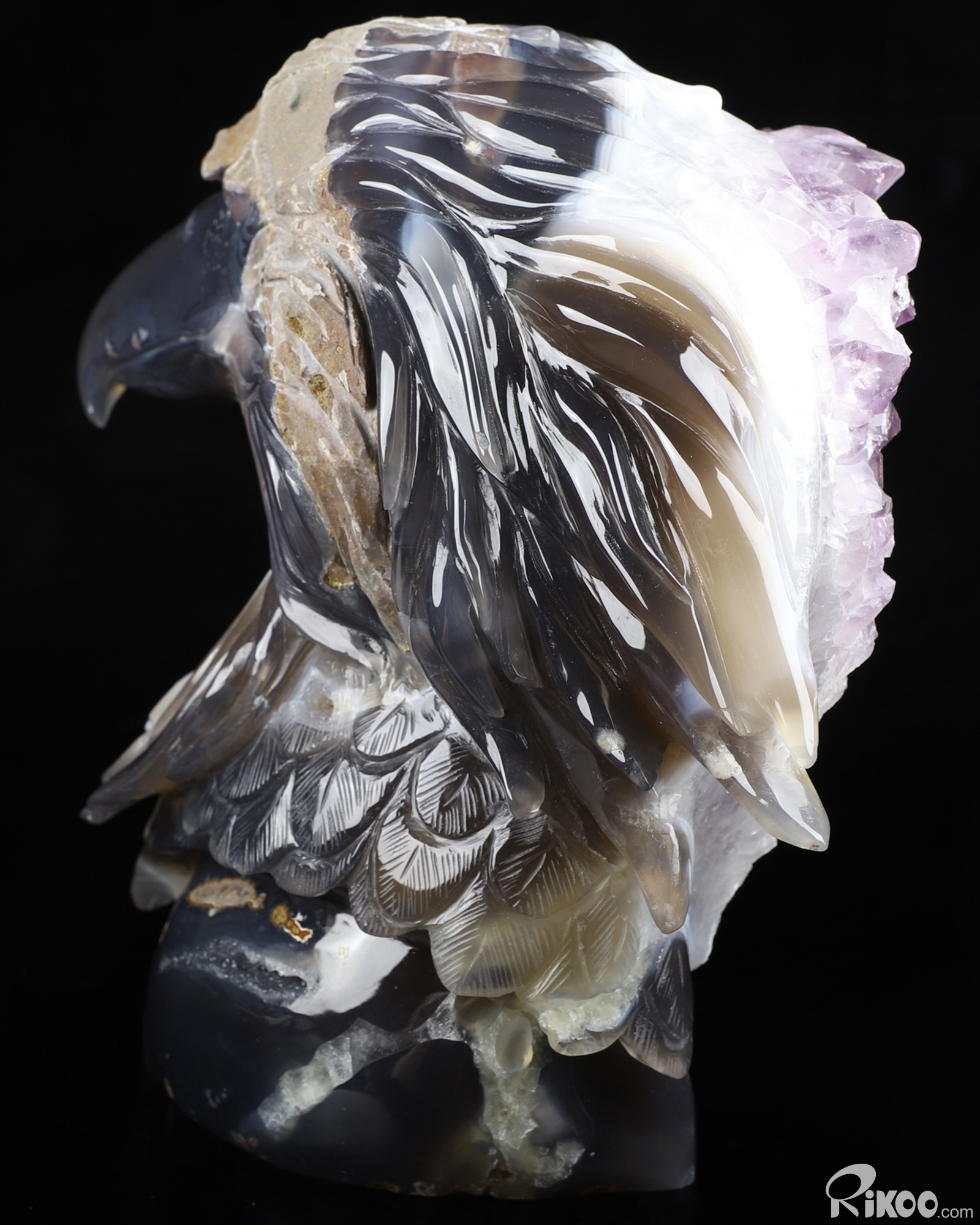 7.2" Agate Amethyst Geode Hand Carved Crystal Eagle Sculpture, Crystal Healing