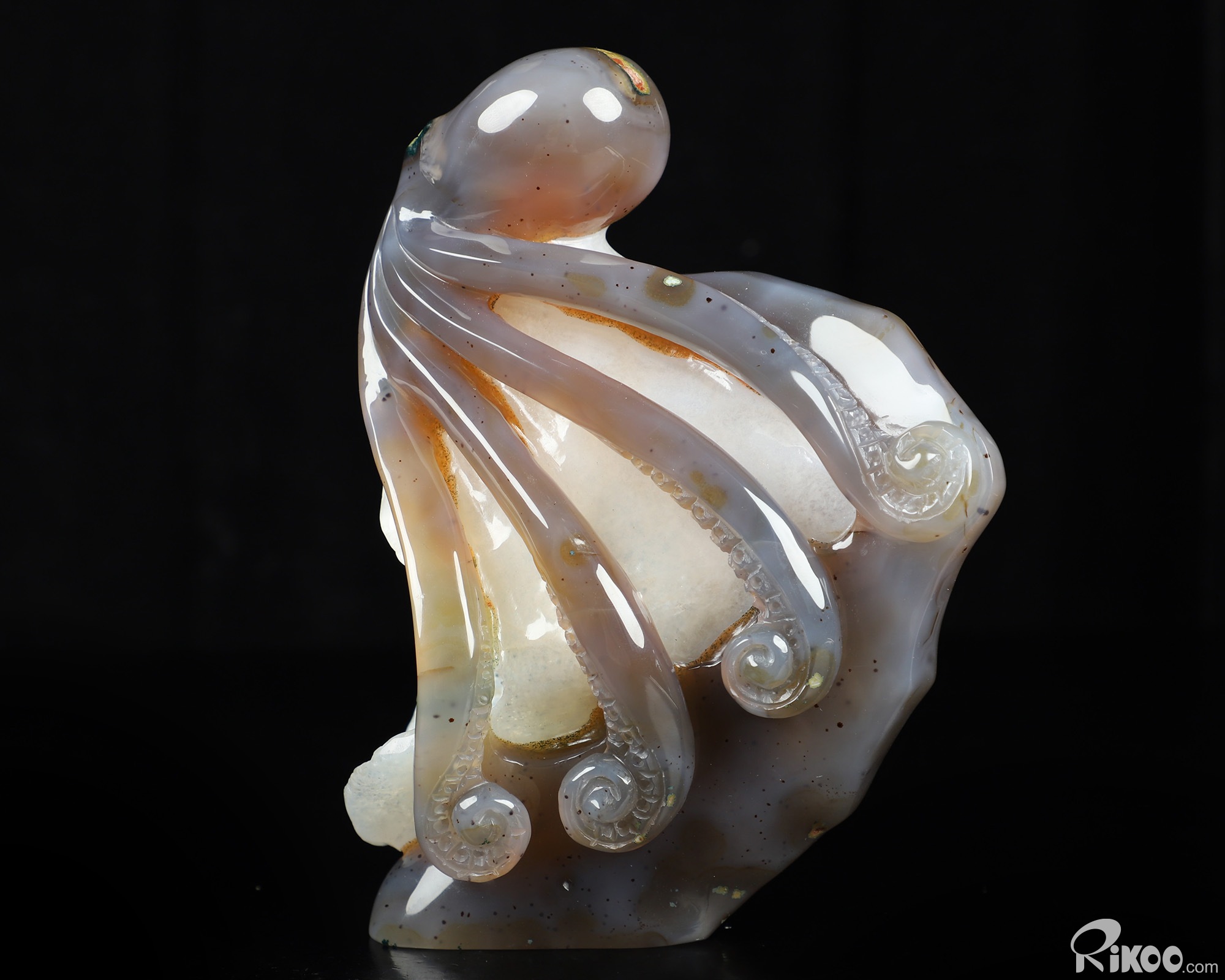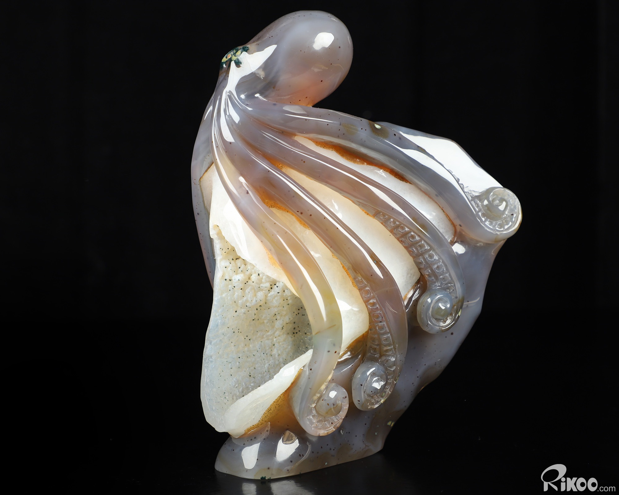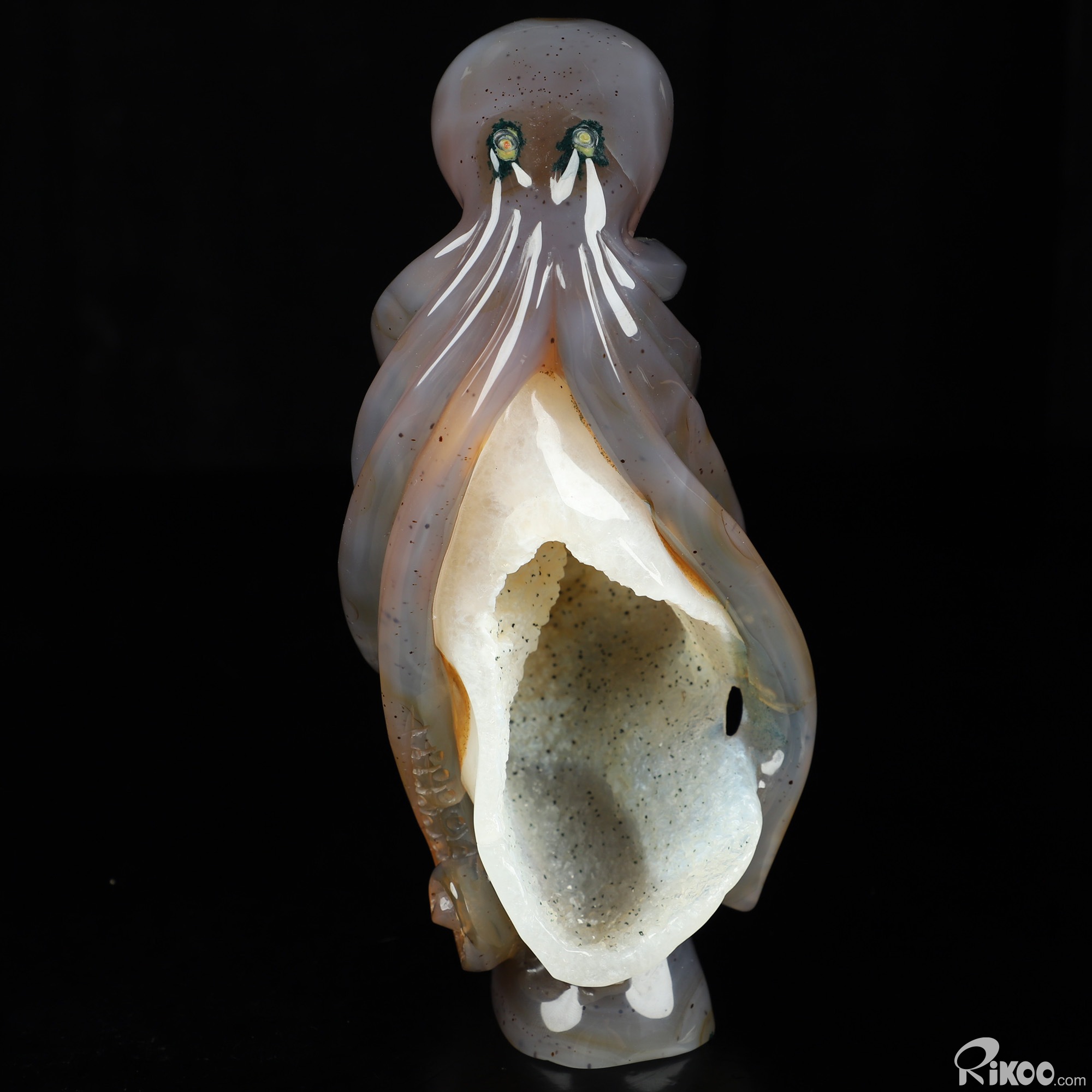 7.2" Agate Geode Hand Carved Crystal Octopus Sculpture, Crystal Healing