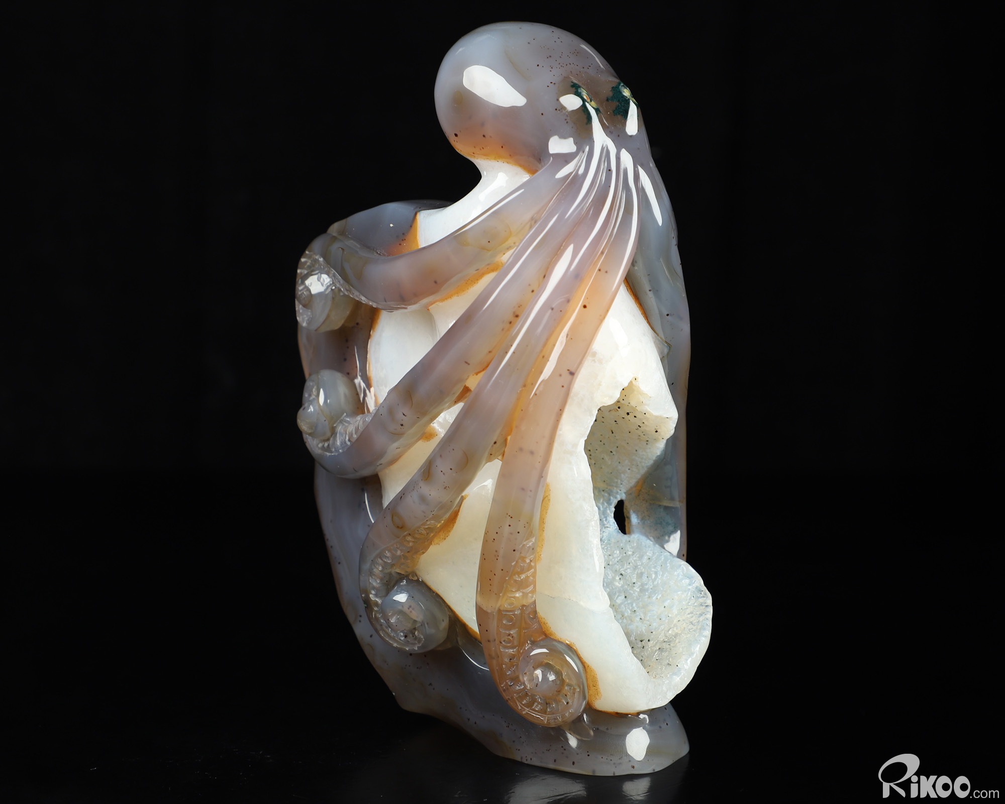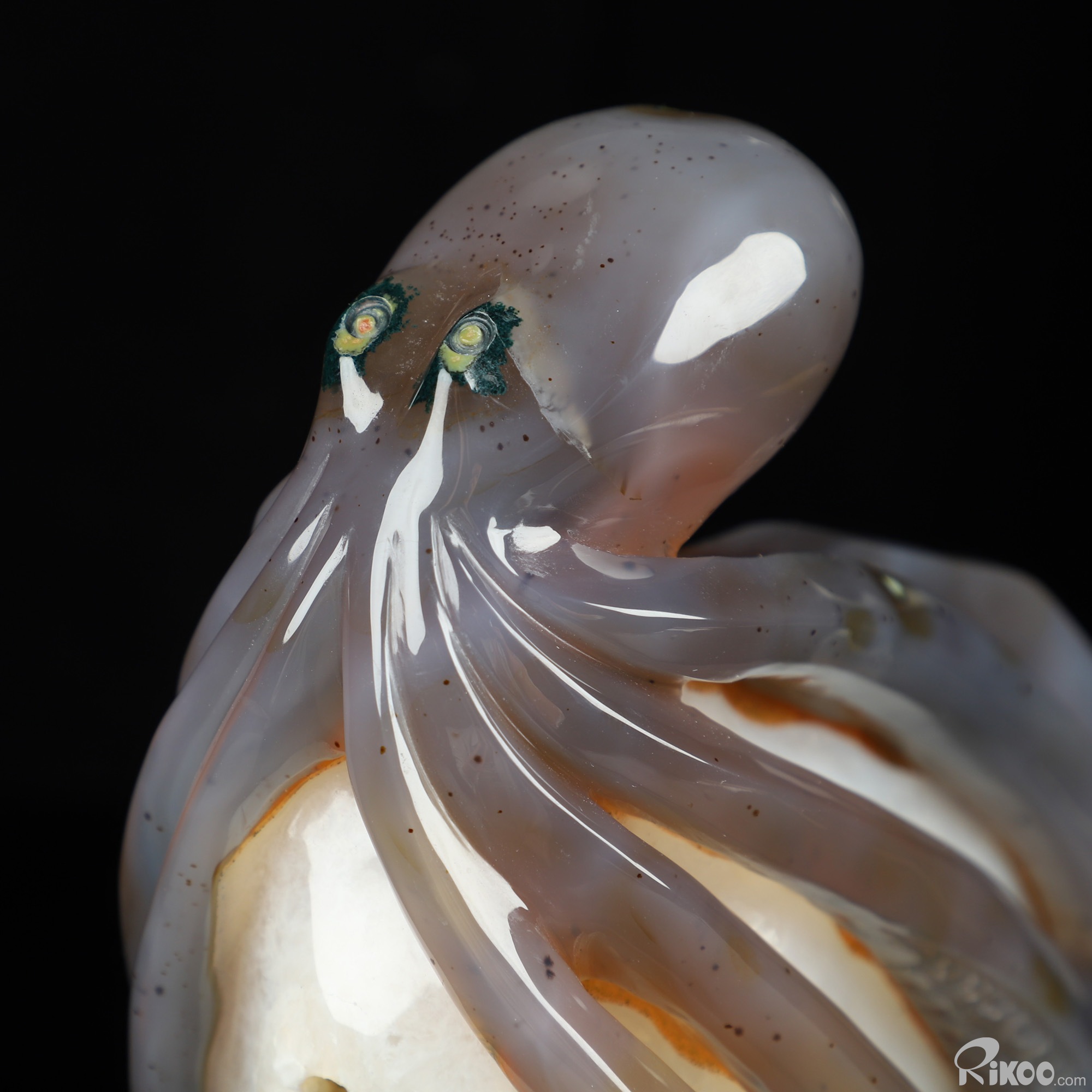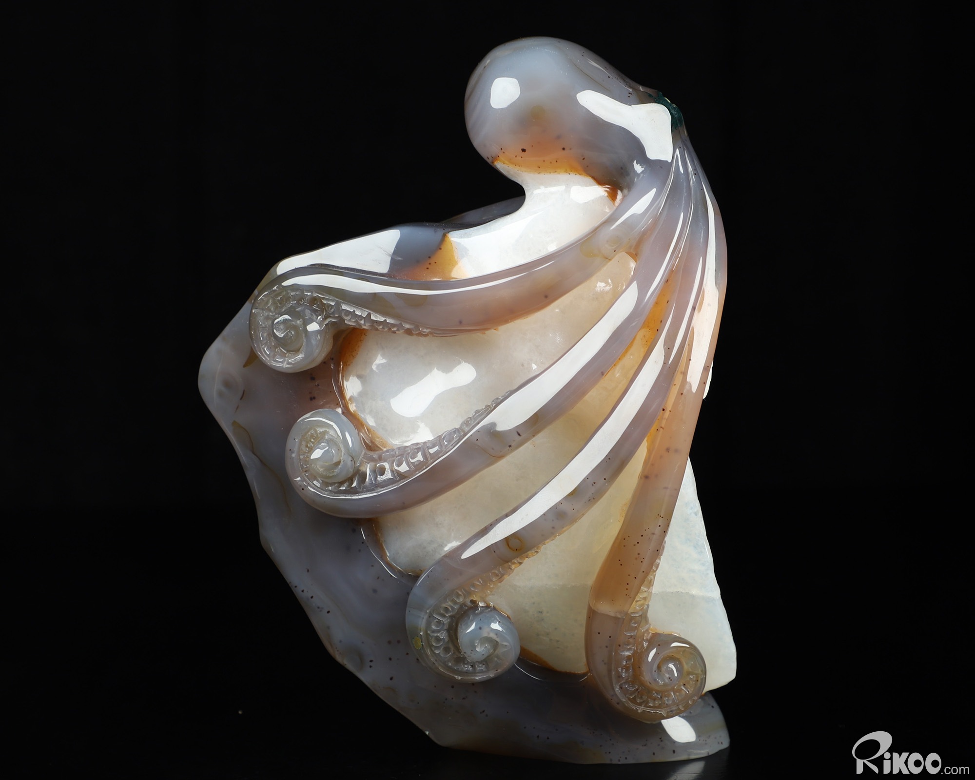 7.2" Agate Geode Hand Carved Crystal Octopus Sculpture, Crystal Healing